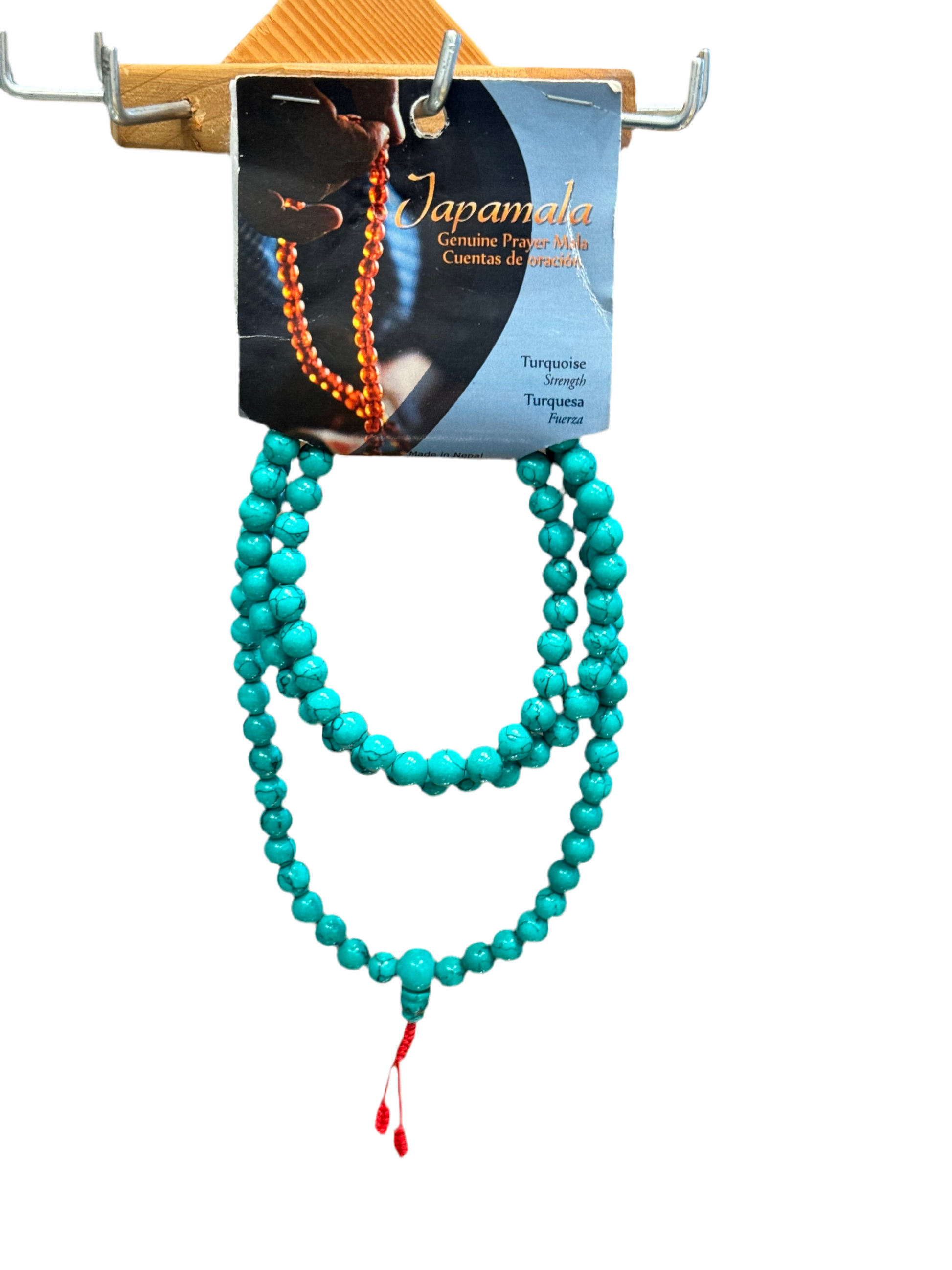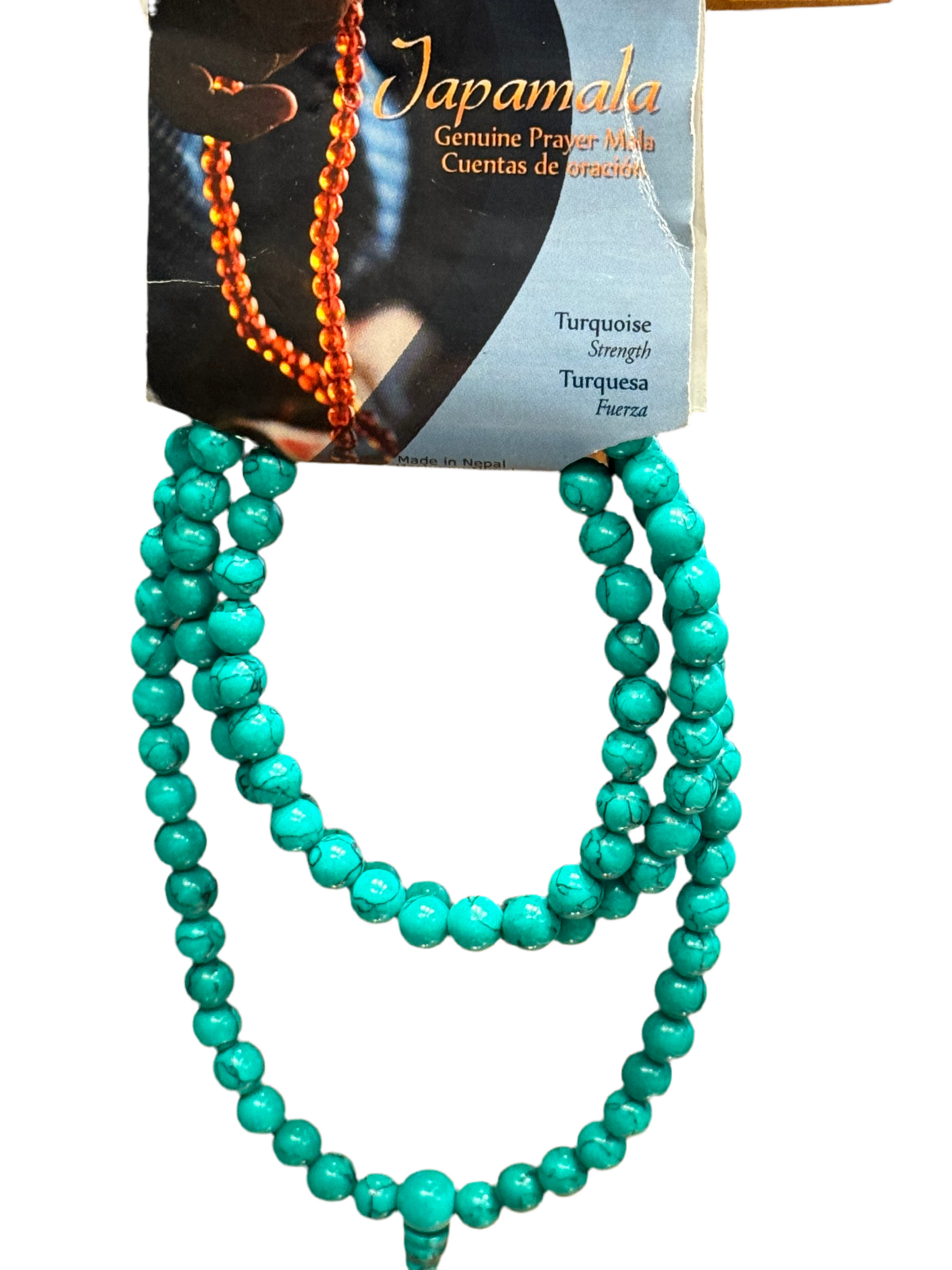 A beautiful fine quality Turquoise Prayer Mala with holes all centrally aligned and good quality cord. Each of the beads are around 6mm in diameter.