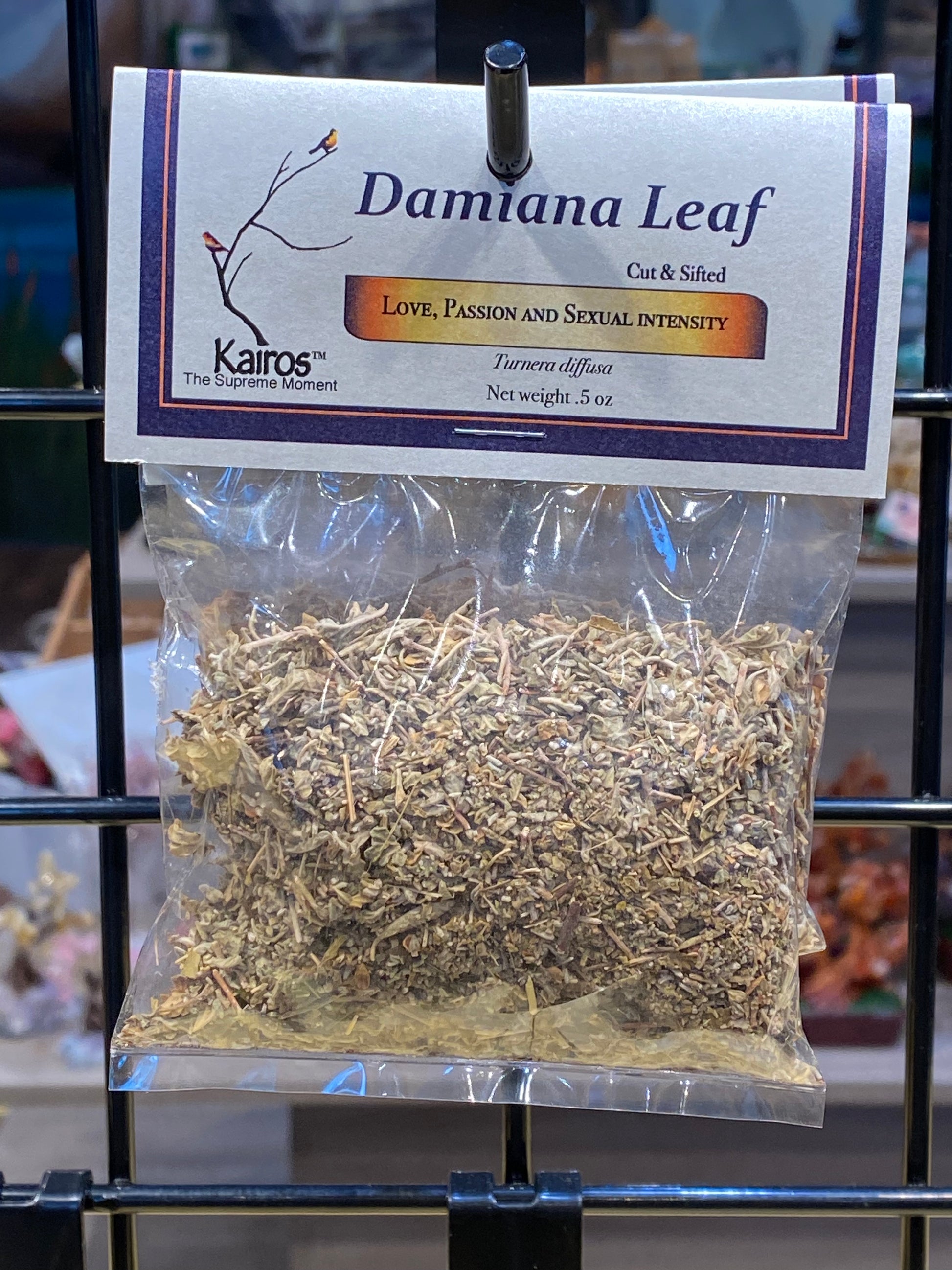 Carry Damiana Leaf to bring about a marriage proposal. Damiana Leaf also can be carried in red flannel bag to attract good luck. Damiana Leaf herb should be discarded and replaced every seventh day.