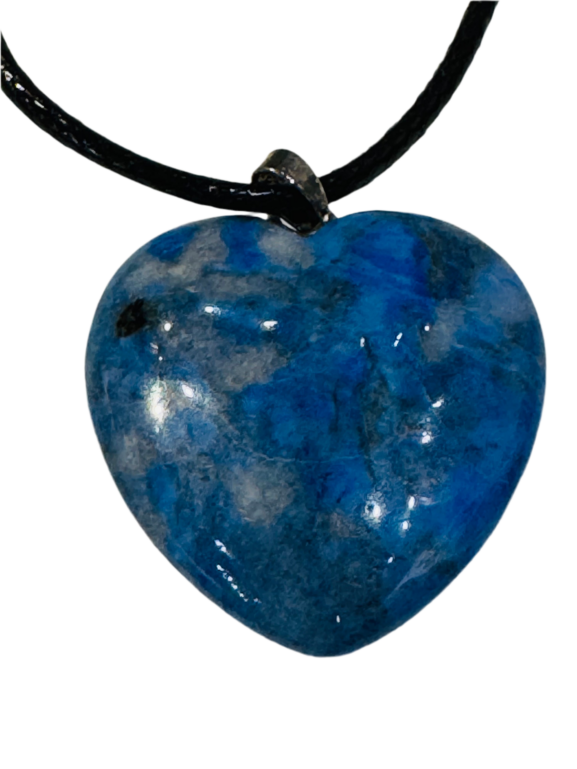 Lapis Heart Pendant Hand Carved Polished with Black Adjustable Cord Necklace