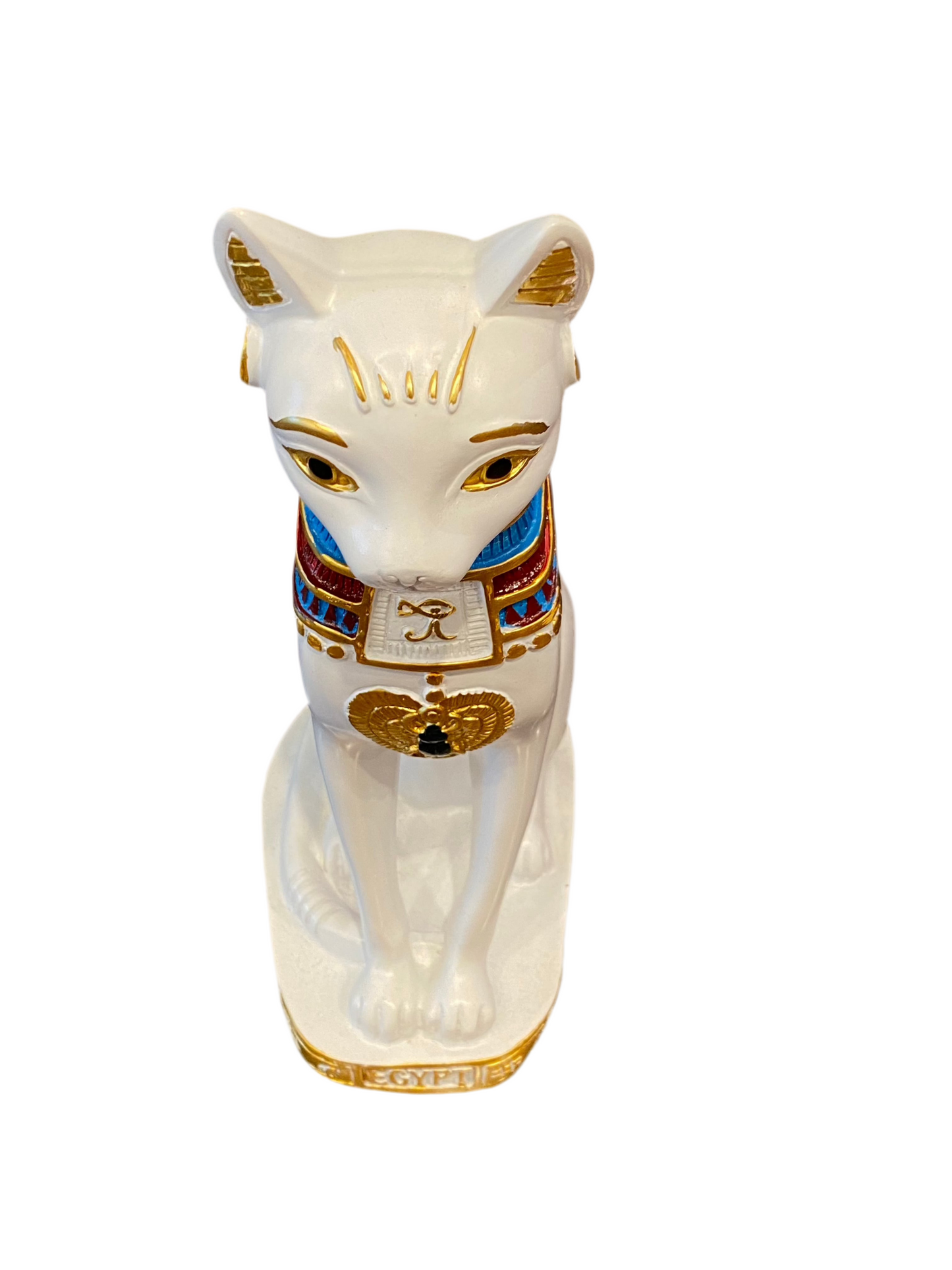 The Large White Egyptian Bastet Cat represents protection, fertility, and home blessings. As the goddess Bastet, she is known to safeguard cats and those who love them. This Large White Egyptian Bastet Cat is a perfect addition to any altar, home, or sacred space, radiating divine energy and elegance.