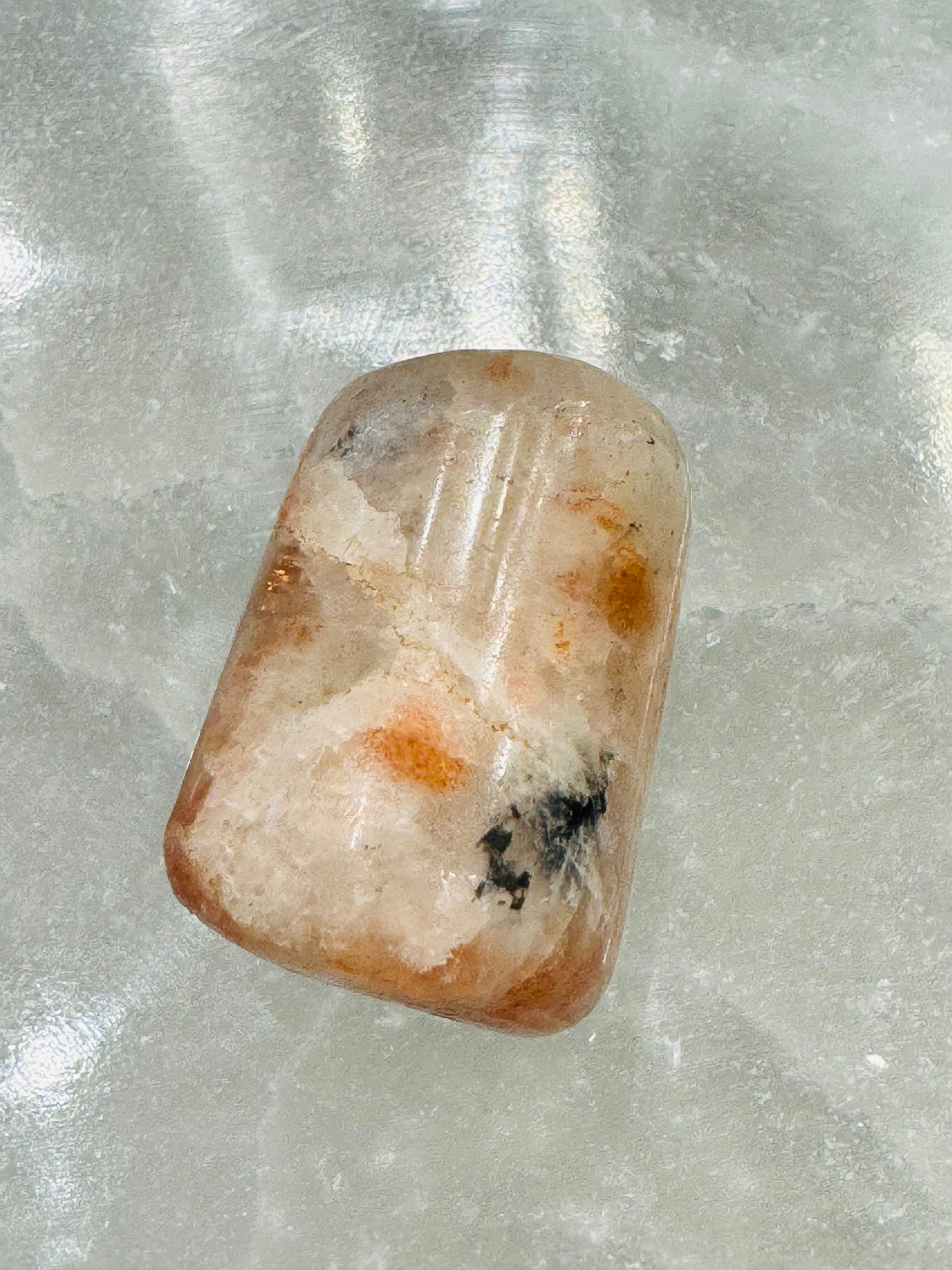 Sunstone - A solar plexus chakra stone, sunstone absorbs and radiates sun energy. It boosts optimism, enthusiasm and a zest for life.