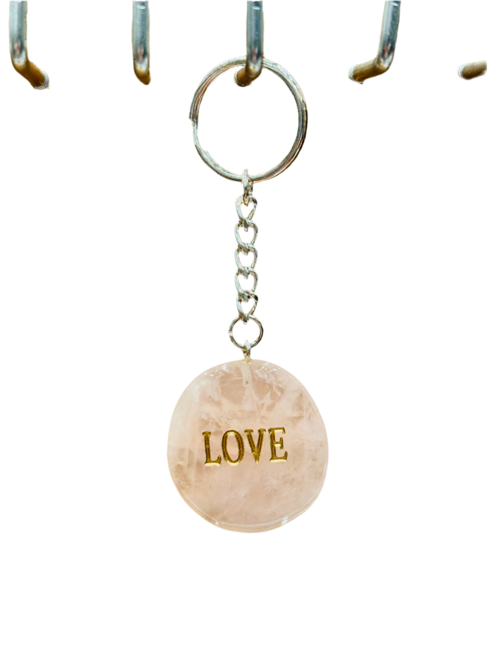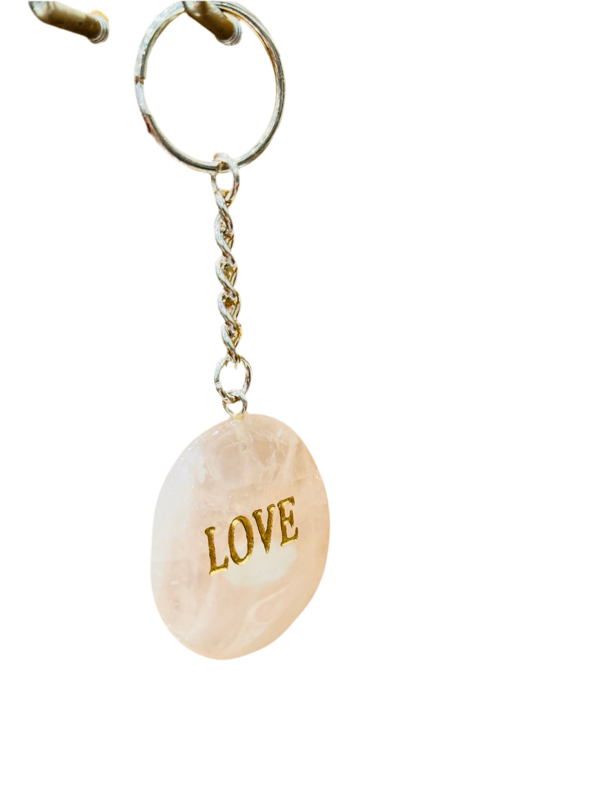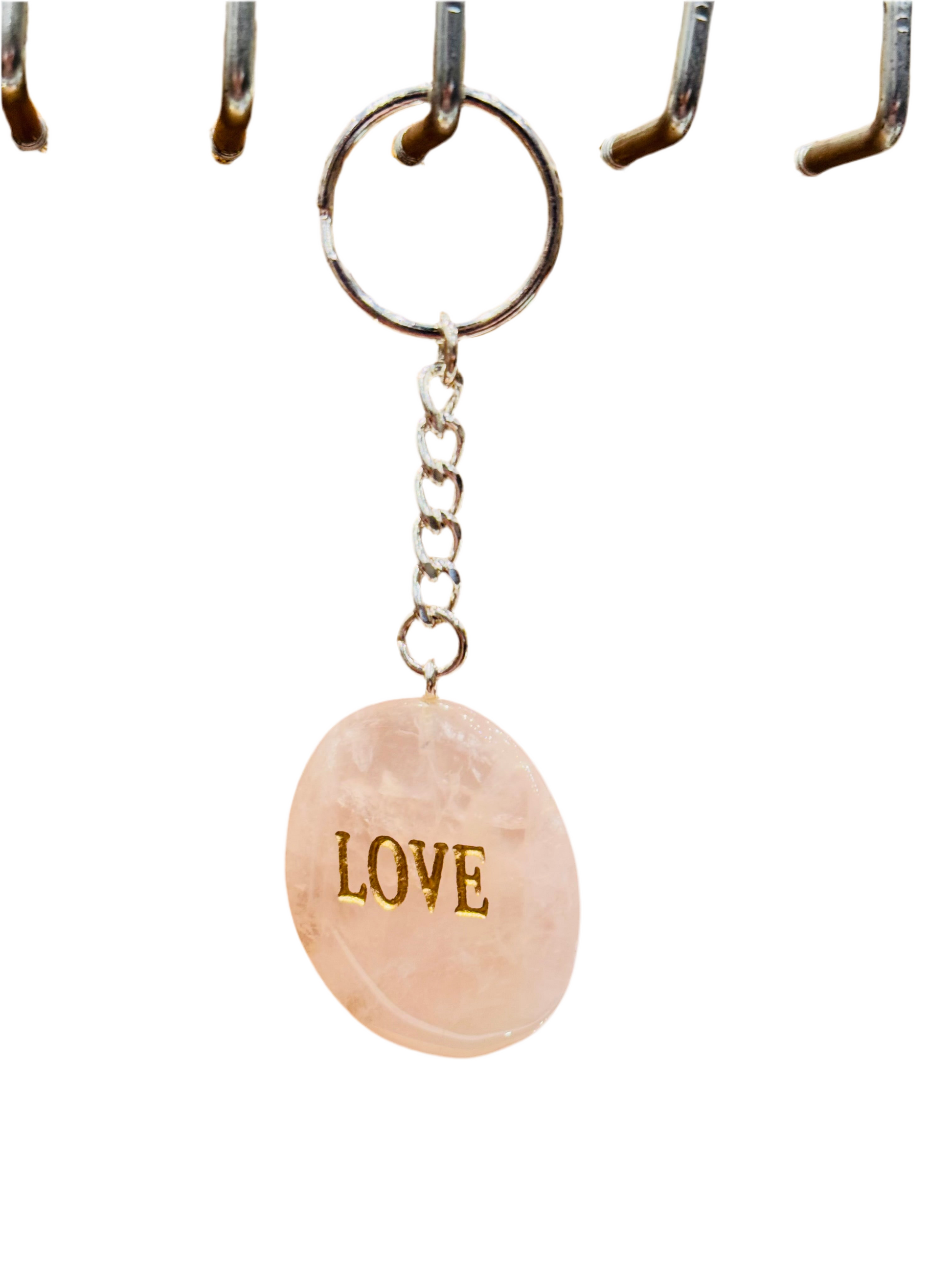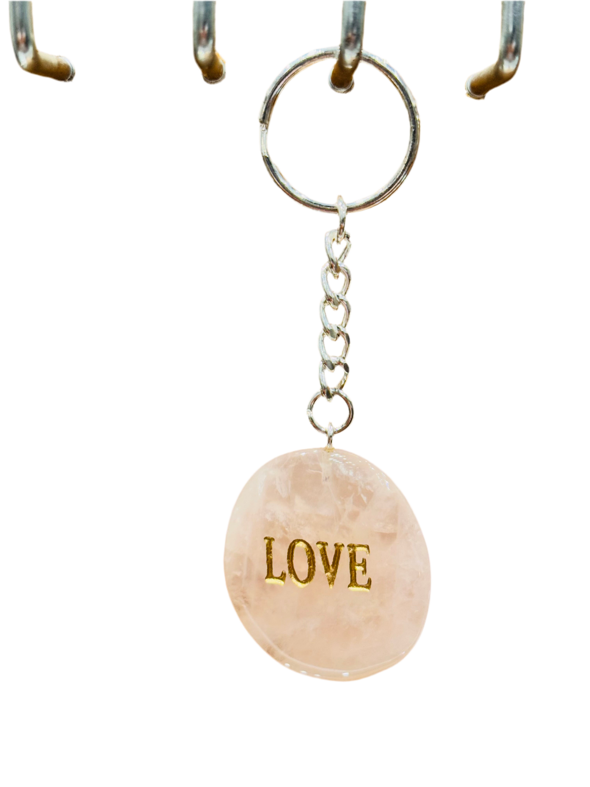 Rose Quartz Love Keychain Handmade Engraved Polished