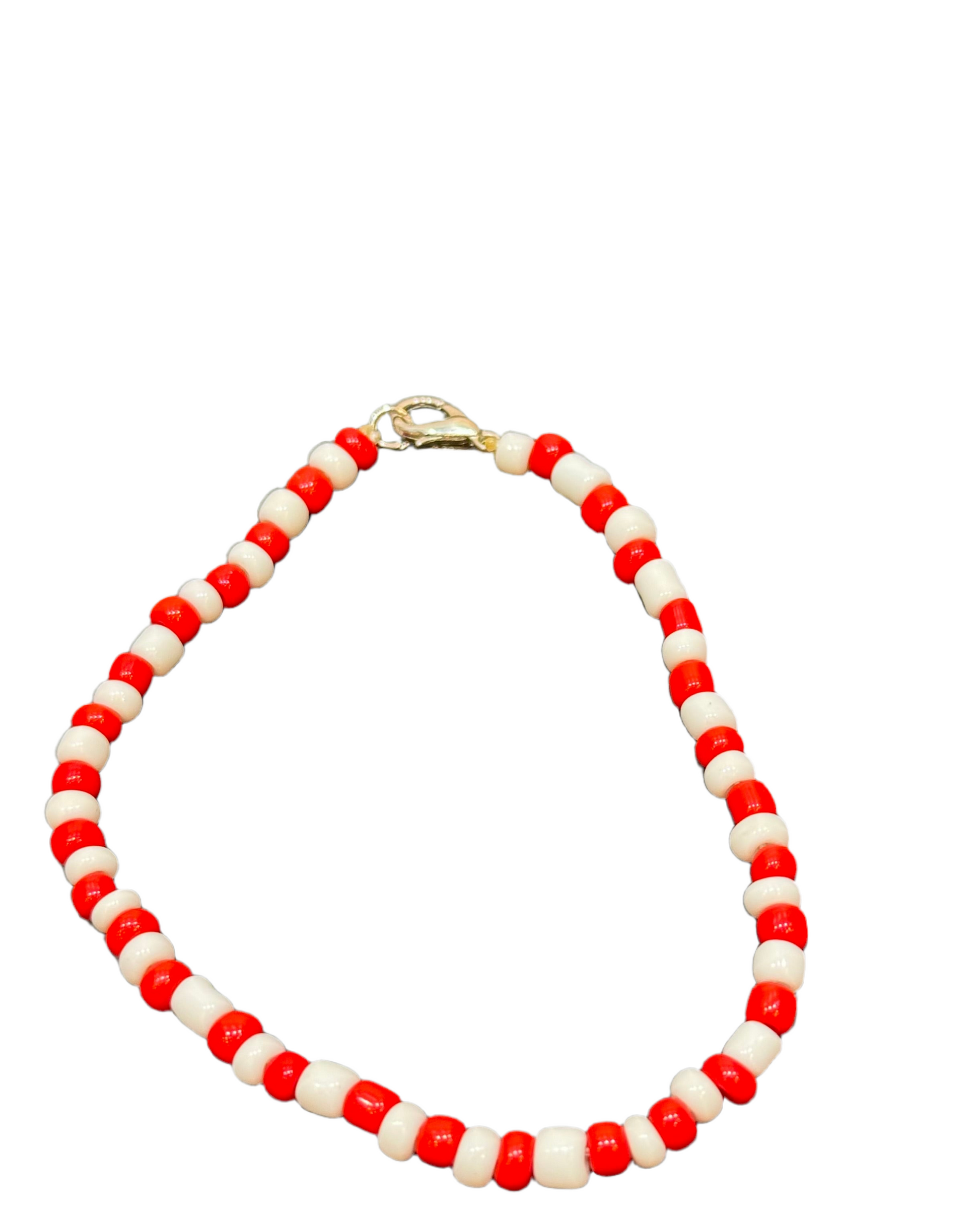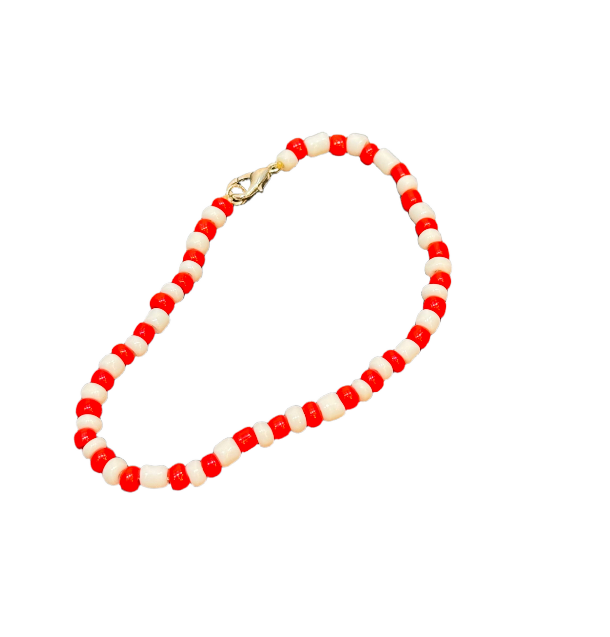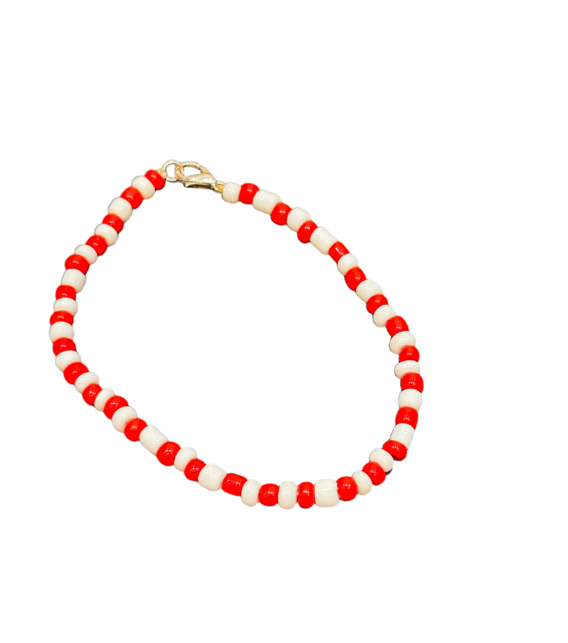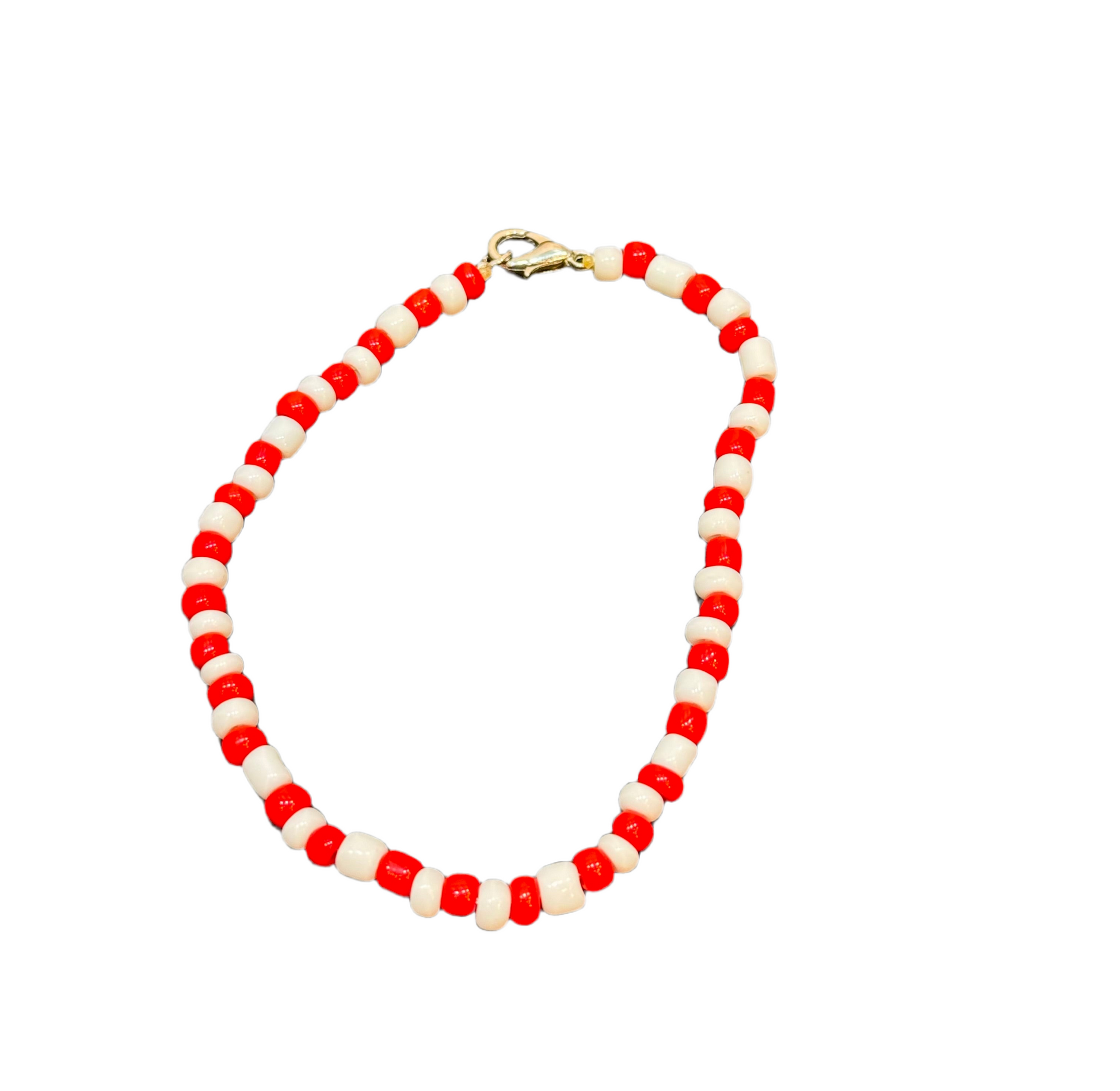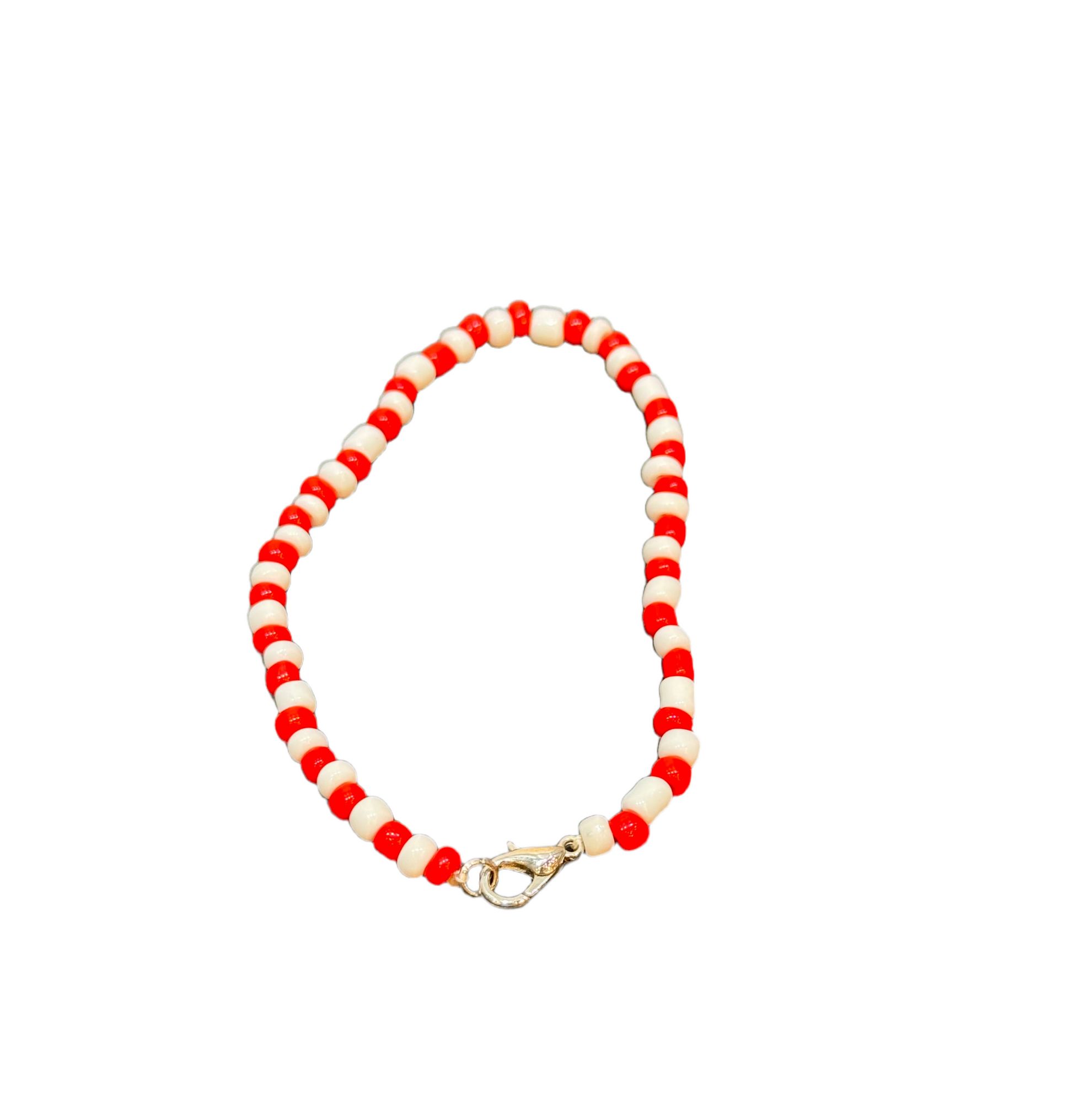 Chango or Shango Orisha Beaded Bracelet with Clasp Red and White