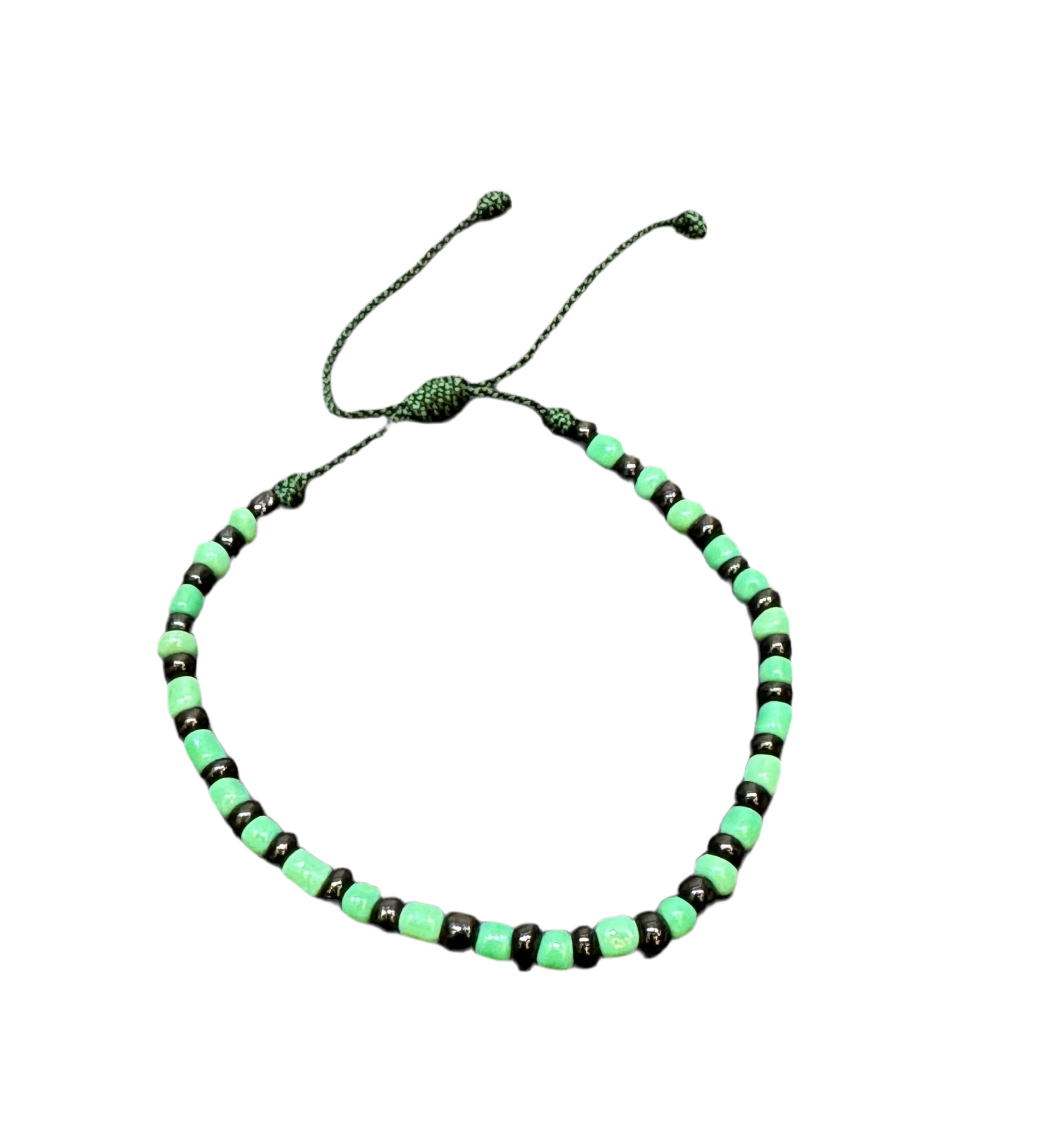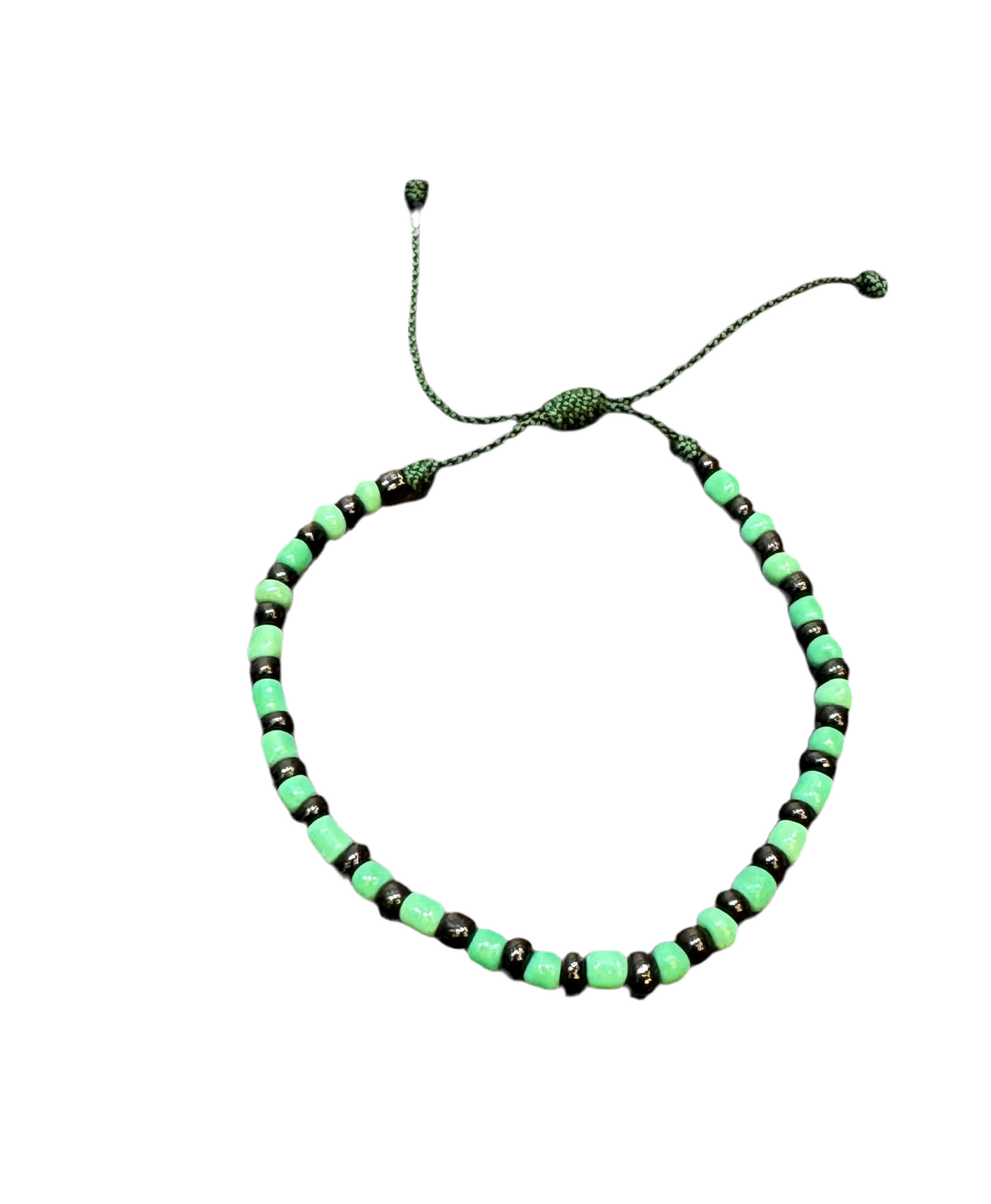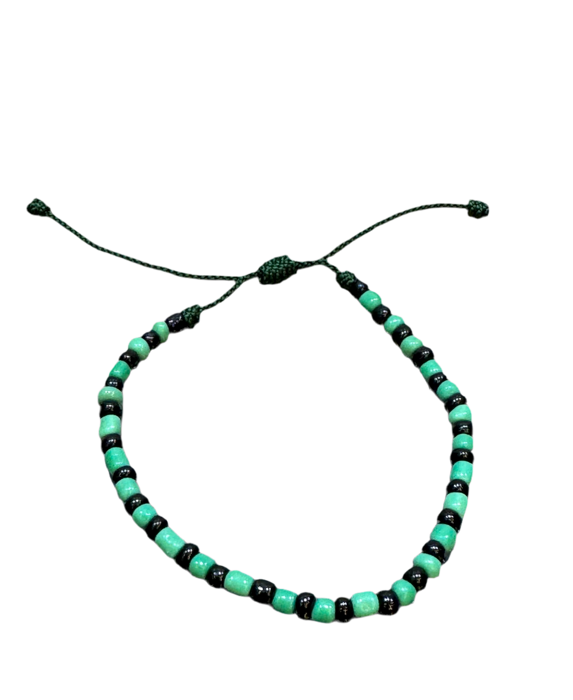 Orisha Ogún Handmade Beaded Black and Green Pull Tie String Bracelet
