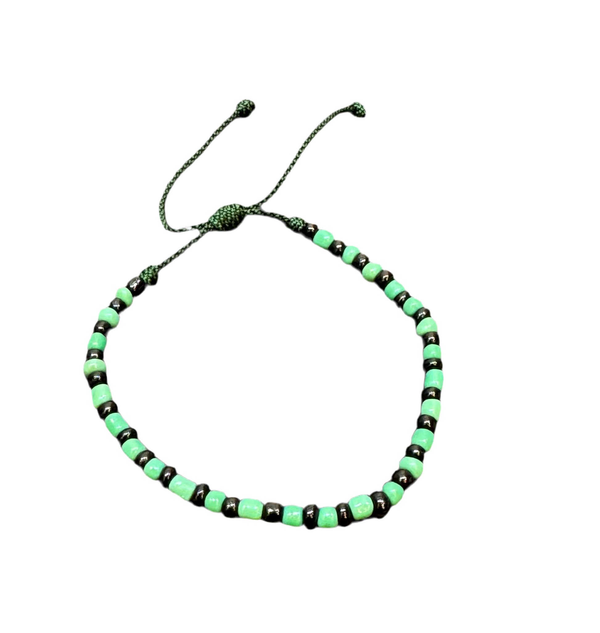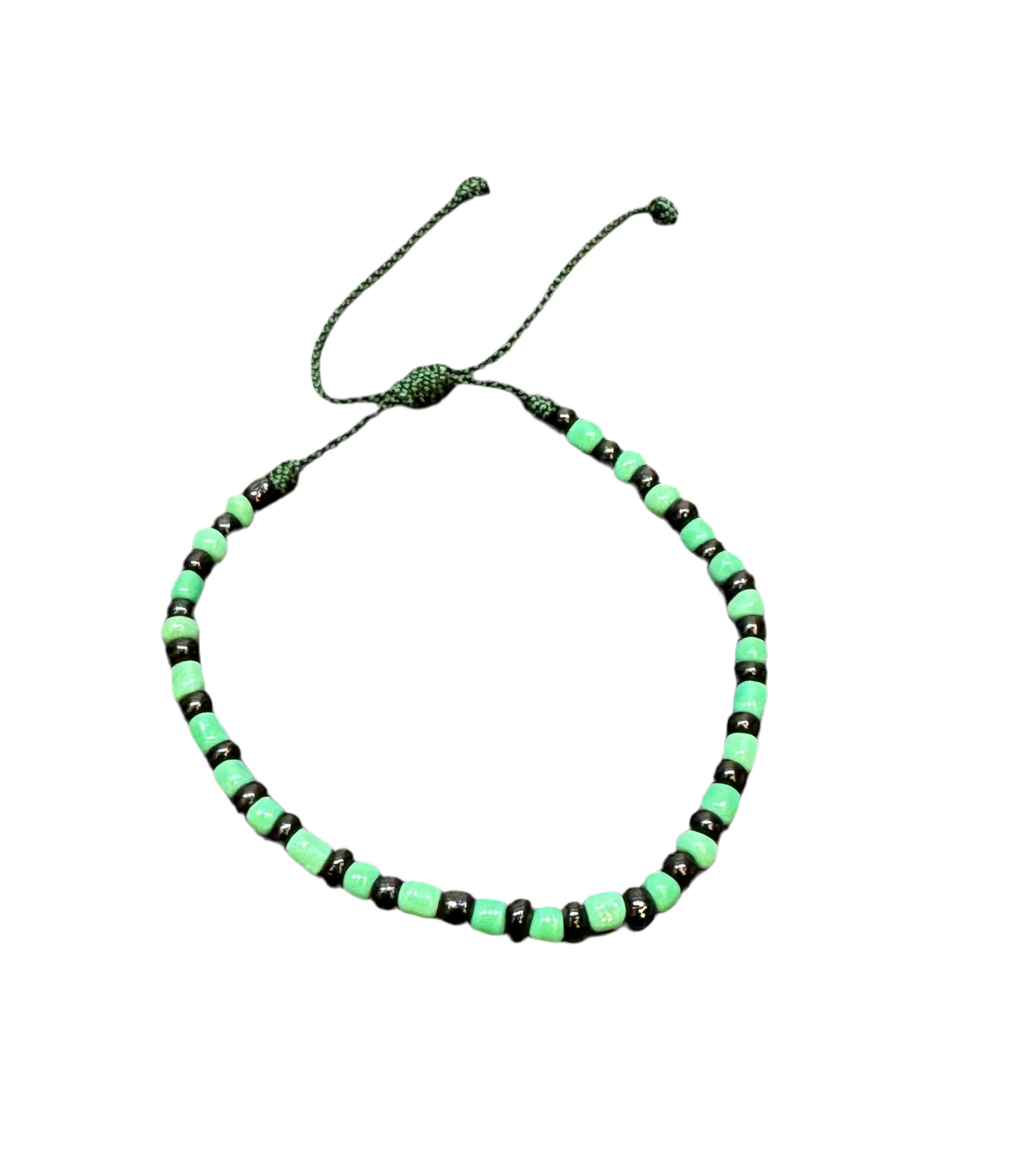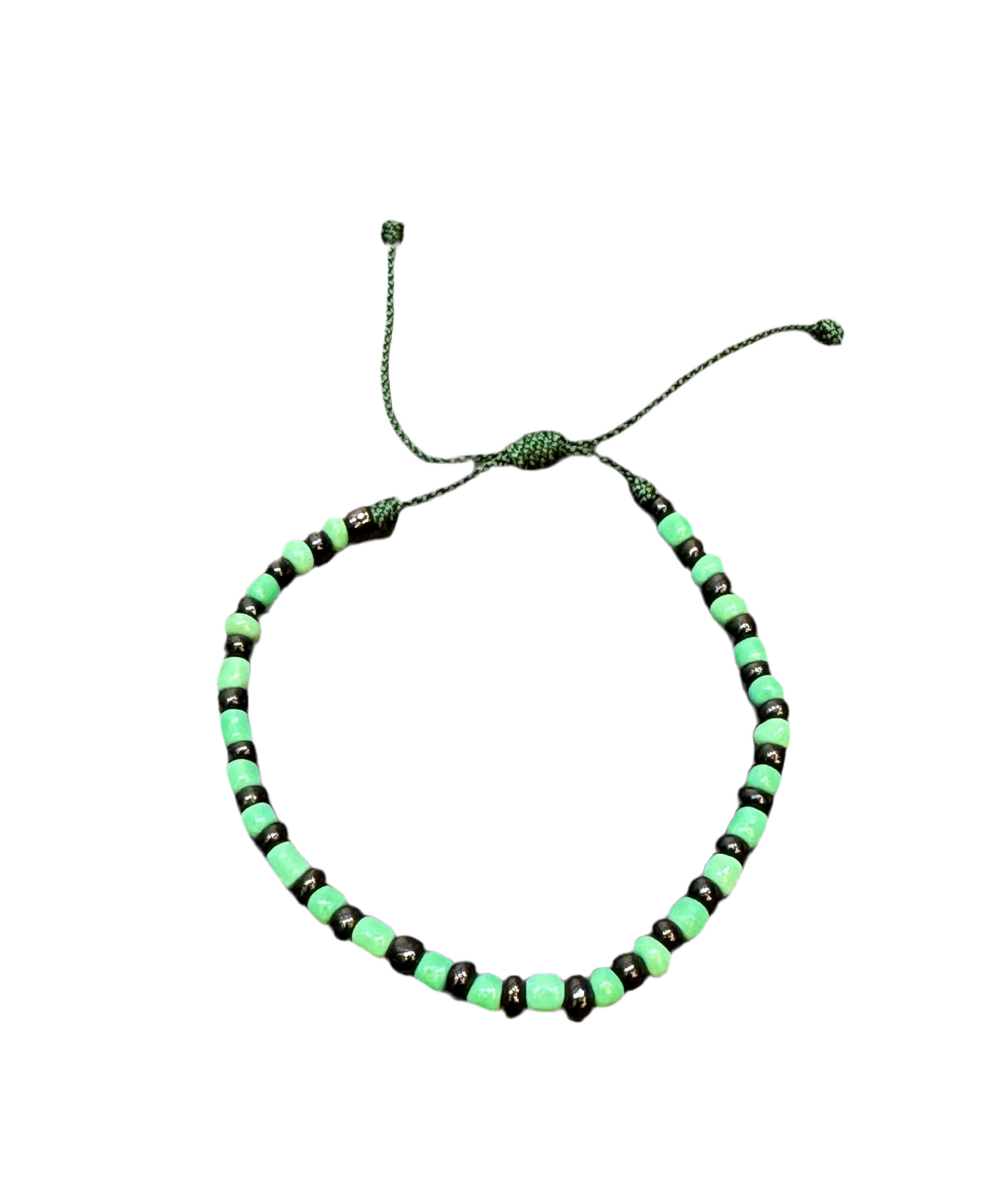 Orisha Ogún Handmade Beaded Black and Green Pull Tie String Bracelet