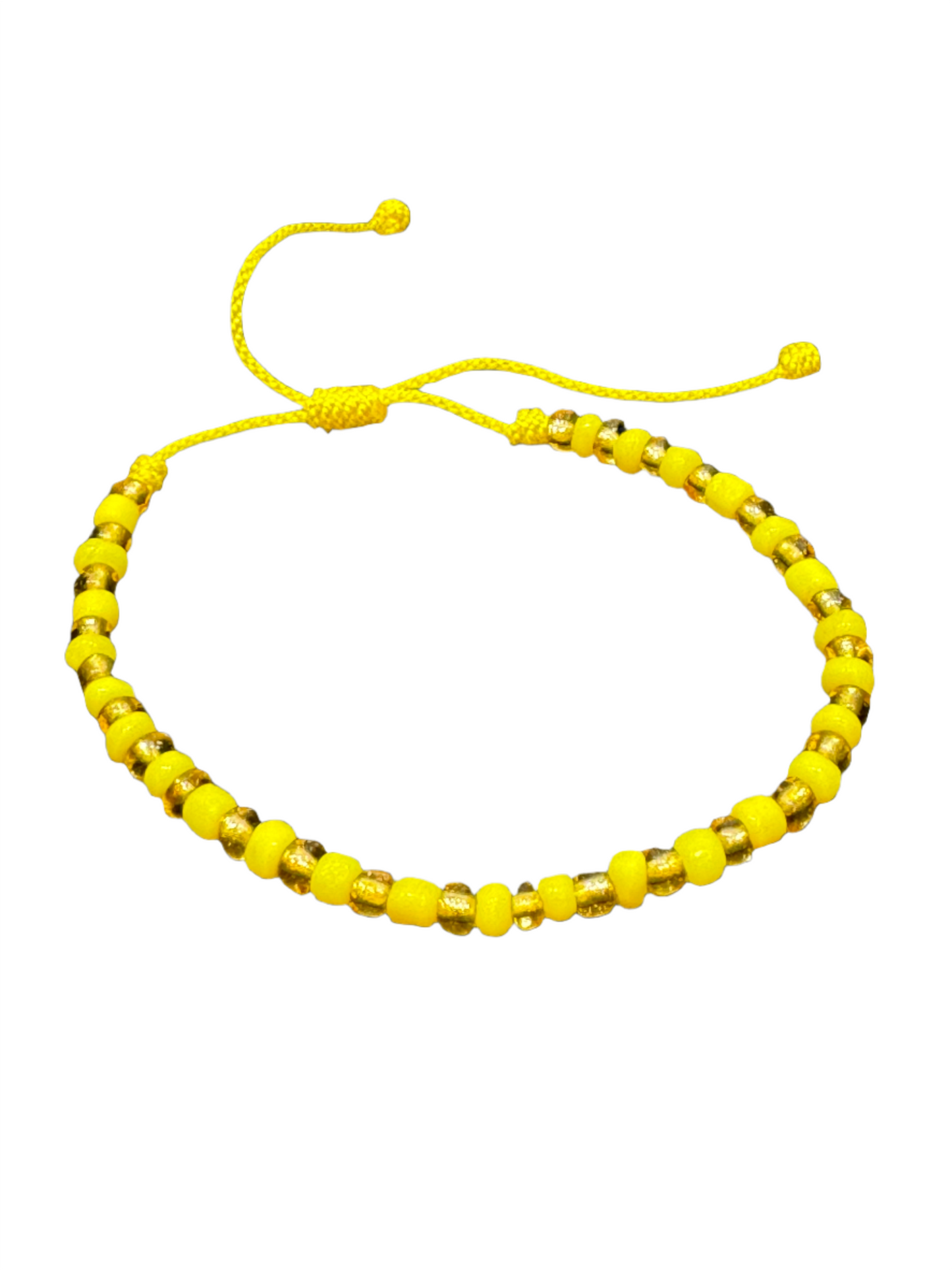 Orisha Ochun Beaded Bracelet Gold and Yellow Oshun Pull Tie String Bracelet