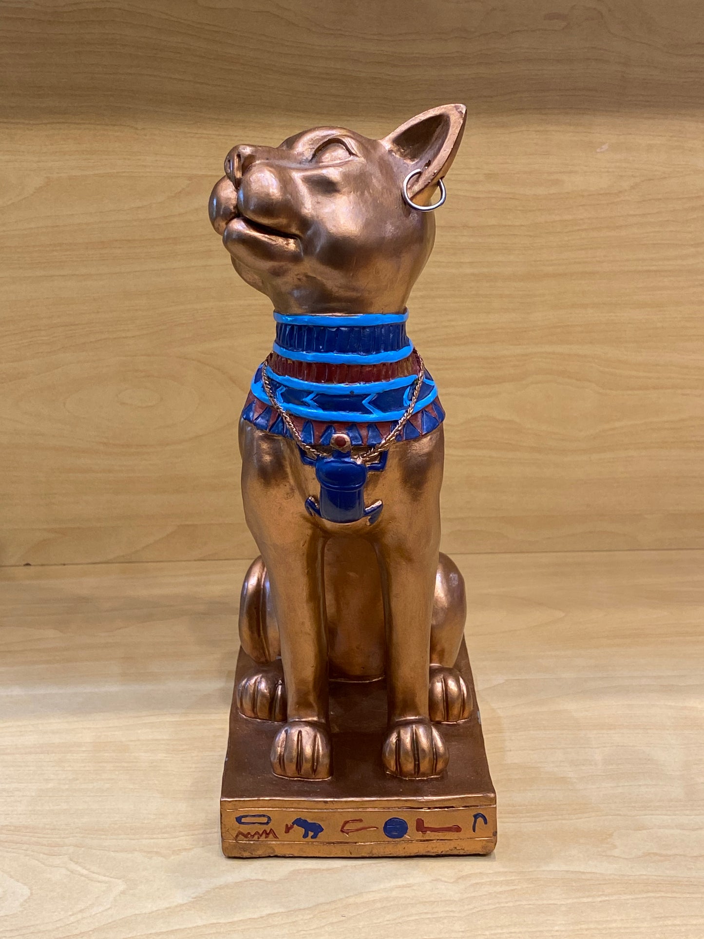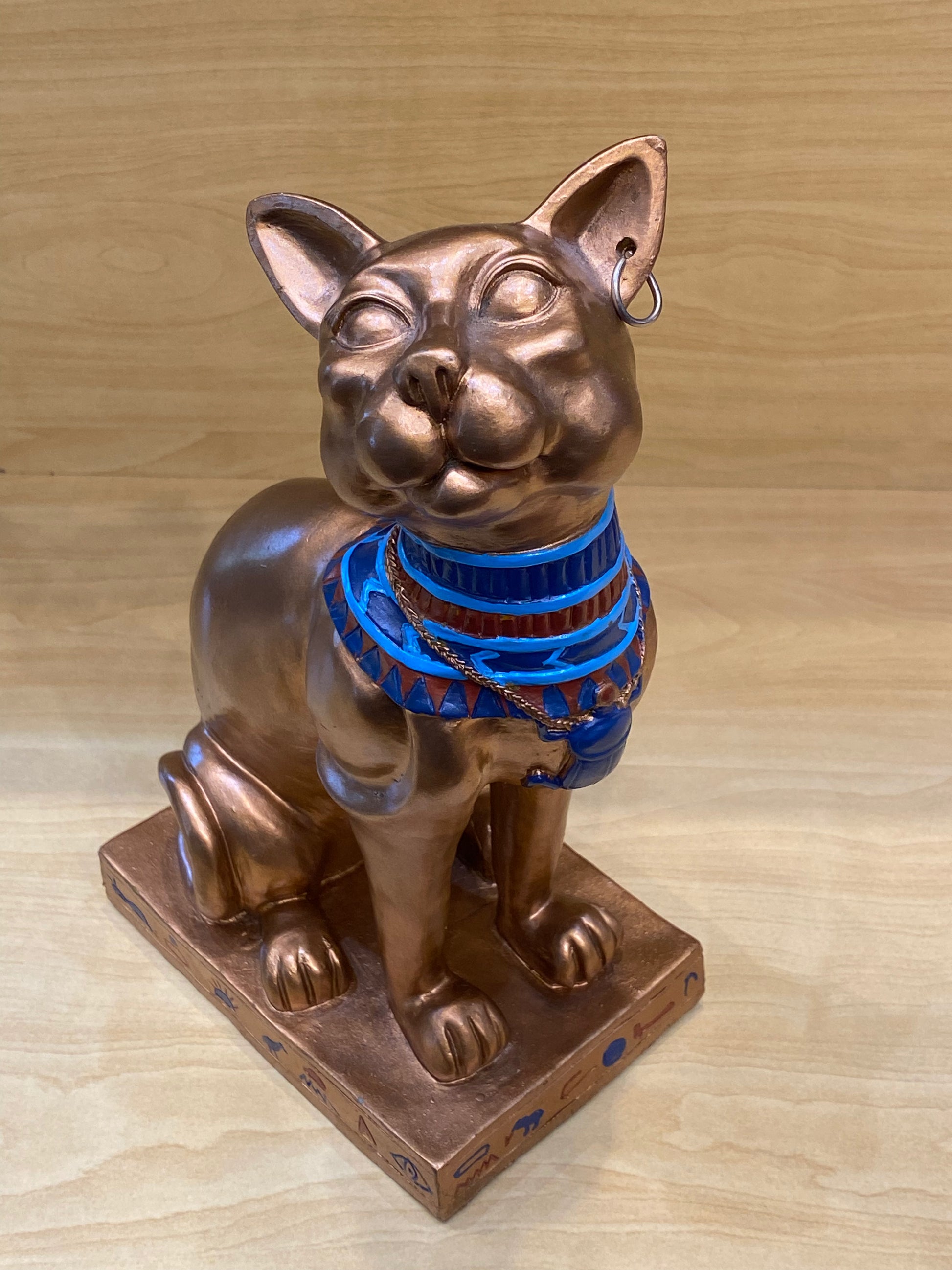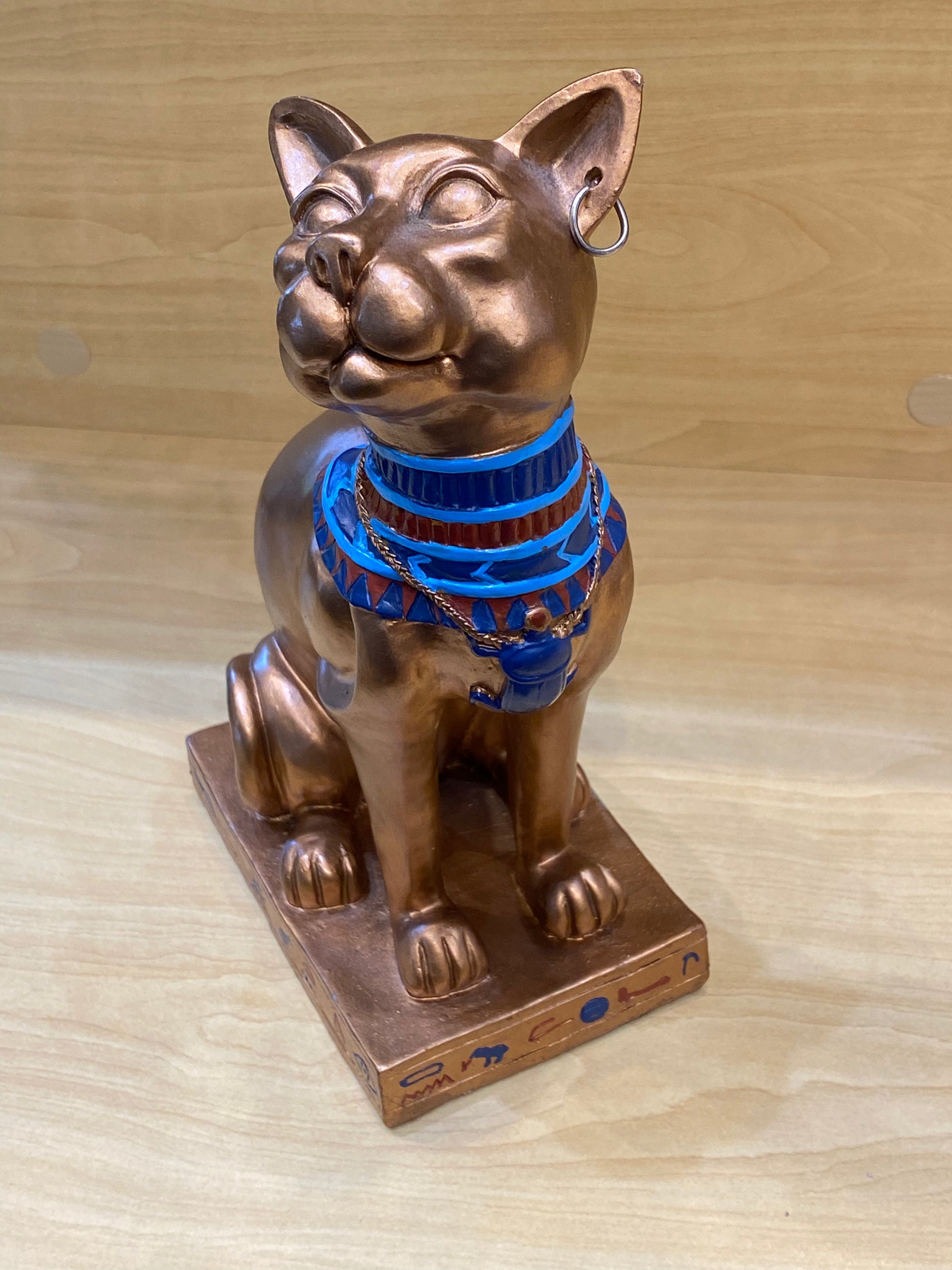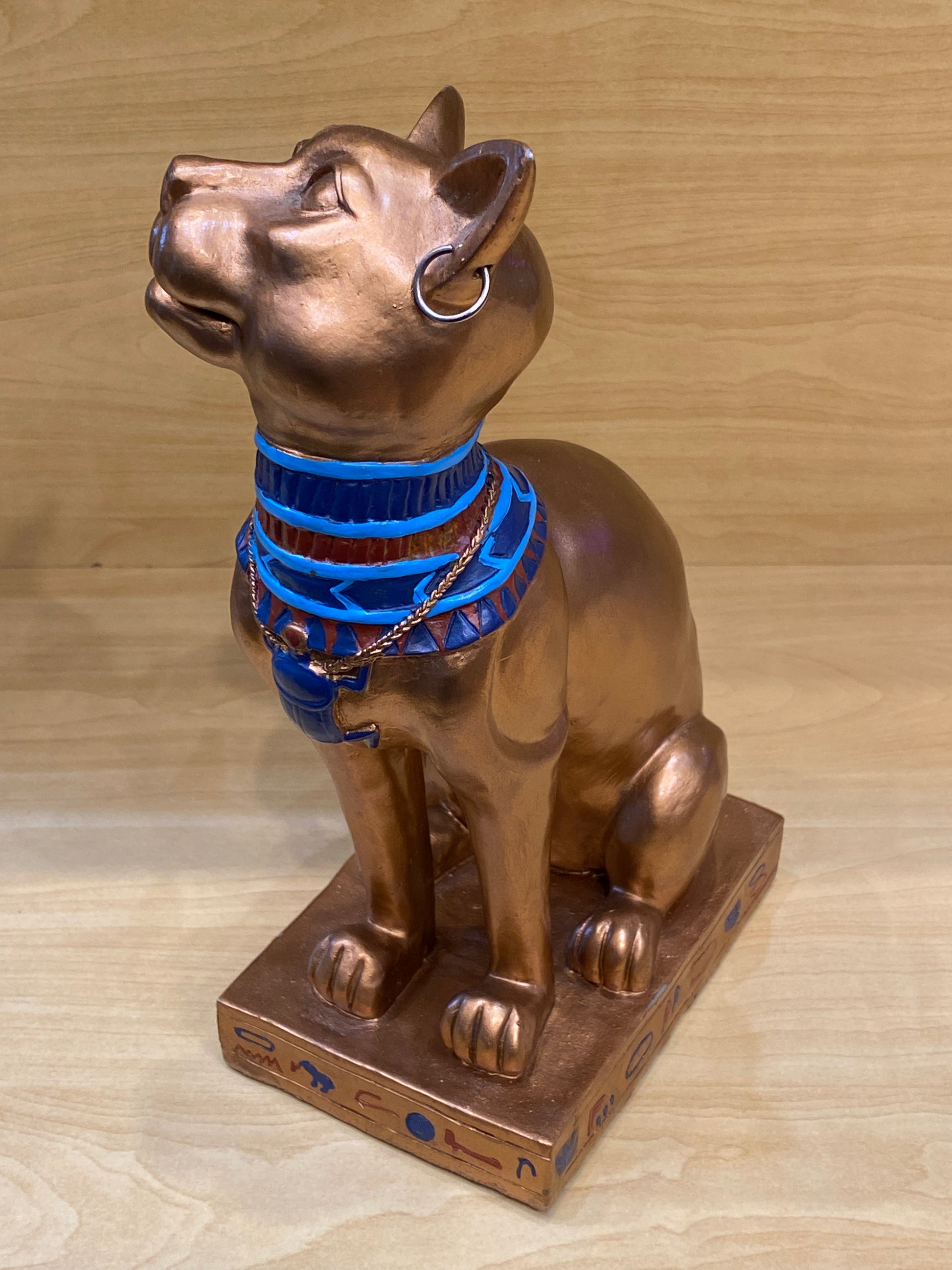 Look at this gorgeous Egyptian Bastet Sculpture. This piece will make an eye-catching addition for your display shelves, desktops, or office decor. And it is a perfect gift for enthusiasts of ancient Egypt mythology.