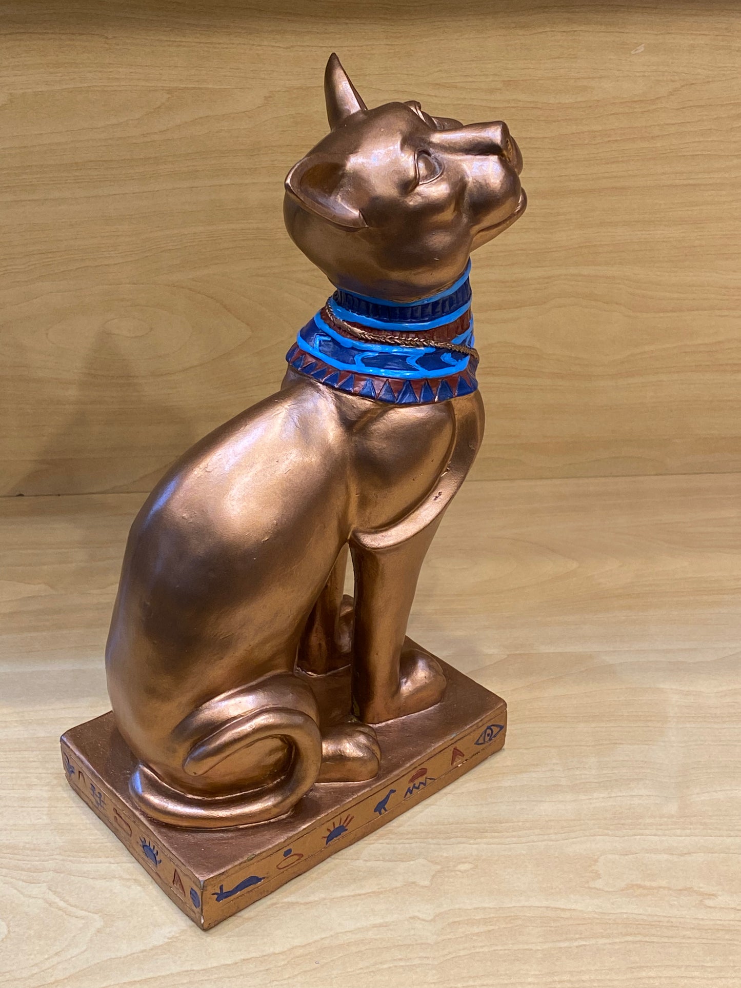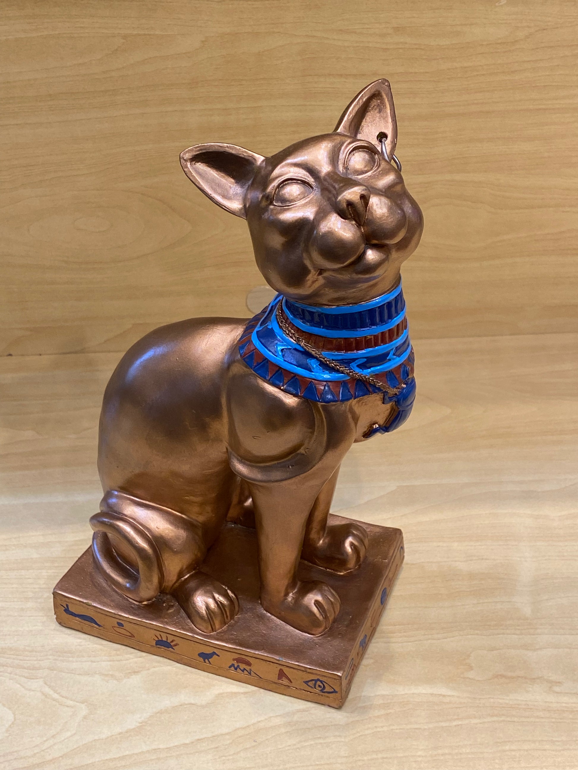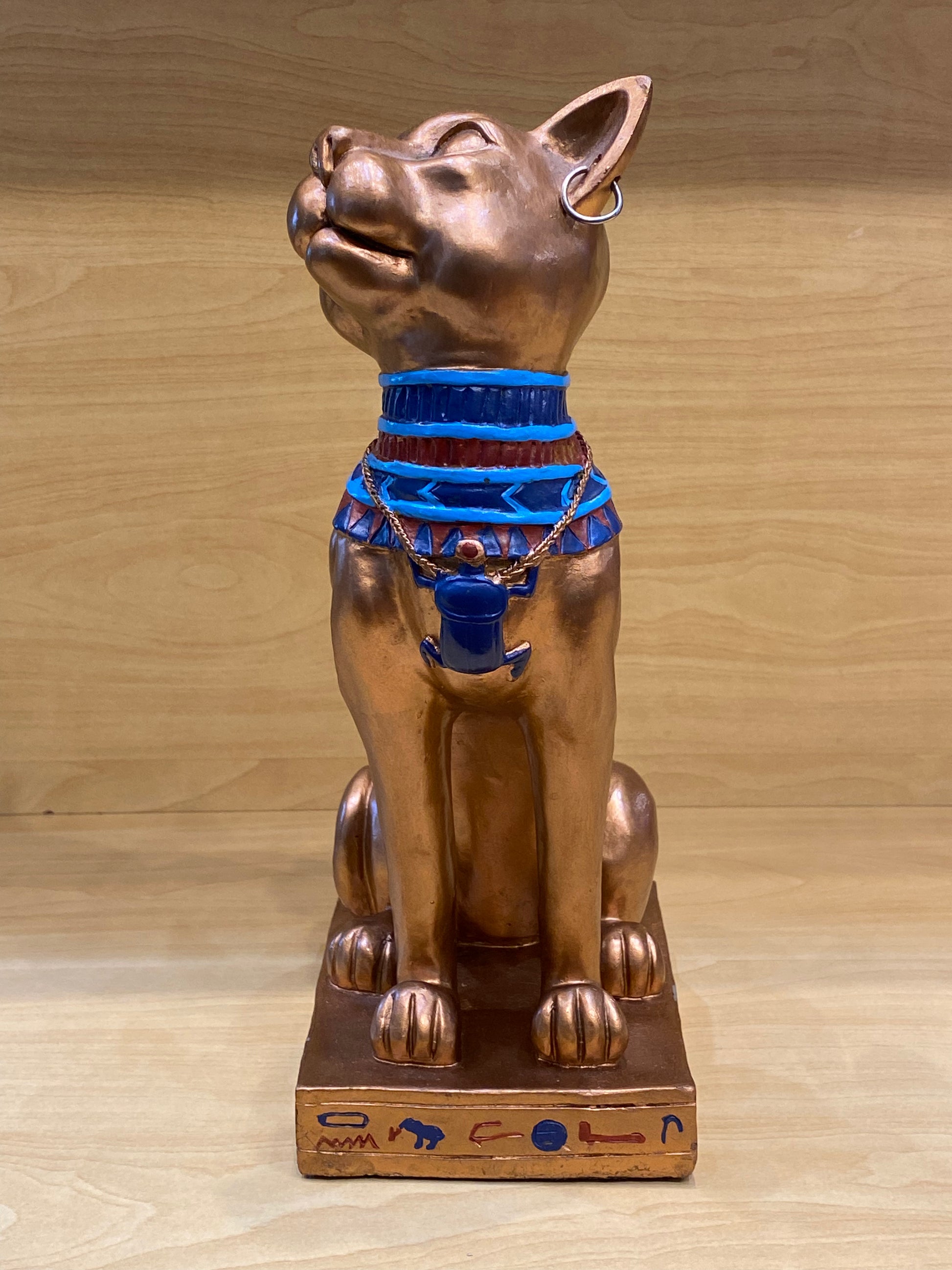 Antique Egyptian Bastet With Engraved Collar Large Cat 12”