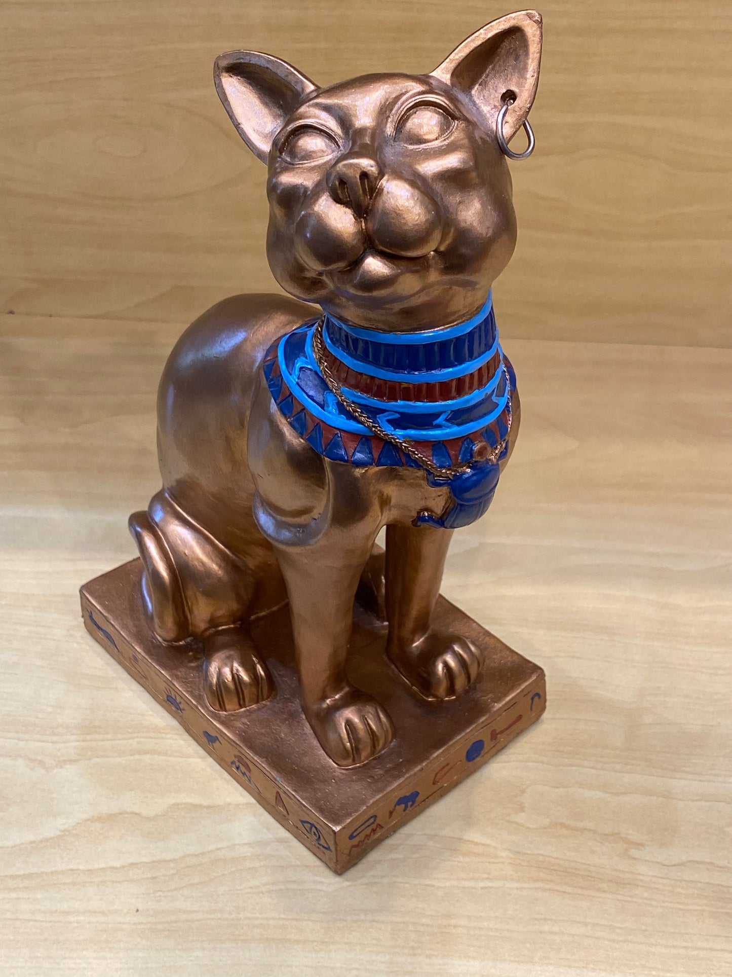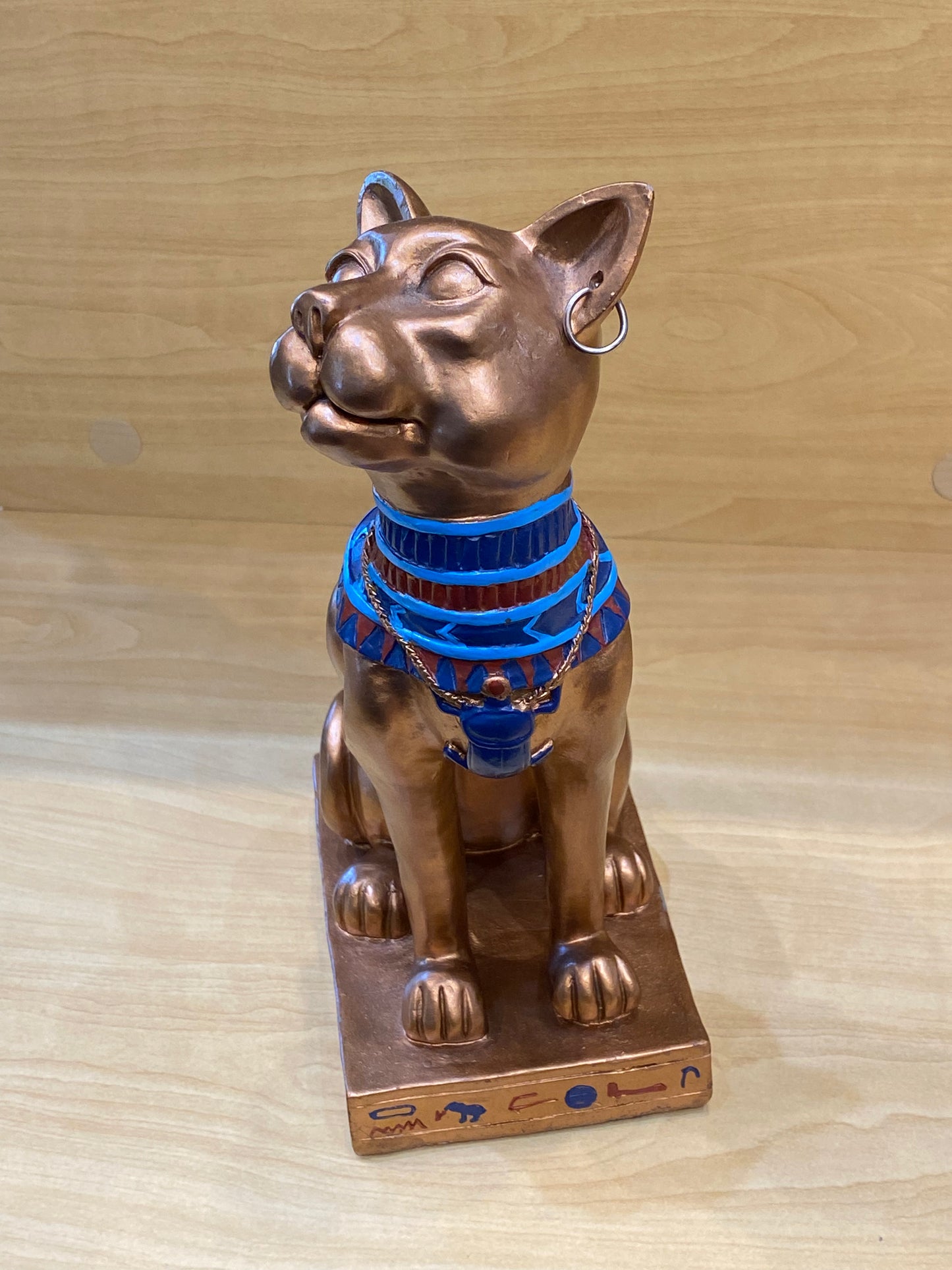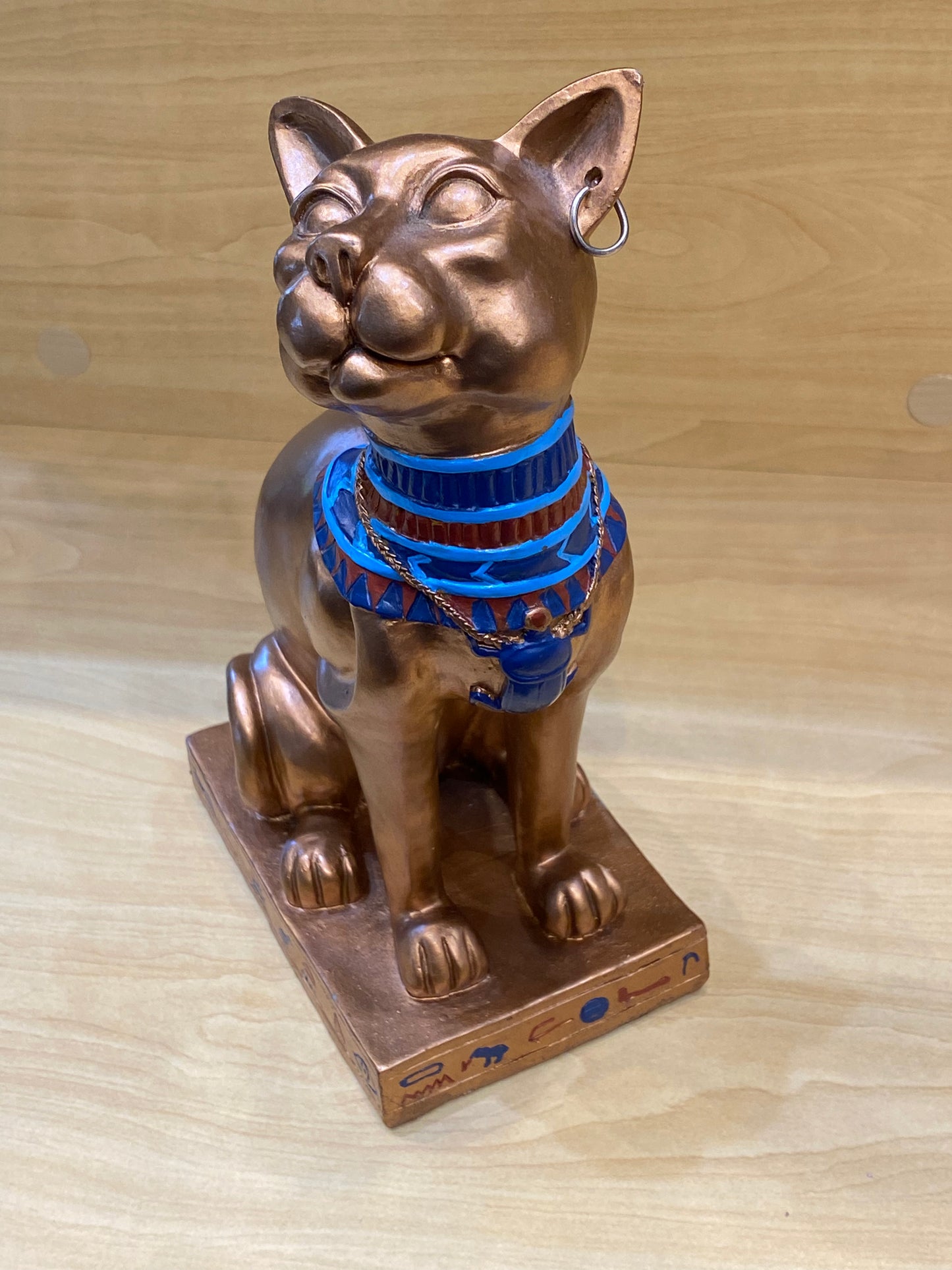 Antique Egyptian Bastet With Engraved Collar Large Cat 12”