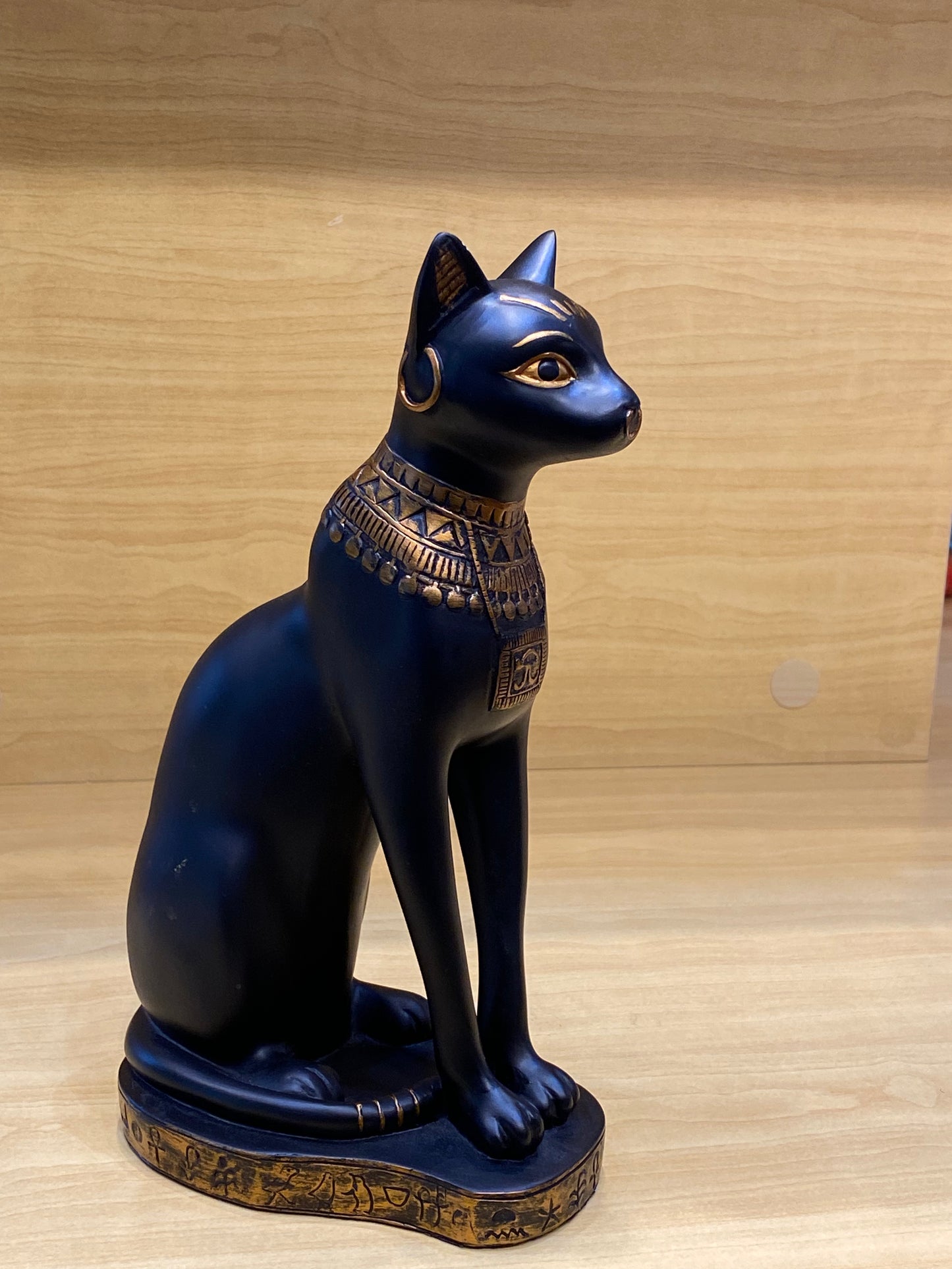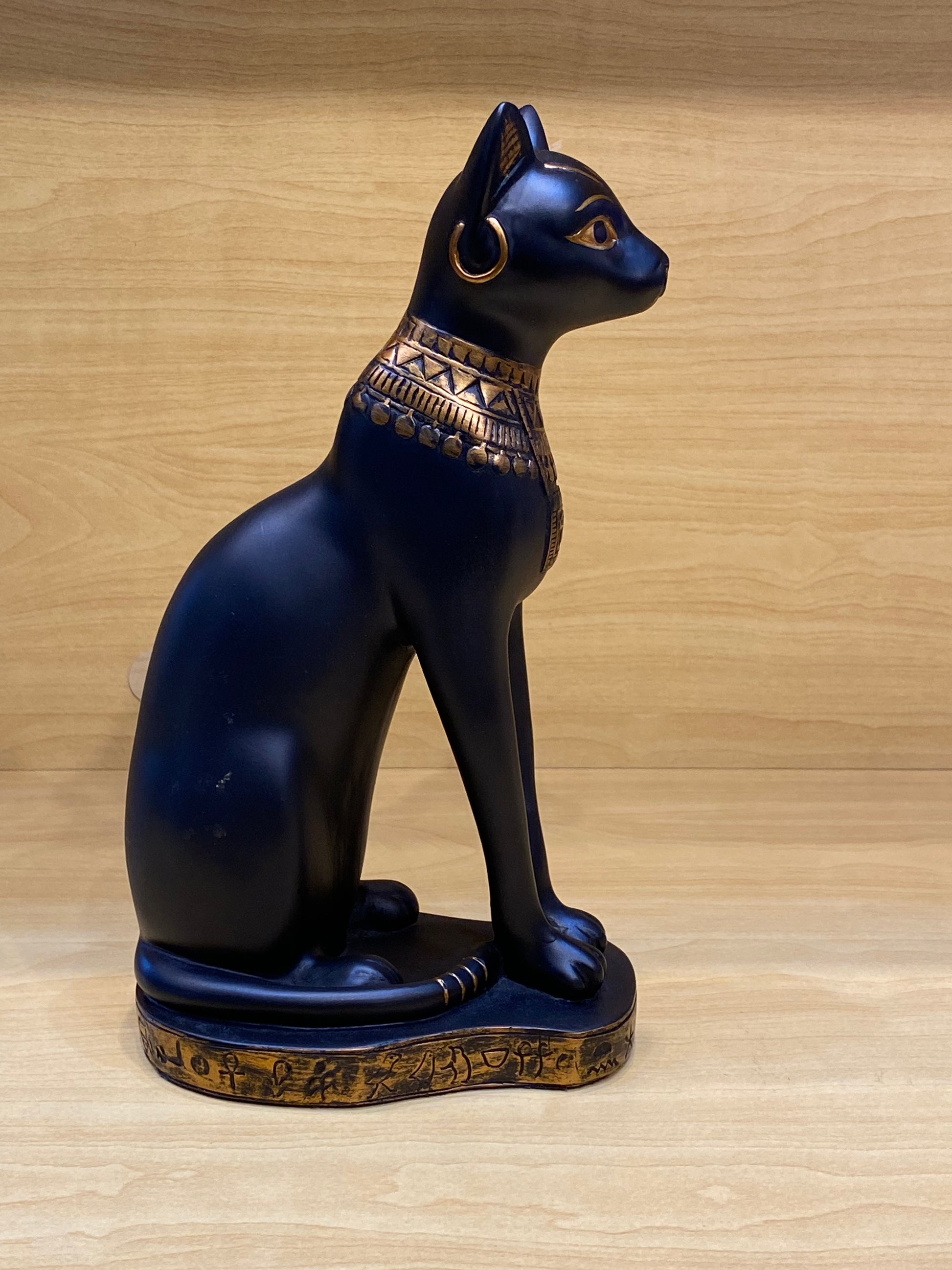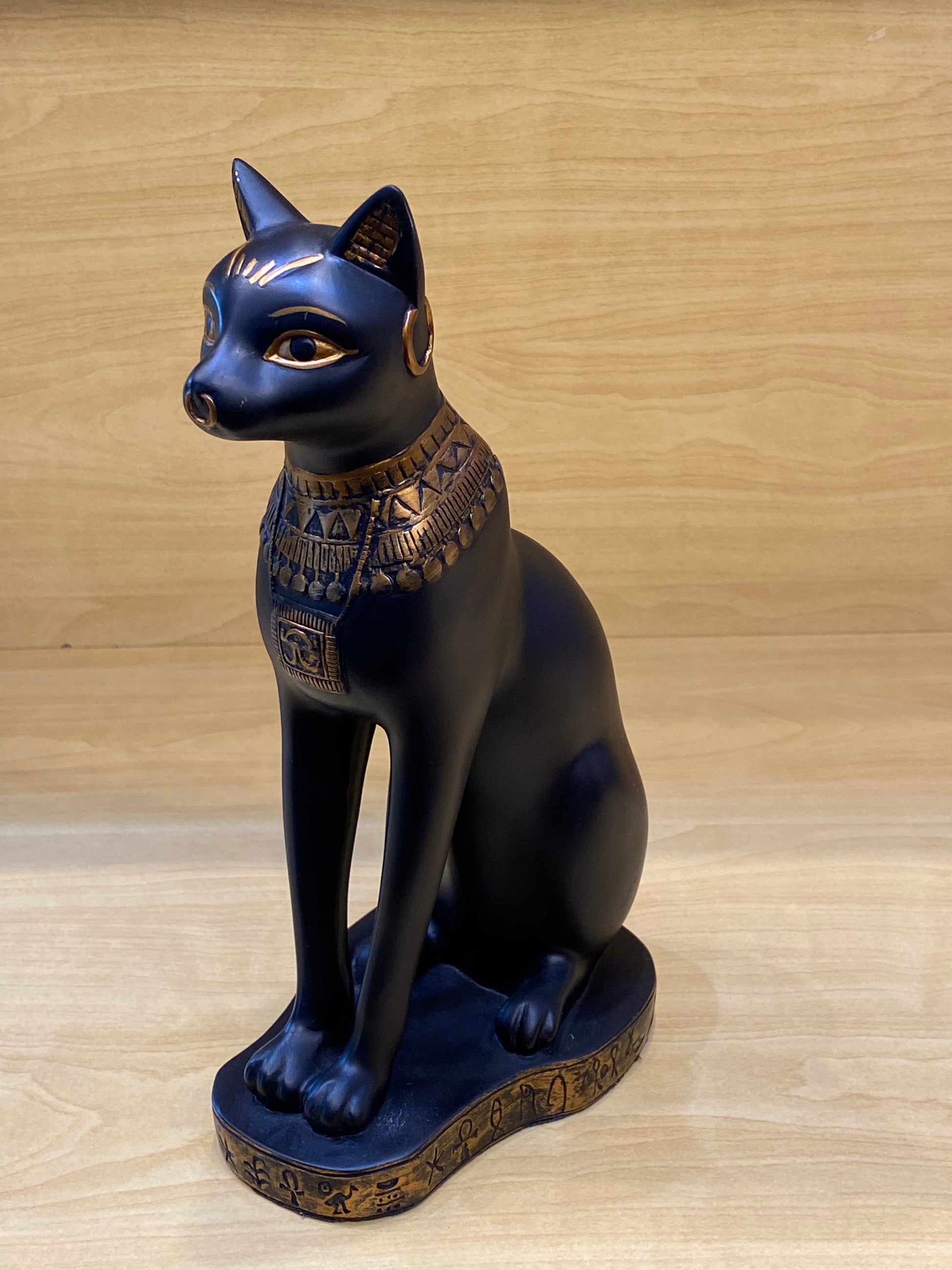 Cats were sacred to Bastet, a sun goddess who represents the warm, life giving power of the sun, shown here as a 9 inch statue.