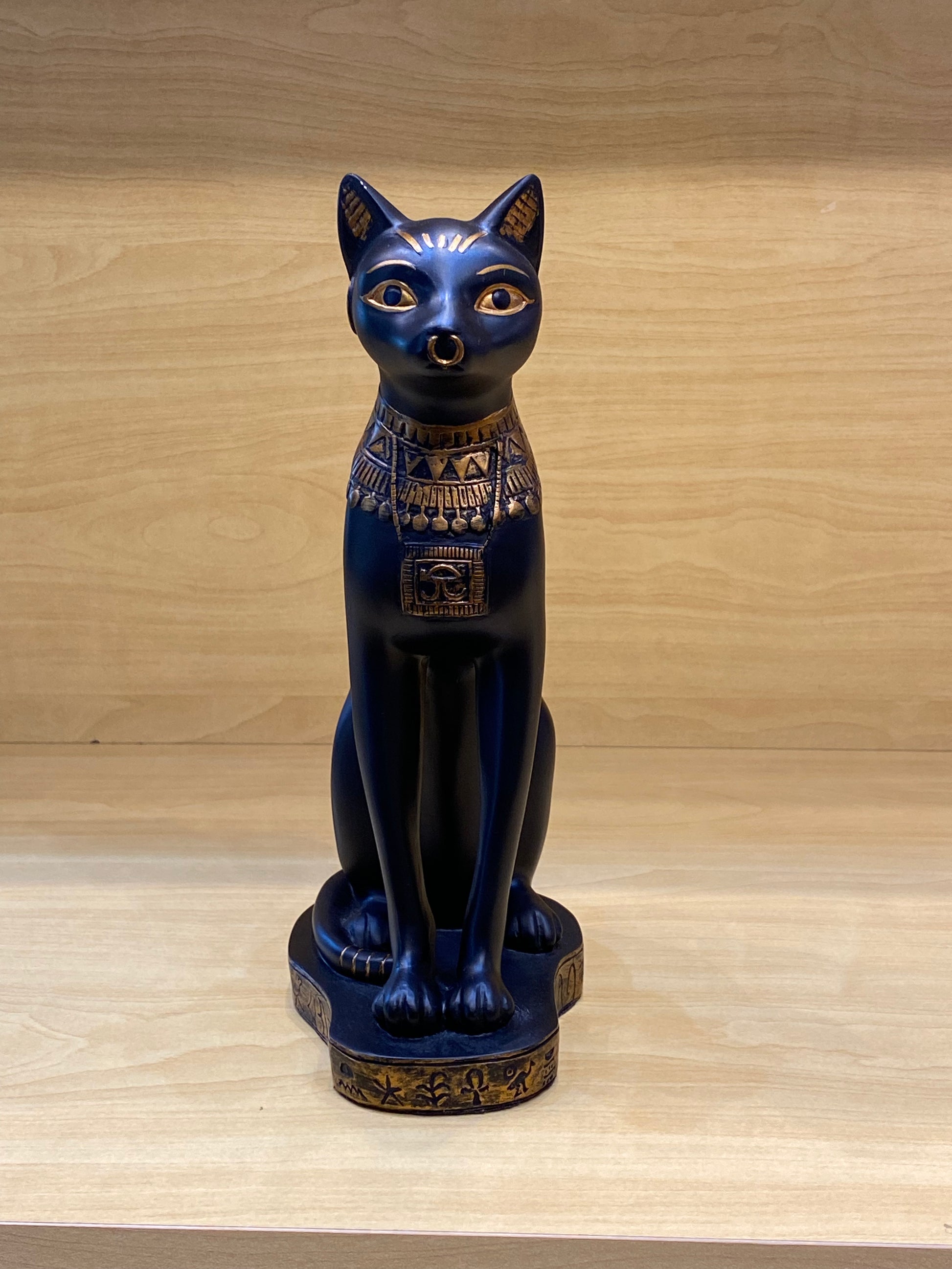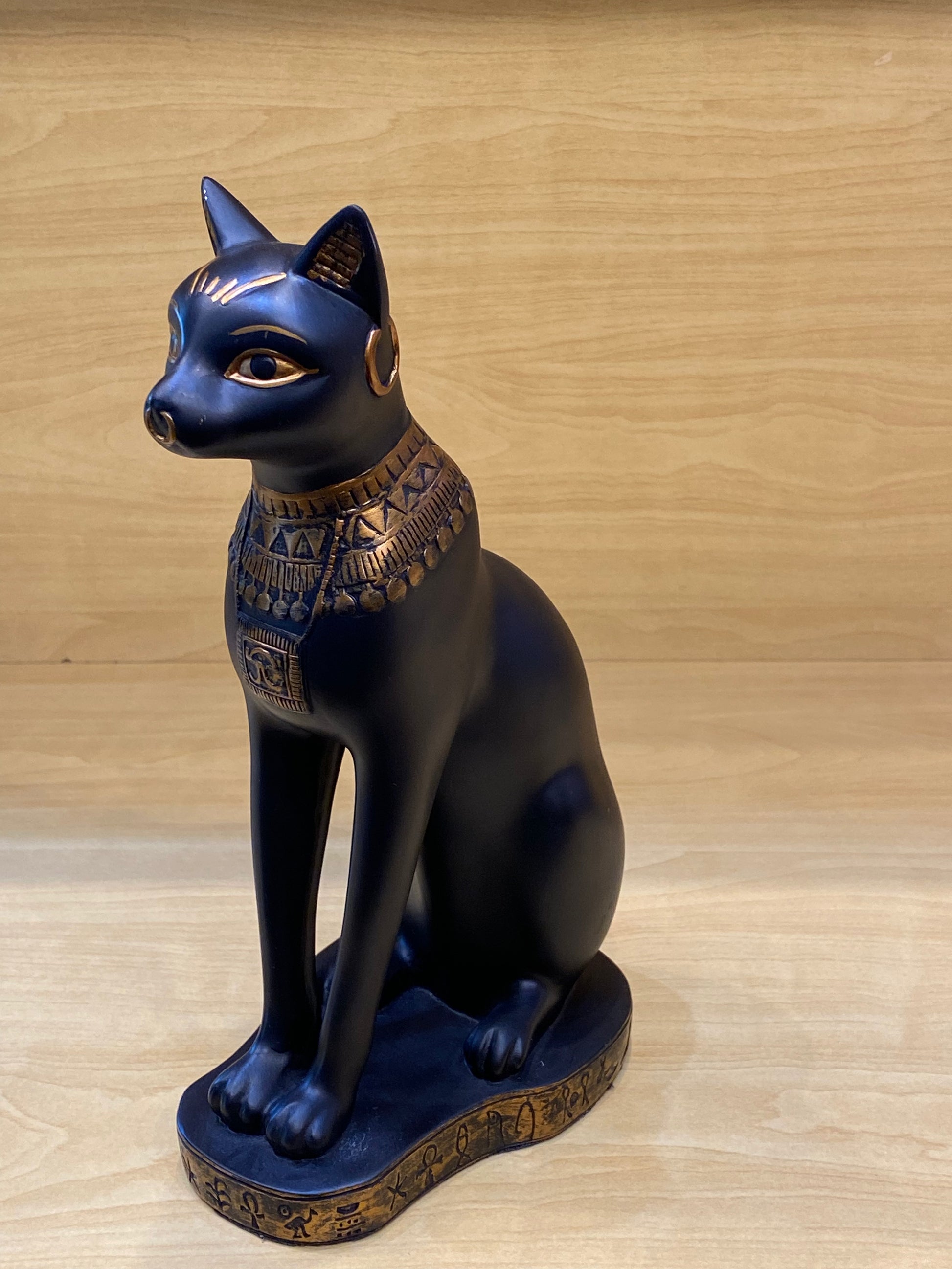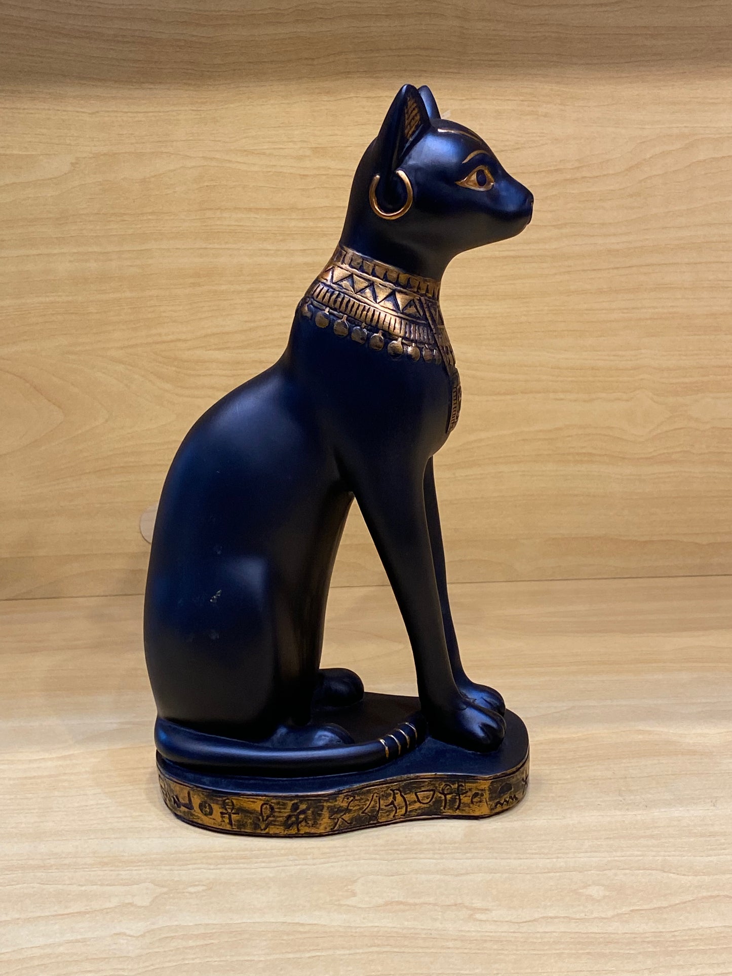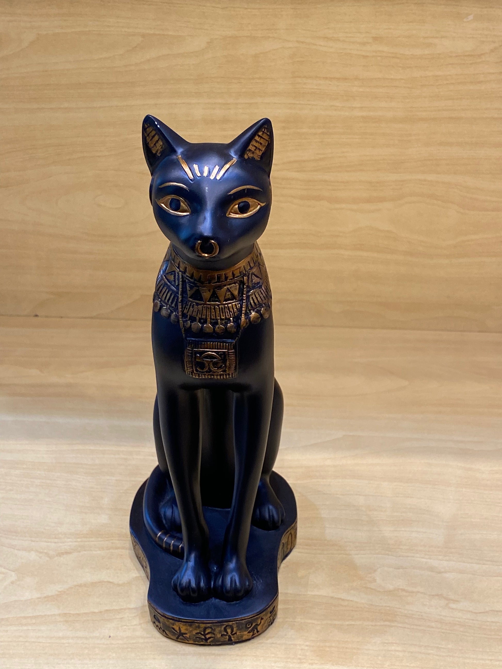 Cats were sacred to Bastet, a sun goddess who represents the warm, life giving power of the sun, shown here as a 9 inch statue.