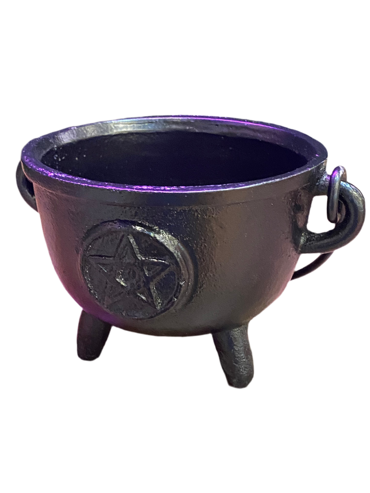 The Pentacle Cast Iron Cauldron is perfect for burning loose incense and resins on a charcoal disc, mixing herbs, creating potions, and preparing black salt. This Pentacle Cast Iron Cauldron measures 4” D x 4” H and features a pentagram a powerful five-pointed star symbol associated with protection and spiritual balance.