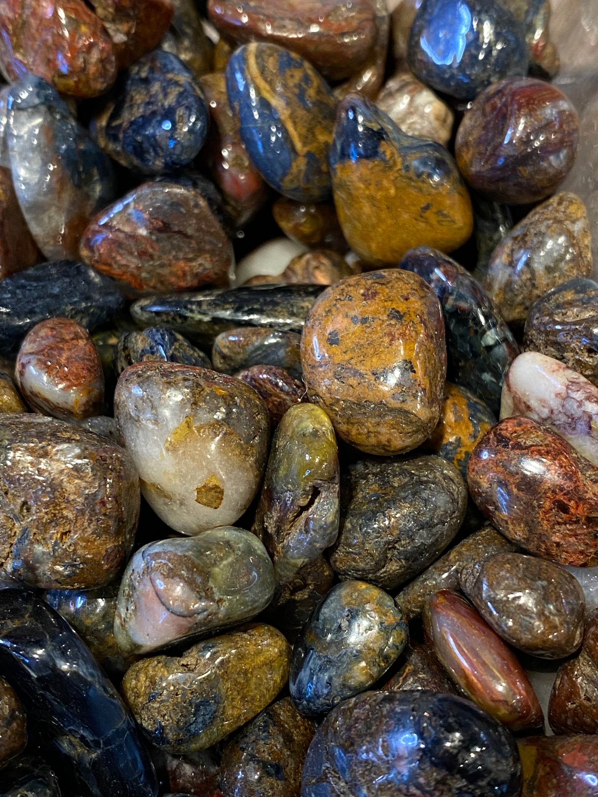 Named after its finder, Sid Pieters of South Africa, Pietersite is said to hold "the keys to the kingdom of heaven" and promotes "walking your truth." It reminds you that you are a spiritual being on a human journey and can be used for a vision quest or shamanic journey. During moving meditations or Tai Chi, it accesses a high state of altered awareness. Said to dispel the illusion of individual separateness, it removes conditioning imposed by other people. Linking you to inner guidance, it tests the veracity of other people's words. In past-life healing, Pietersite processes ancient conflicts and suppressed feelings and removes disease caused by not followings one's own truth. It releases you from vows and promises made in other lives that have carried over into the present.