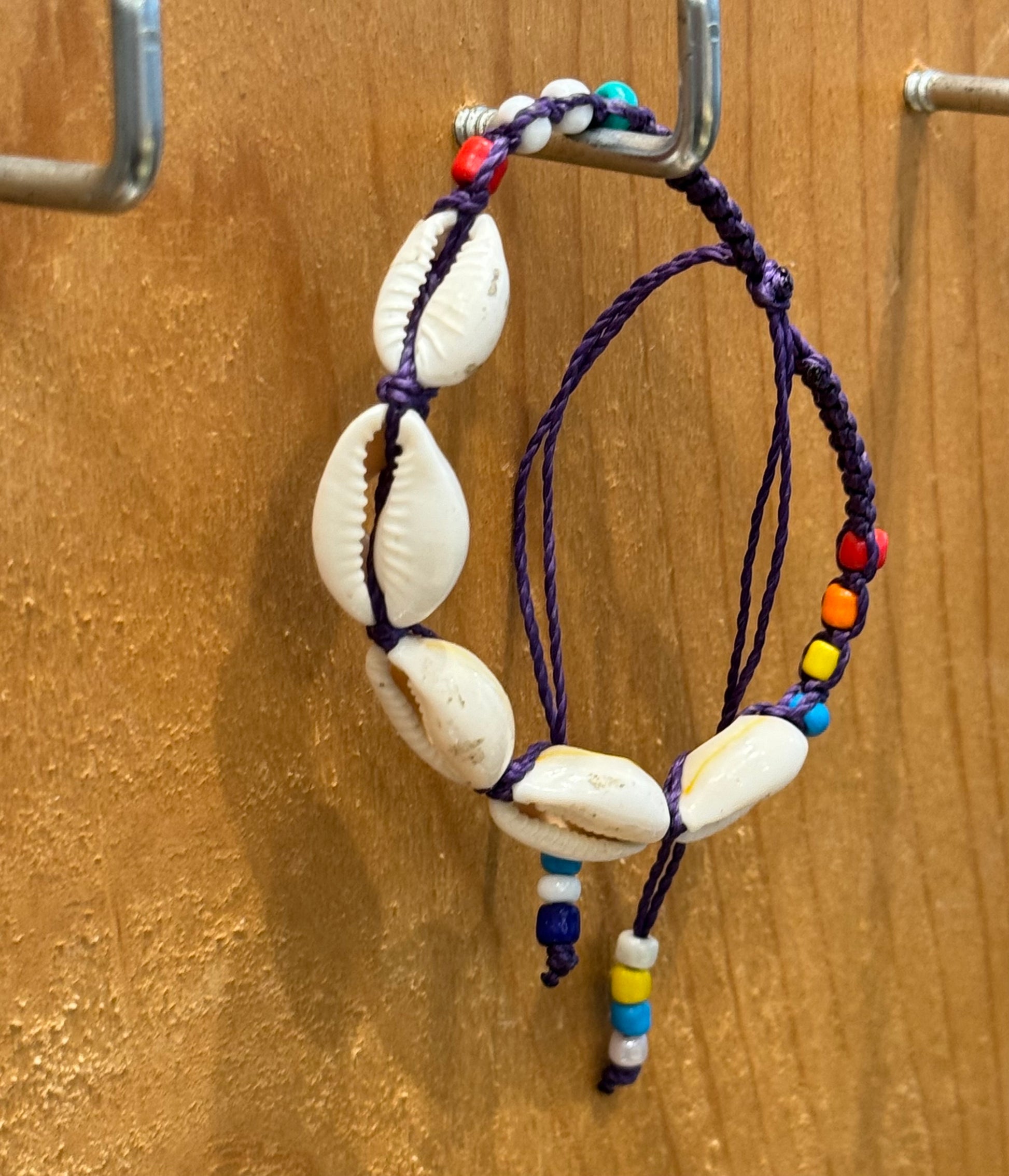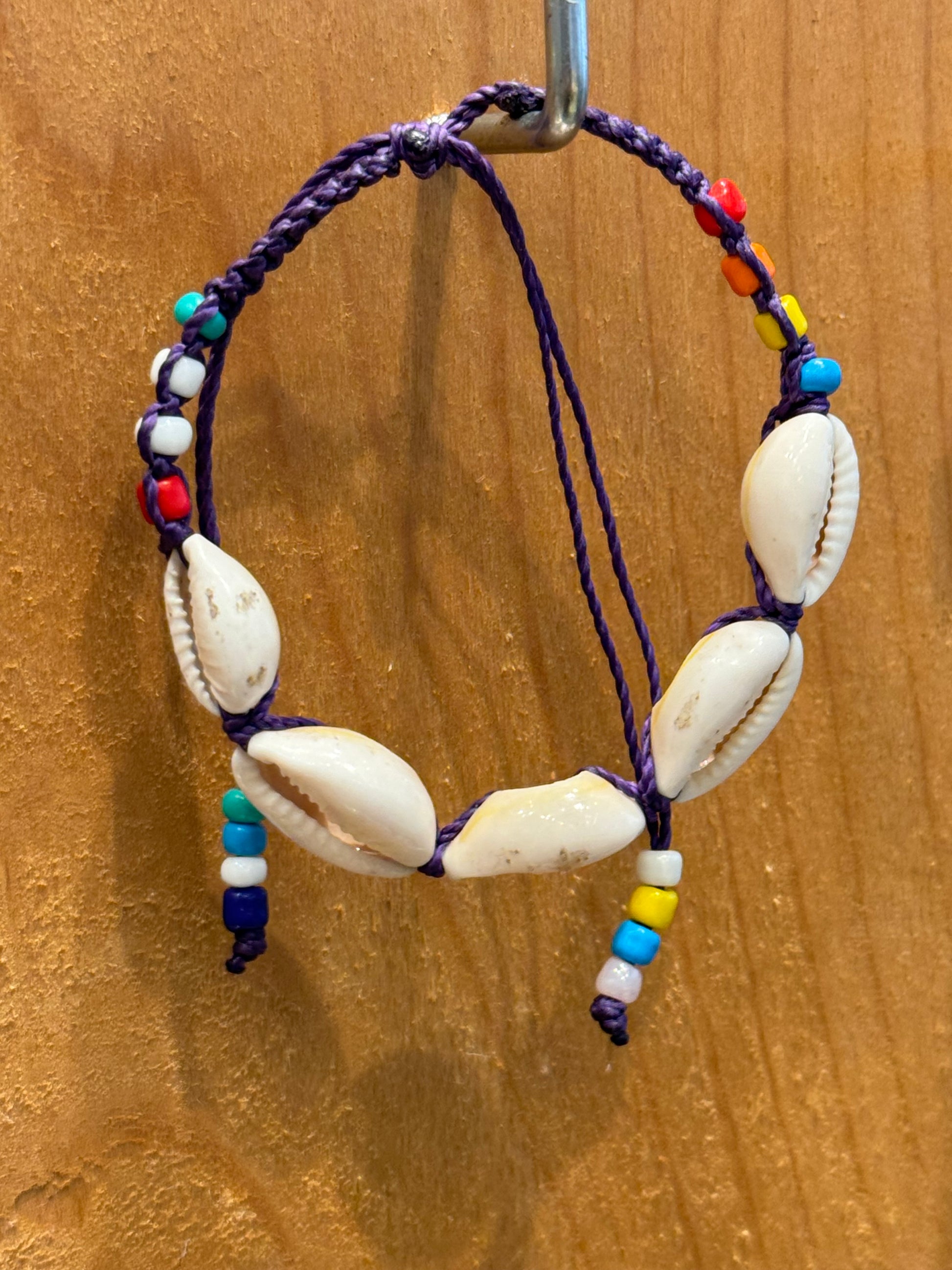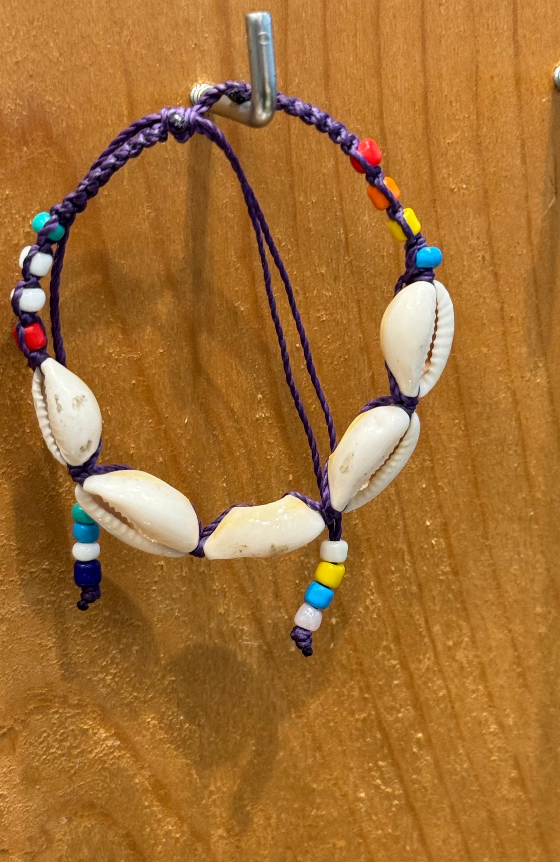 Handmade Purple String Bracelet With Cowrie Shells and Colorful Beads