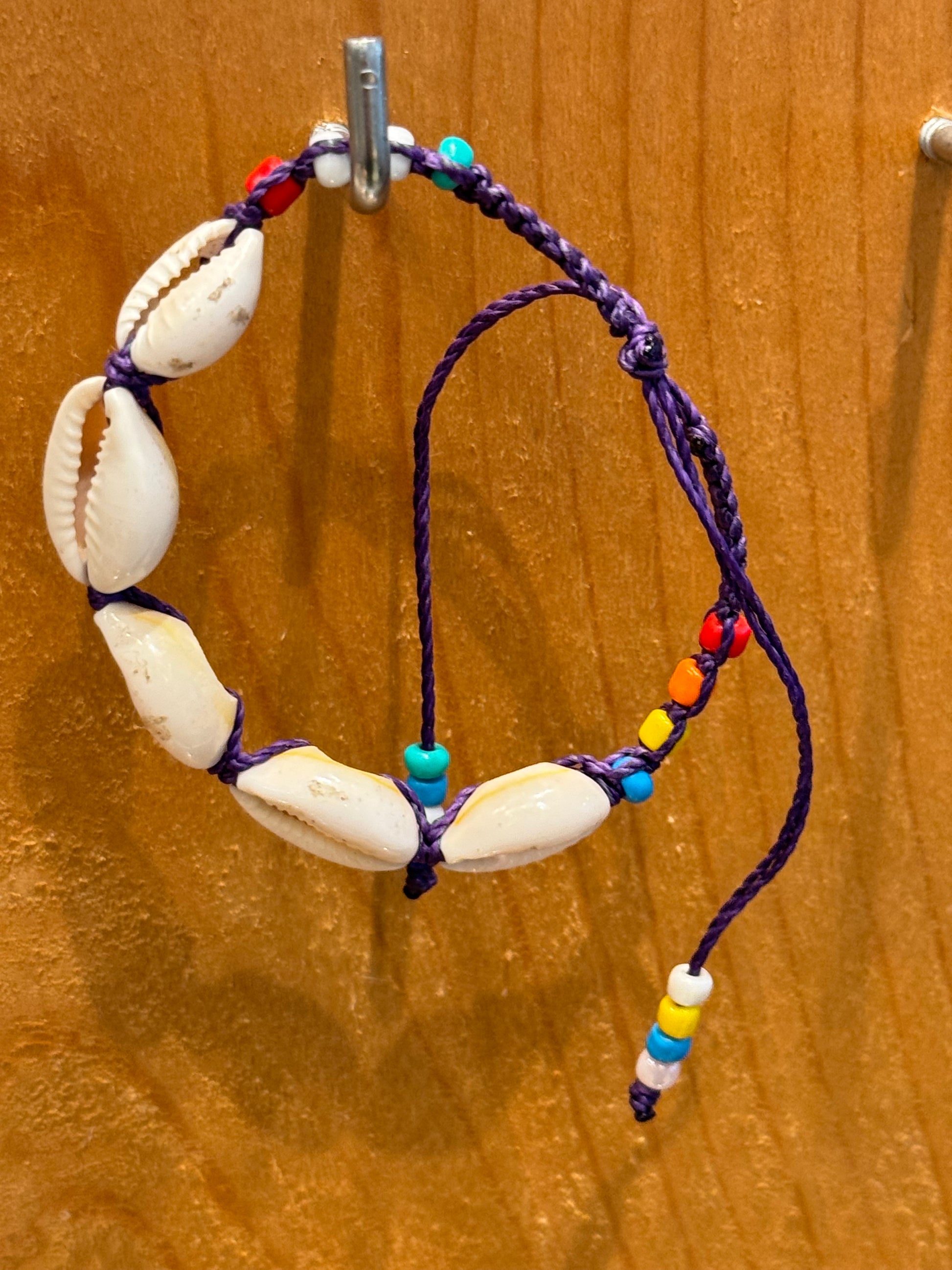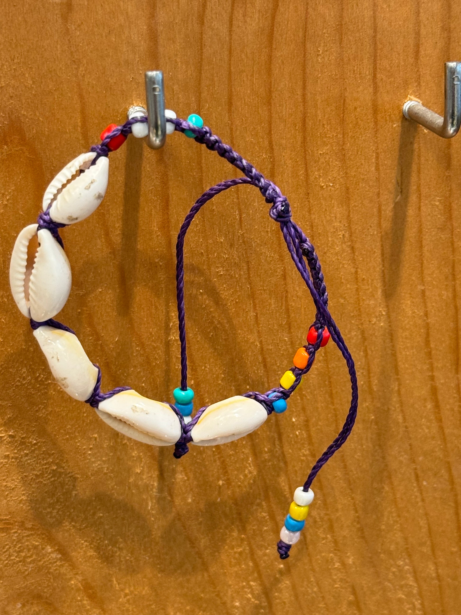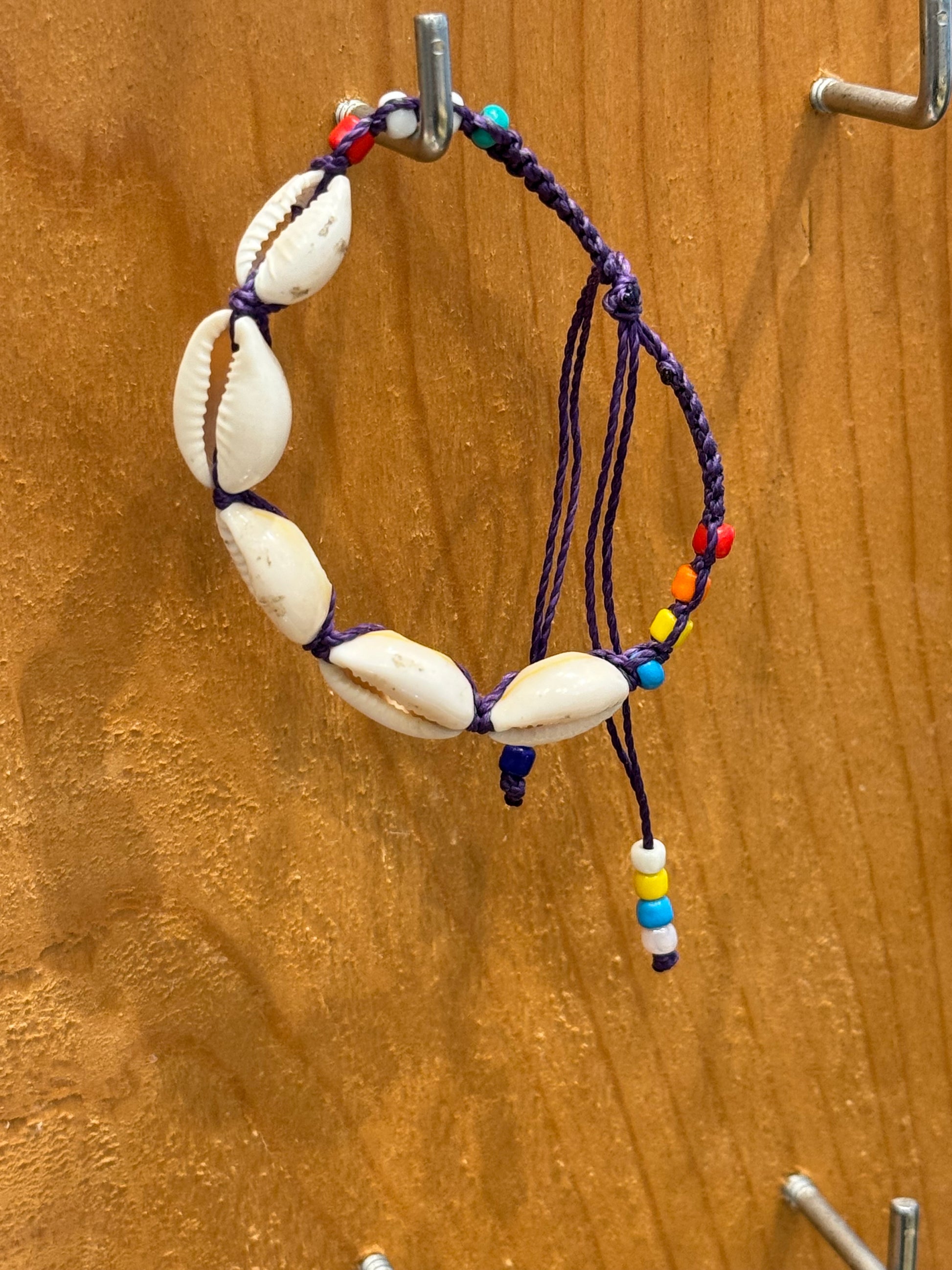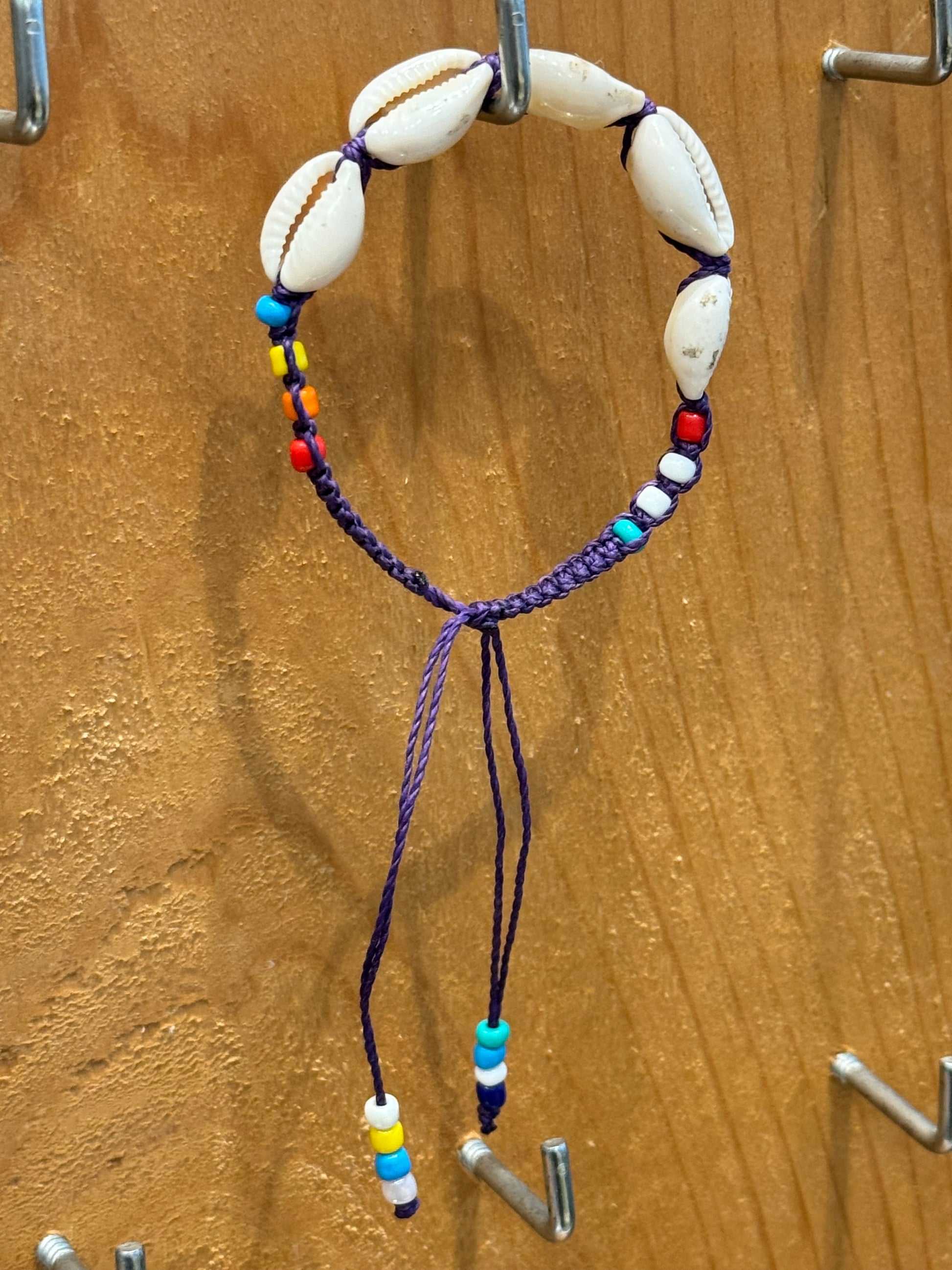 Handmade Purple String Bracelet With Cowrie Shells and Colorful Beads
