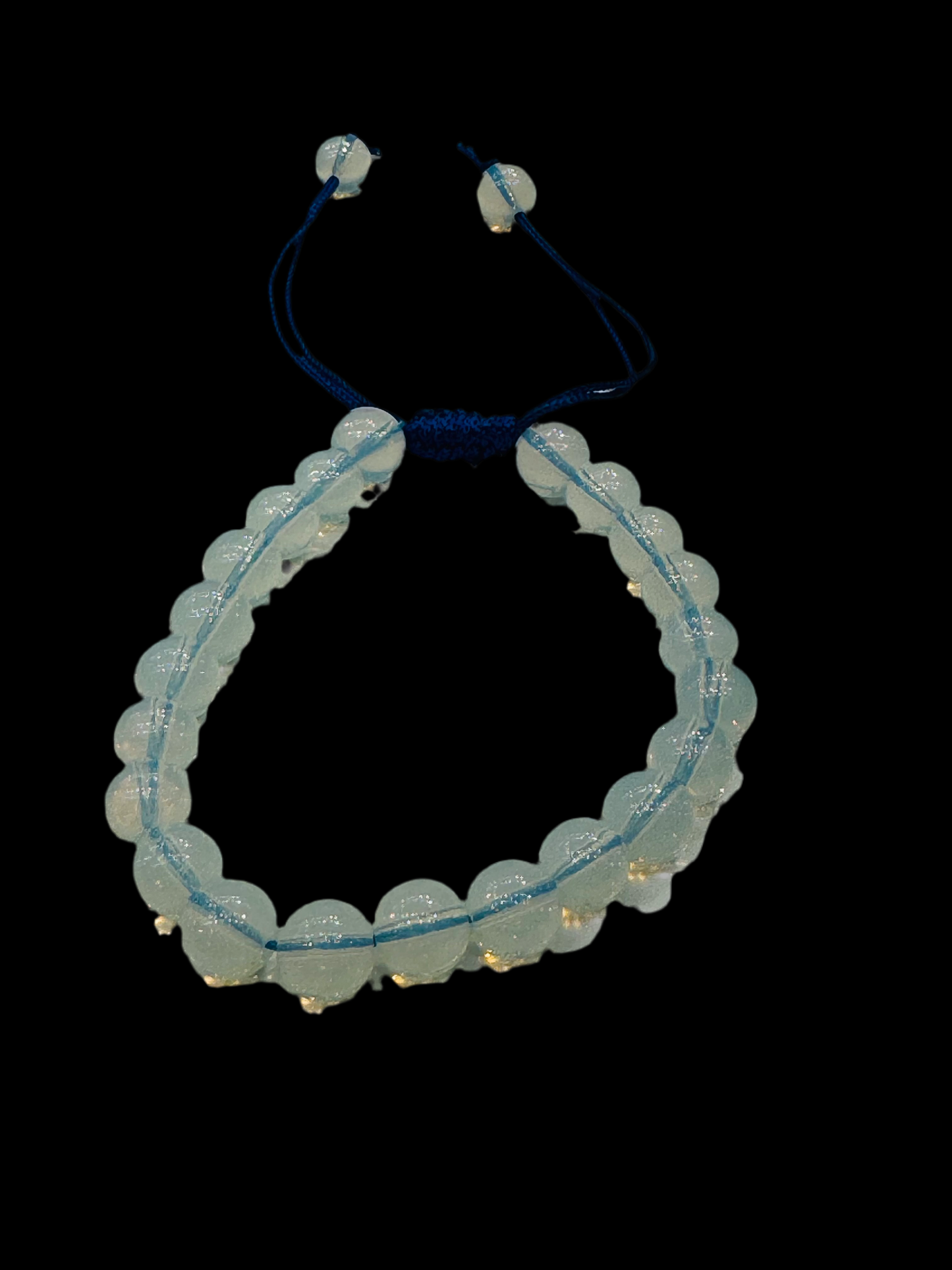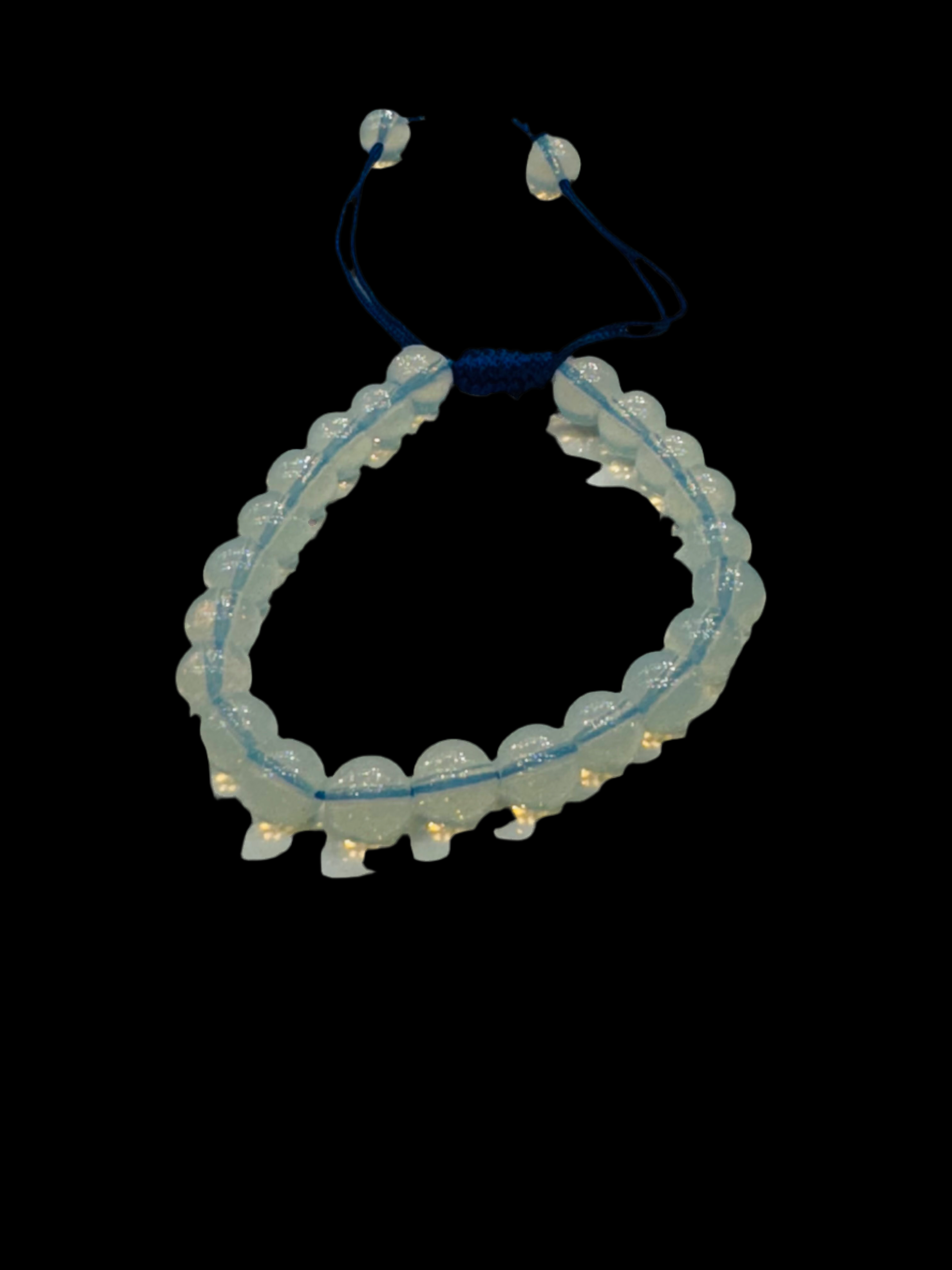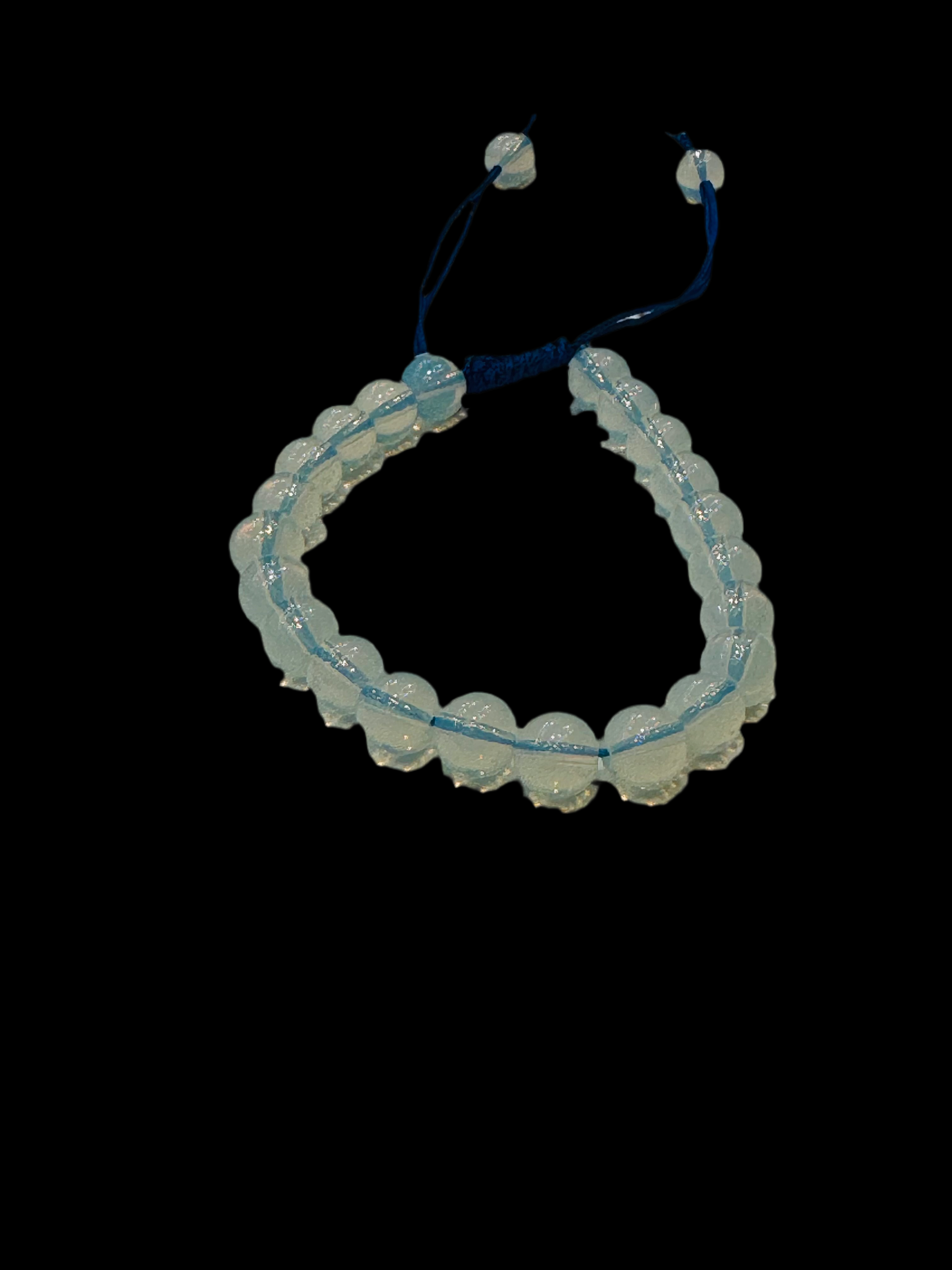 Opalite Blue Pull Tie Thread bracelet is a beautiful, sky blue stone that symbolizes clear thinking, new beginnings, and childlike glee.
