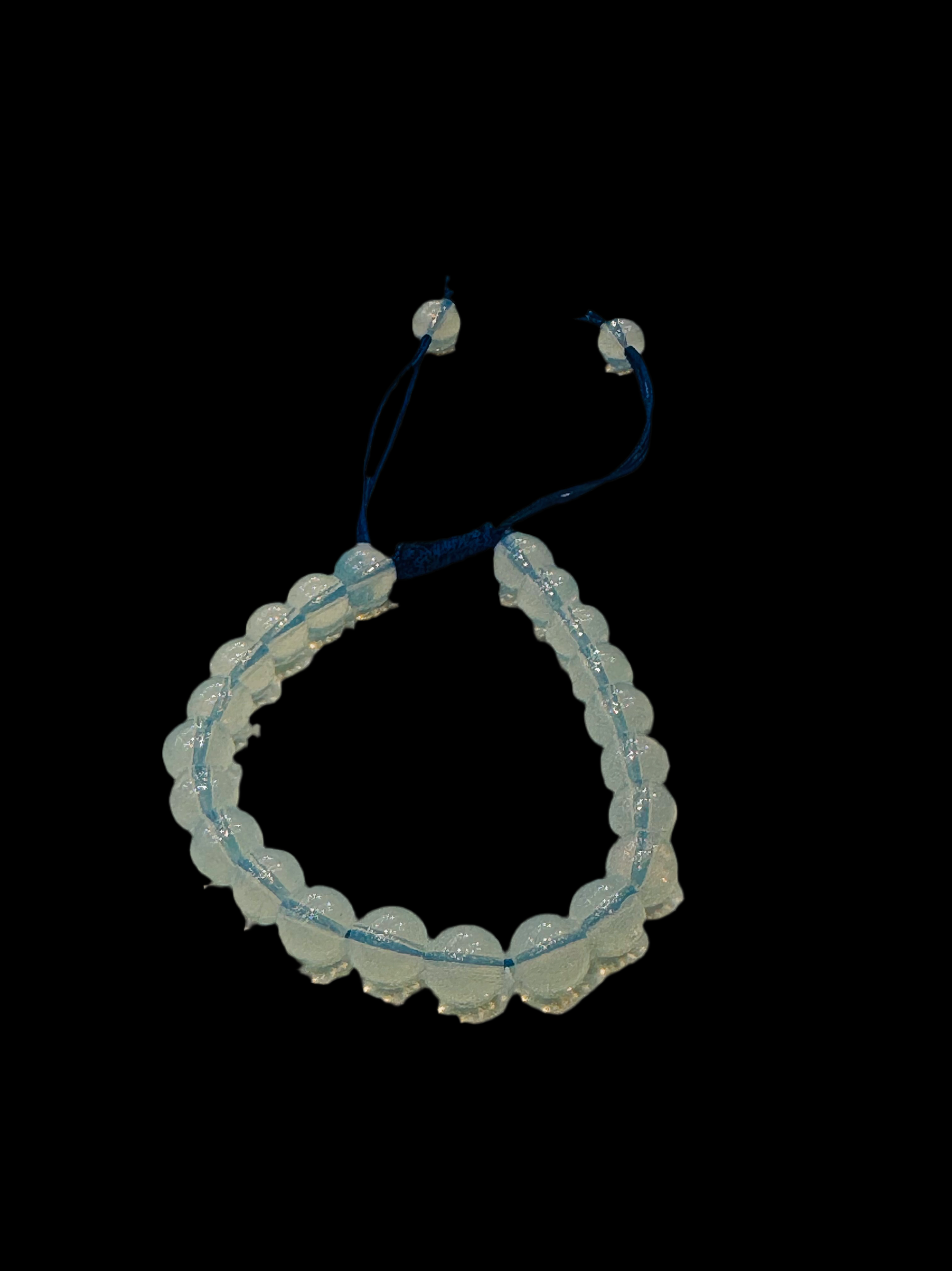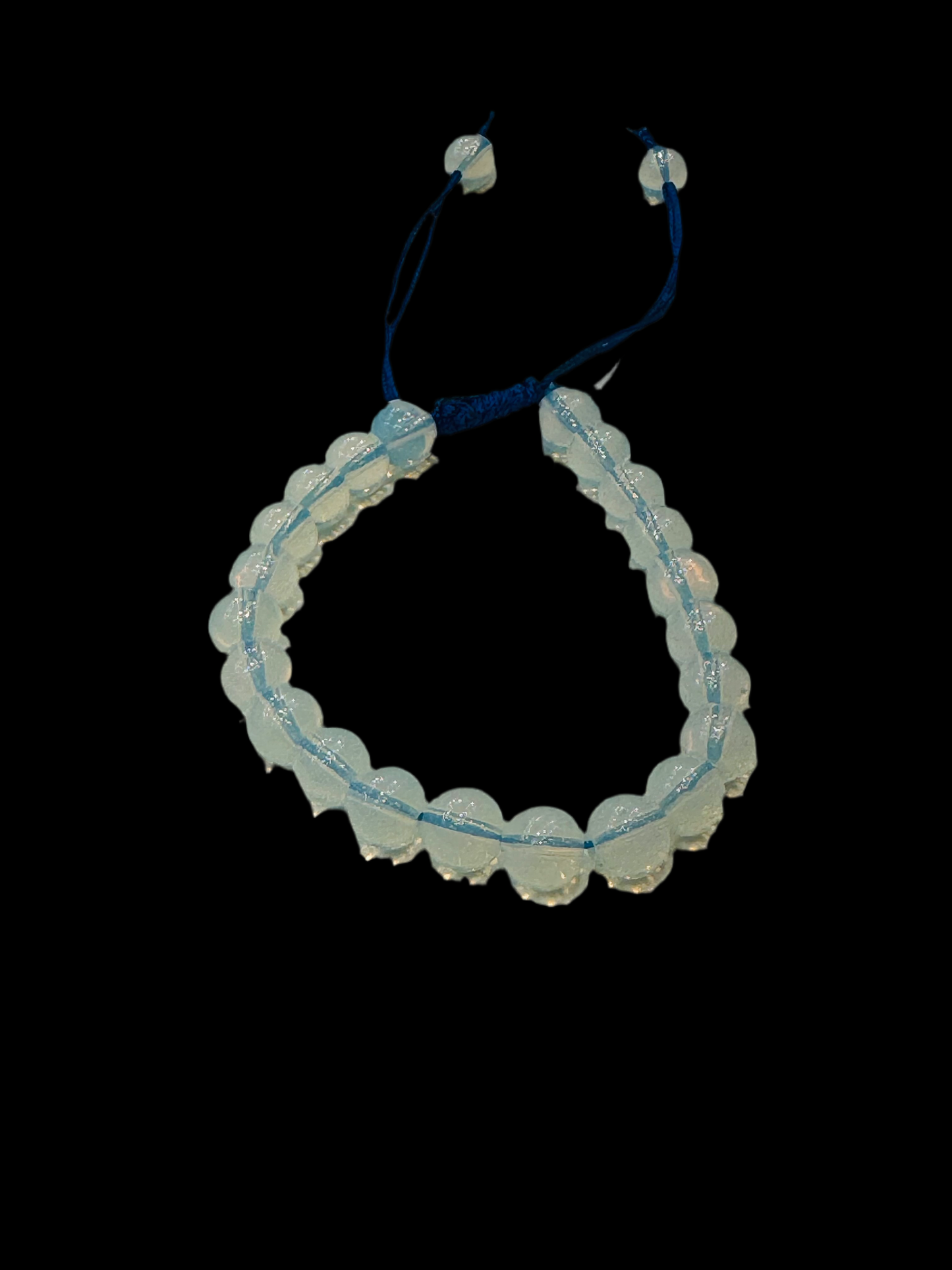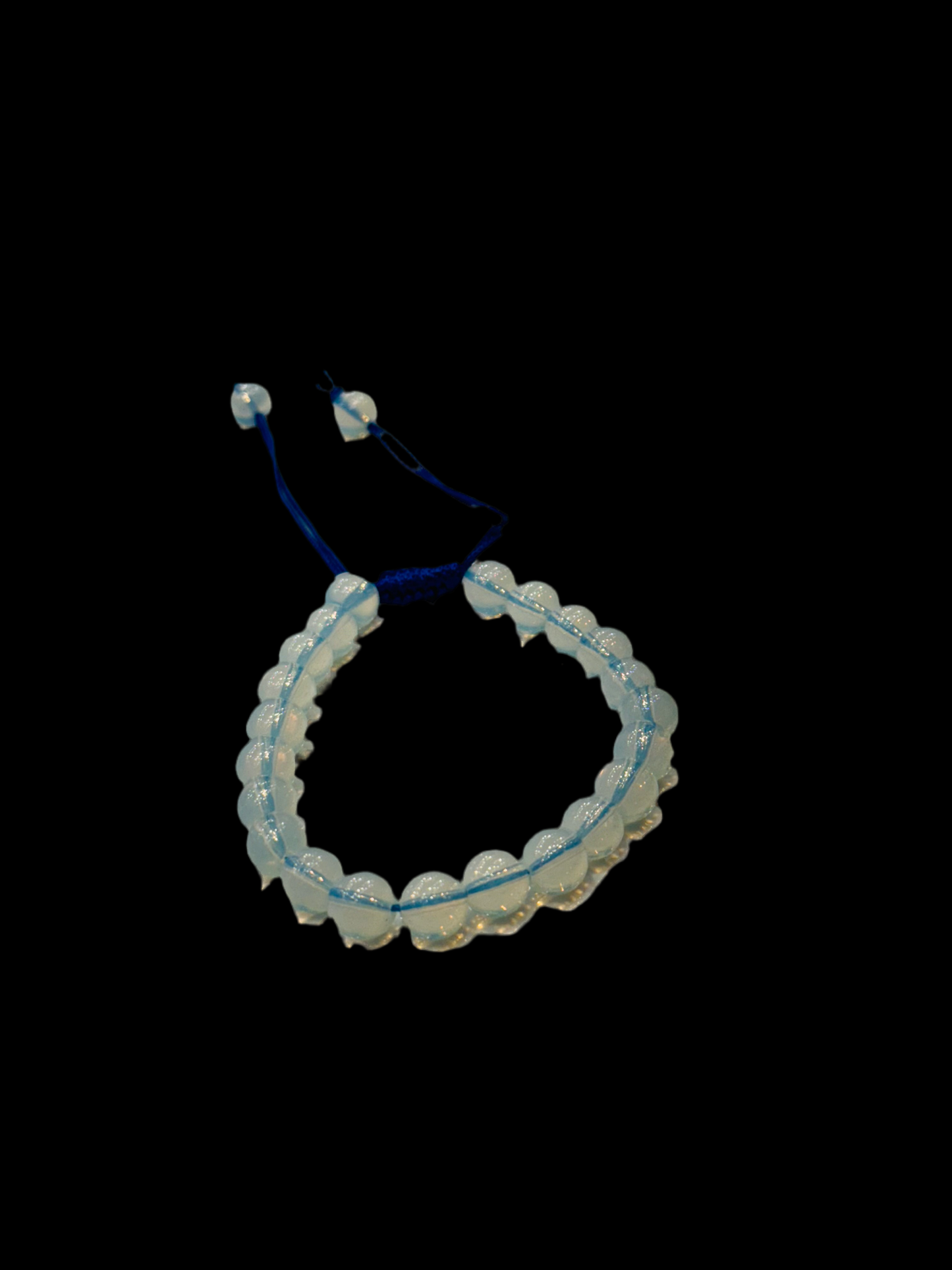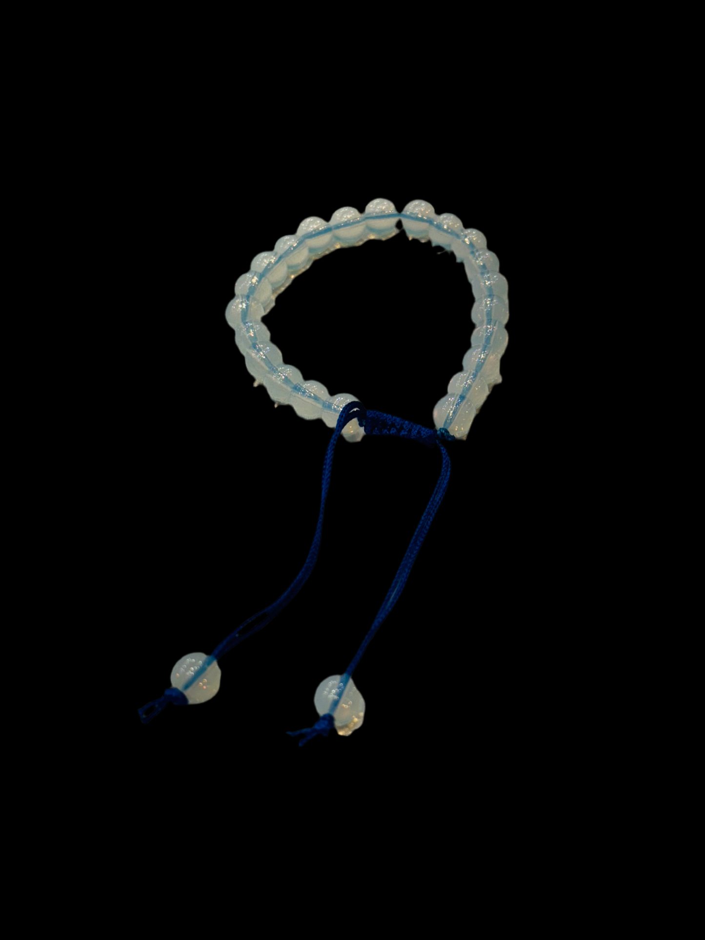 Opalite Blue Pull Tie Thread bracelet is a beautiful, sky blue stone that symbolizes clear thinking, new beginnings, and childlike glee.