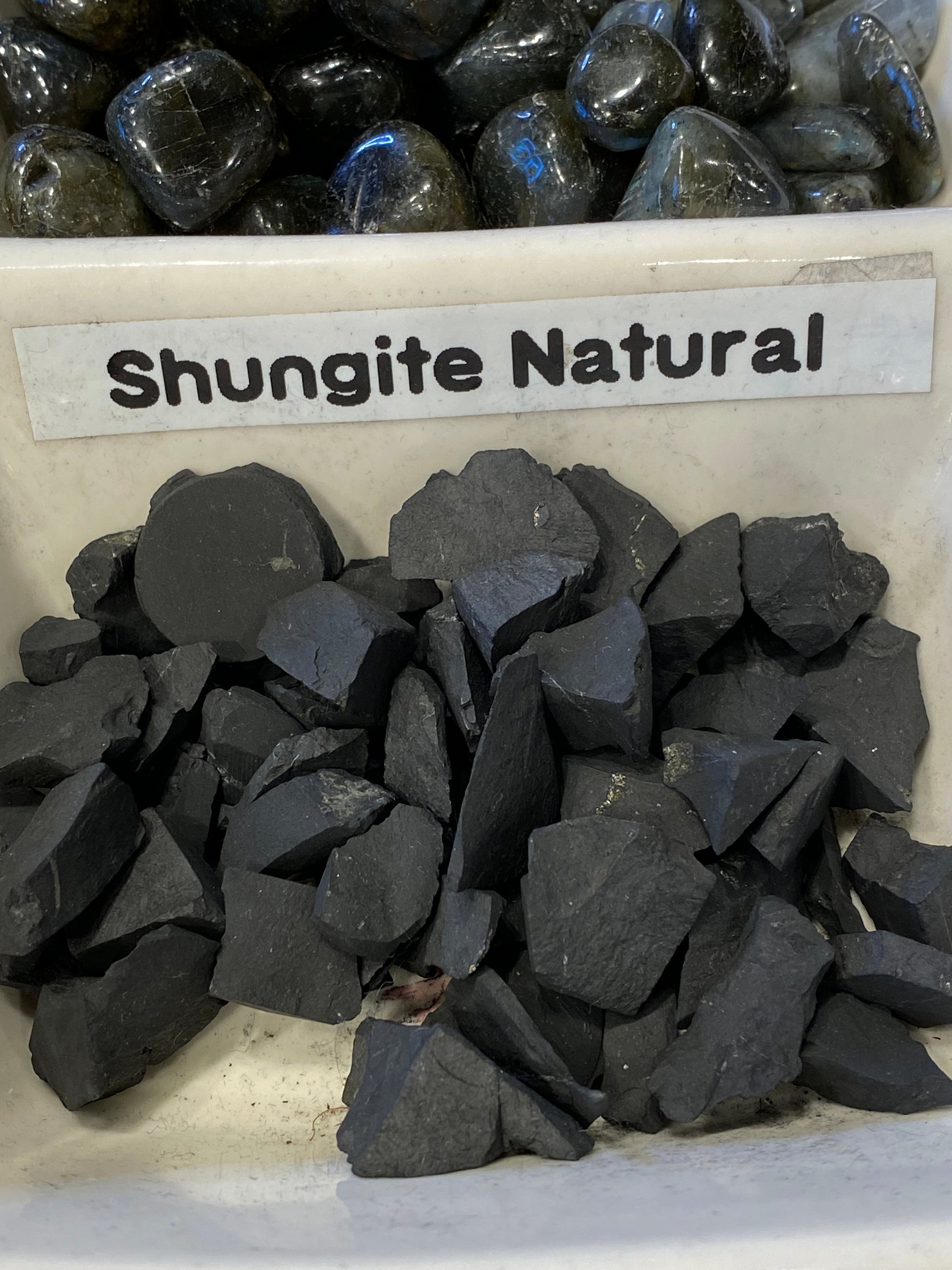 Shungite is a metallic-black or metallic-grey stone that is used to shield and protect against EMF electromagnetic radiation which is found in cell phones, computers, microwaves and televisions.