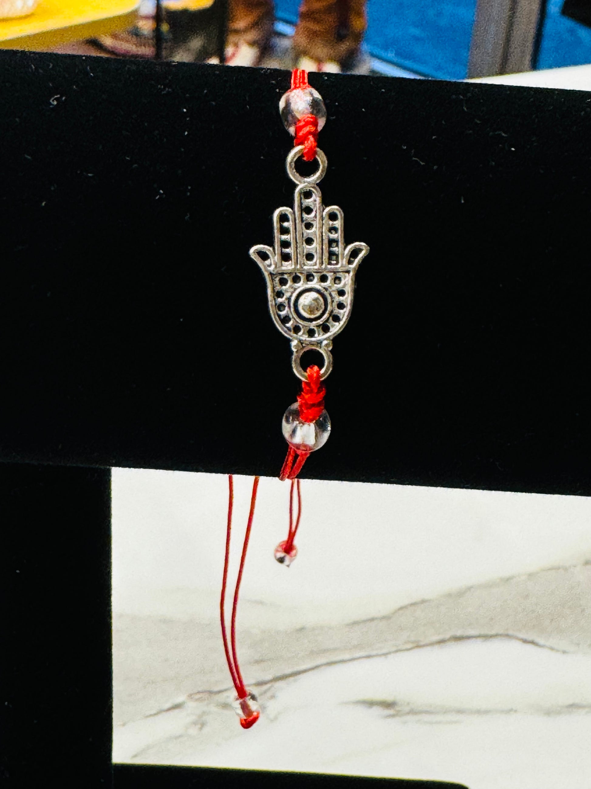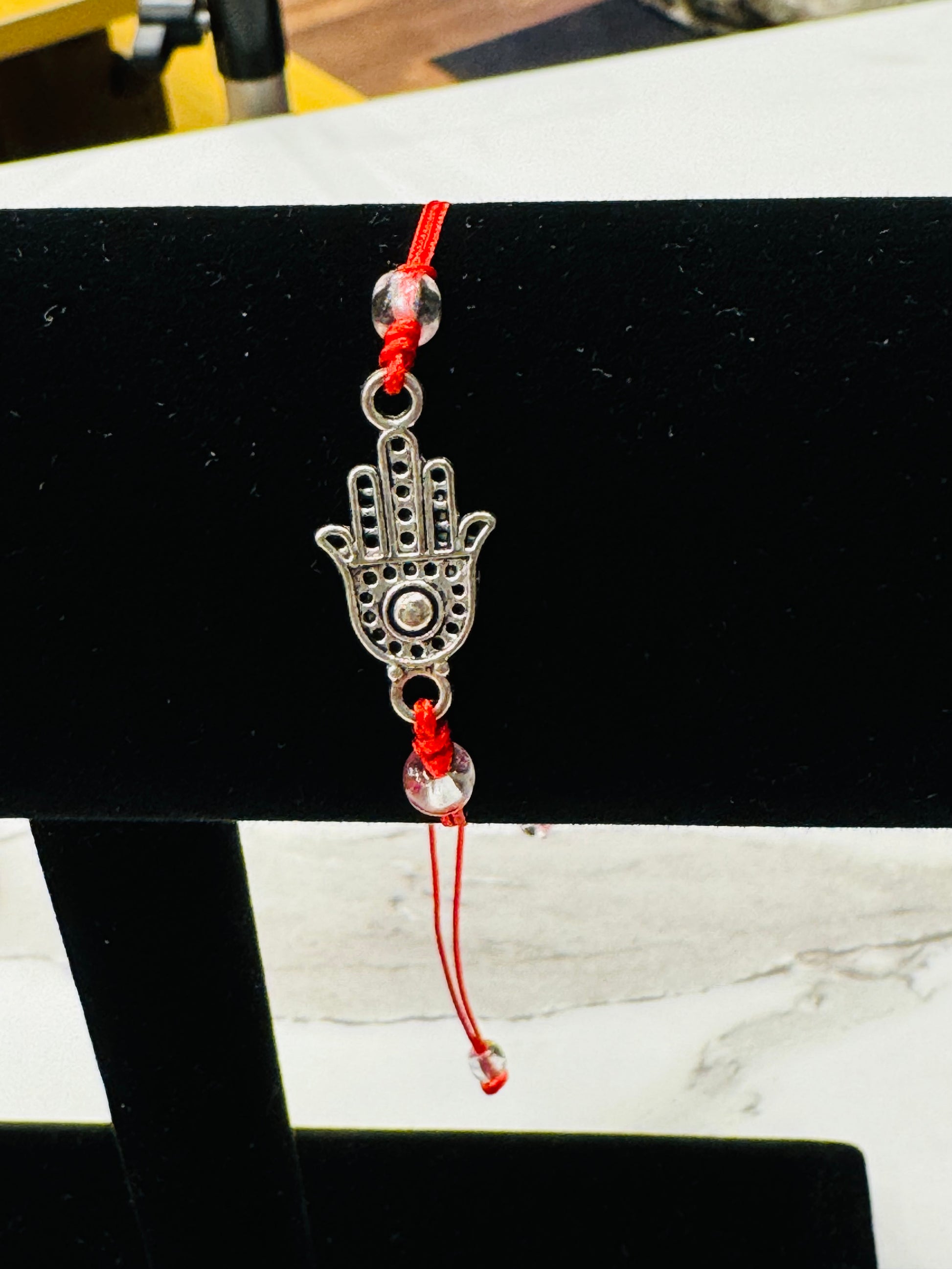 The Red String Bracelet with Silver Beads and Hamsa is a powerful symbol of protection, good fortune, and spiritual guidance. The red string is traditionally known to ward off negative energy and bring the wearer protection, while the silver beads add a touch of elegance and amplify the bracelet's protective qualities. The Hamsa charm, an ancient symbol featuring an open hand, is believed to provide defense against the evil eye and bring blessings, strength, and peace. Together, these elements create a meaningful piece that serves as both a stylish accessory and a protective talisman, offering the wearer a sense of security and positivity.