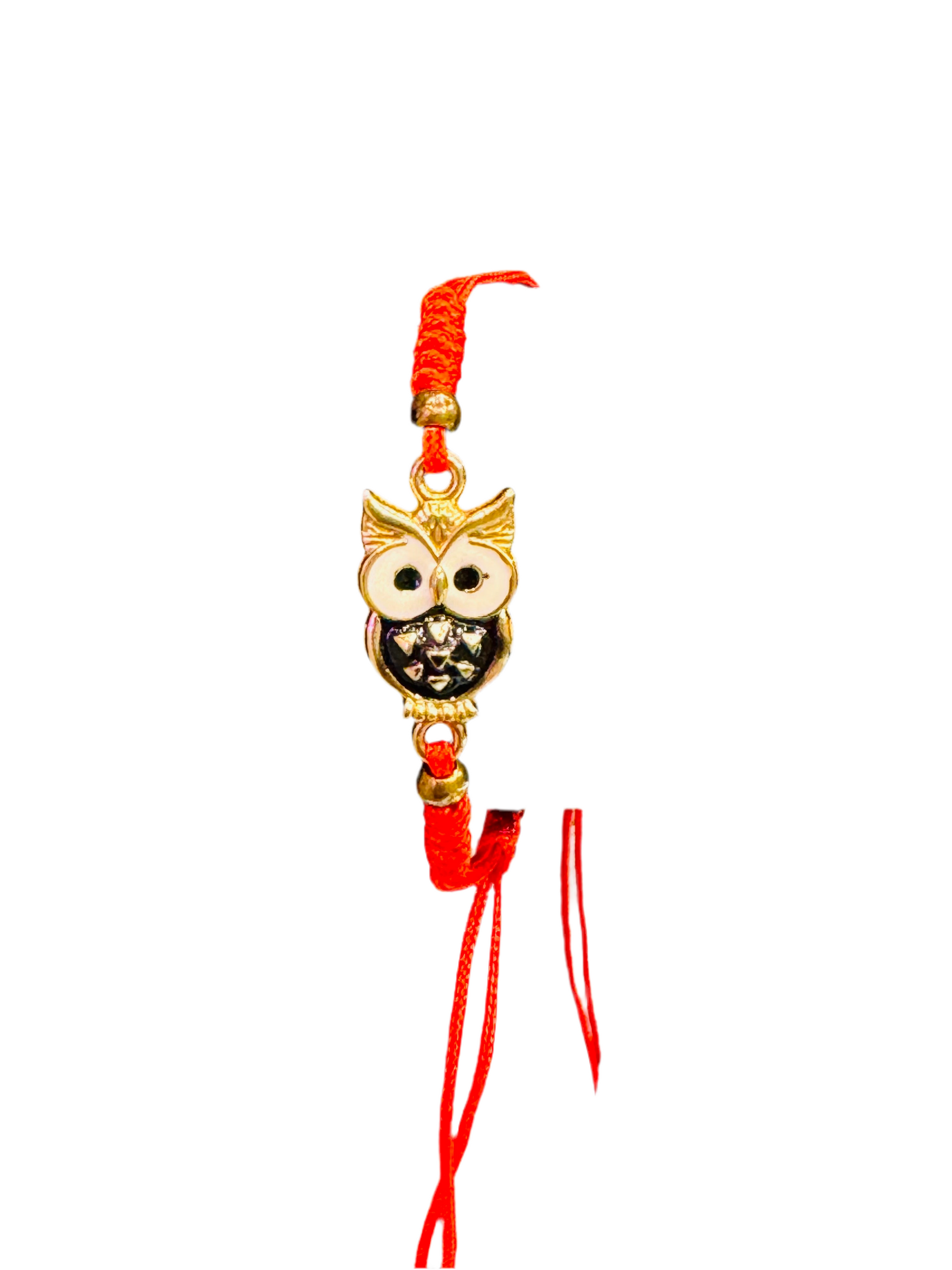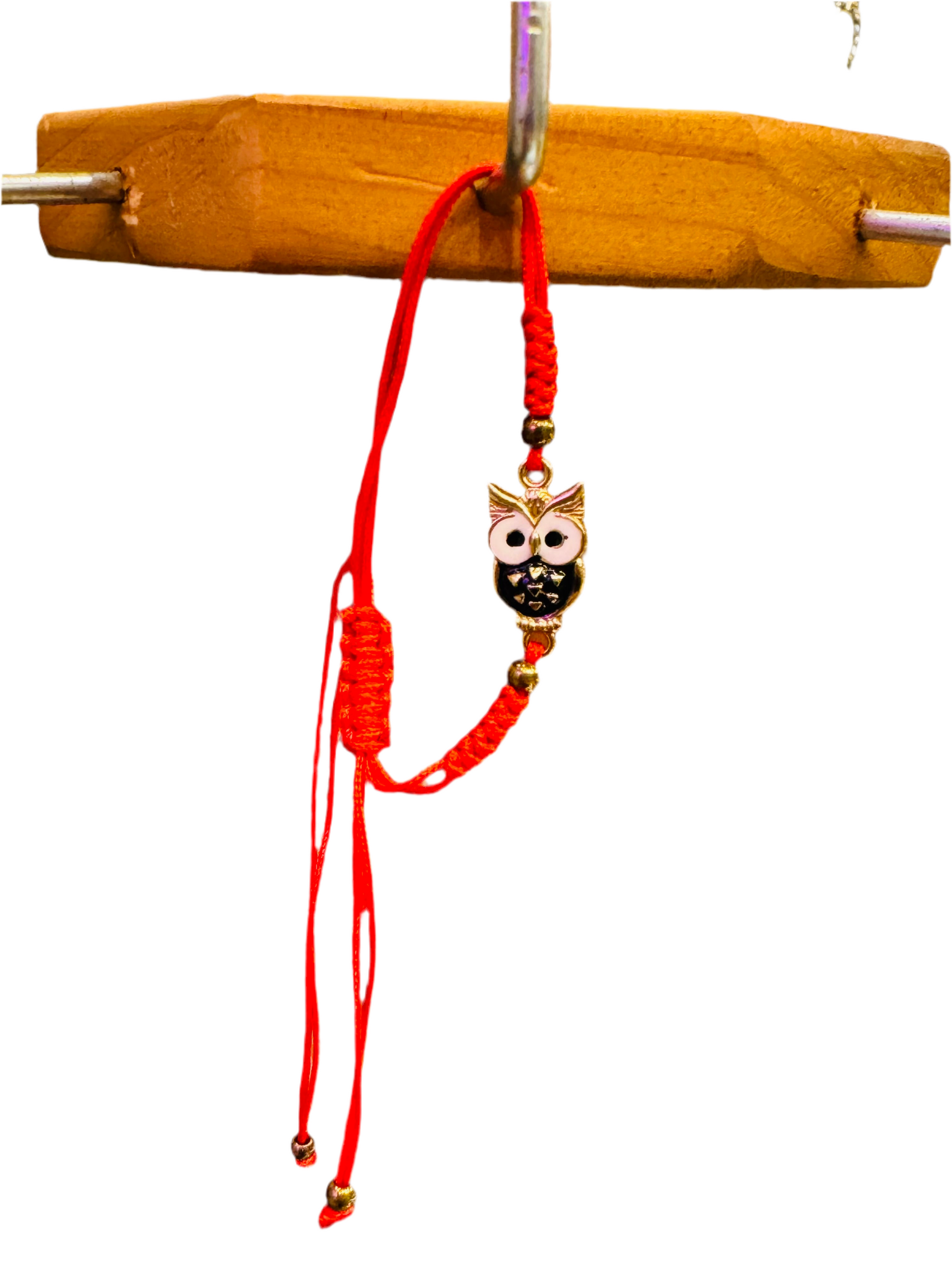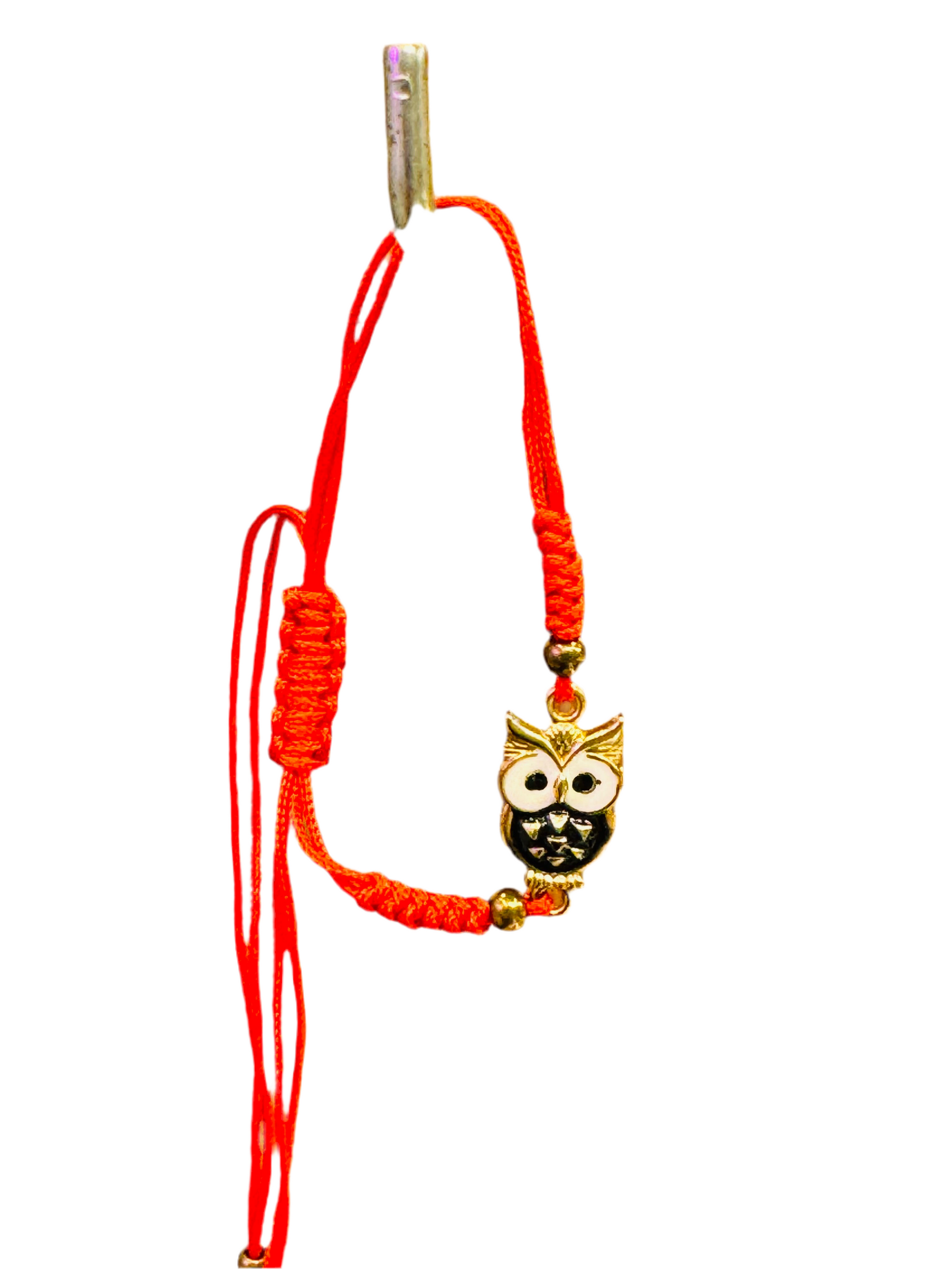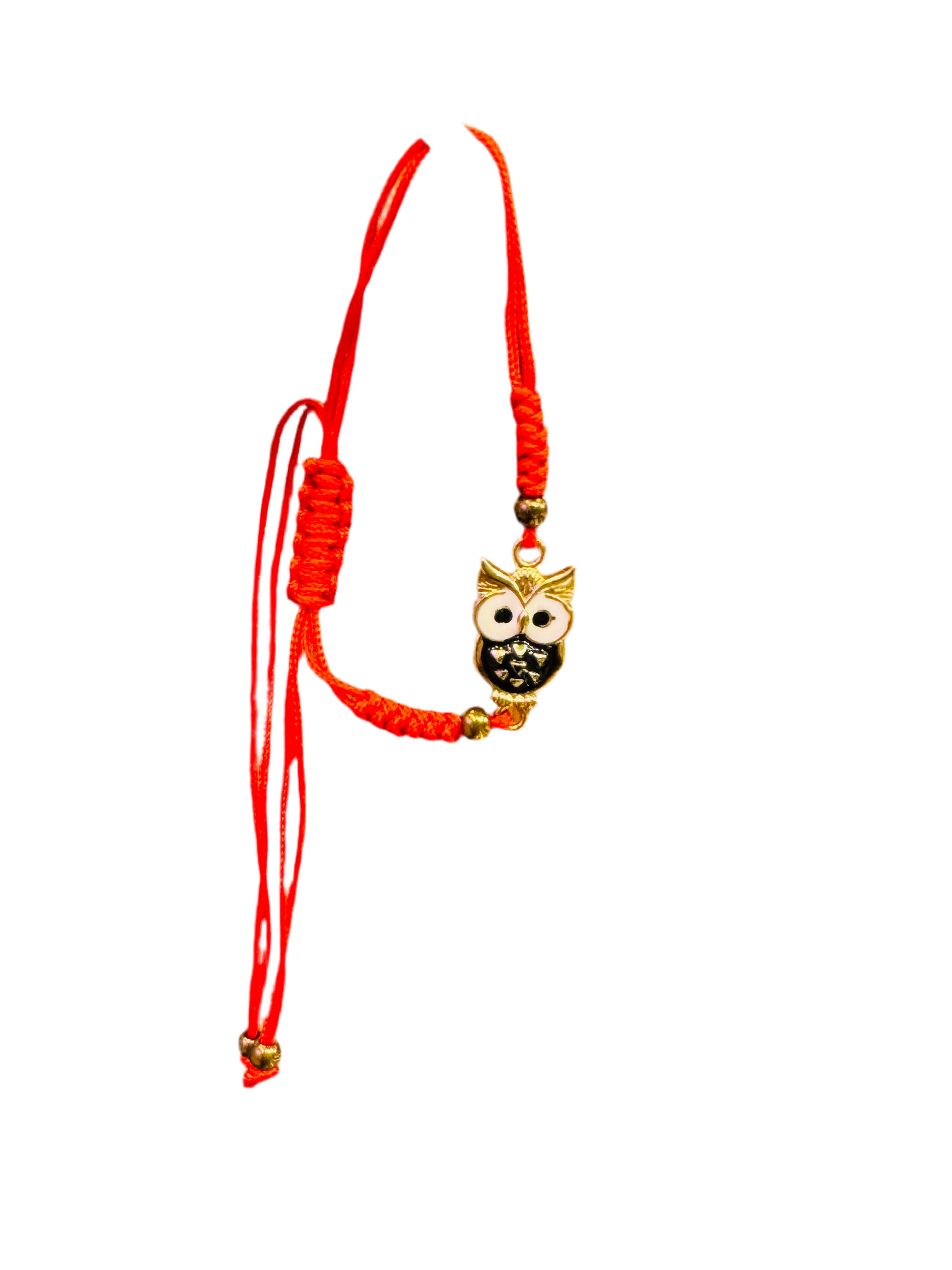 Red String Pull Tie Adjustable Bracelet With Owl Charm