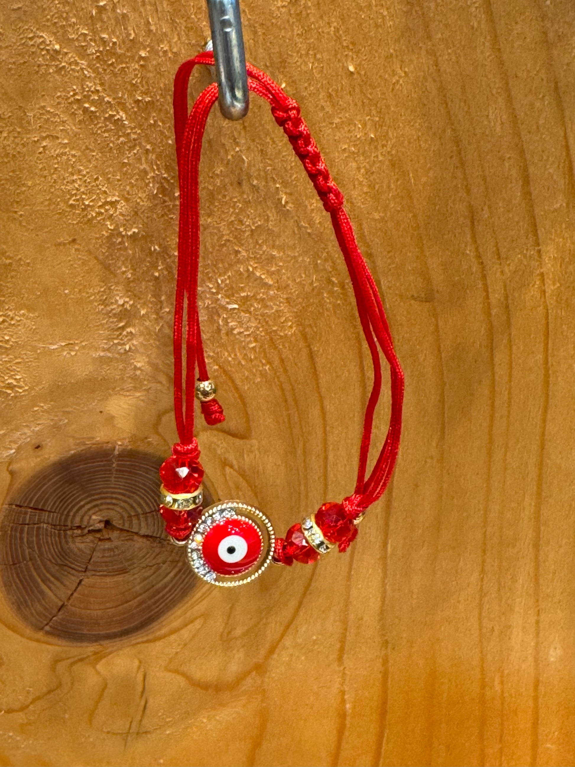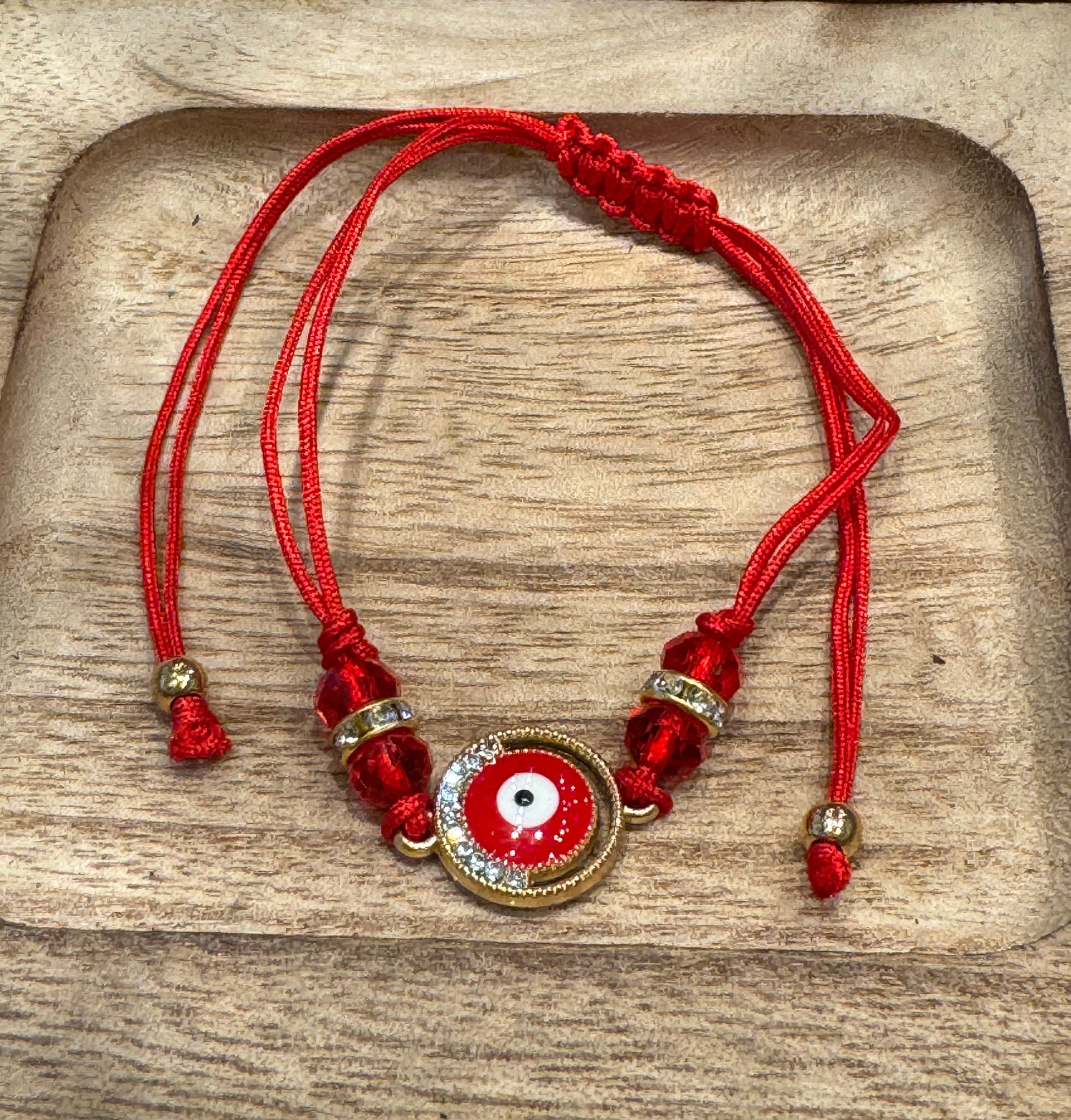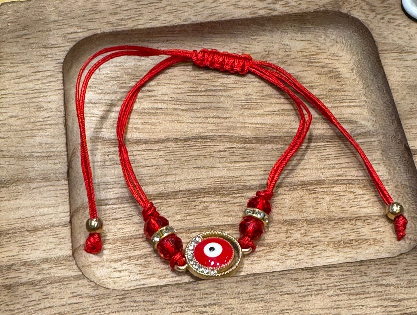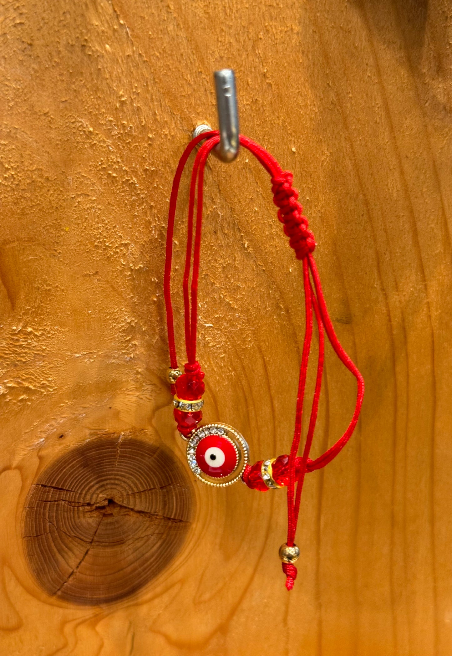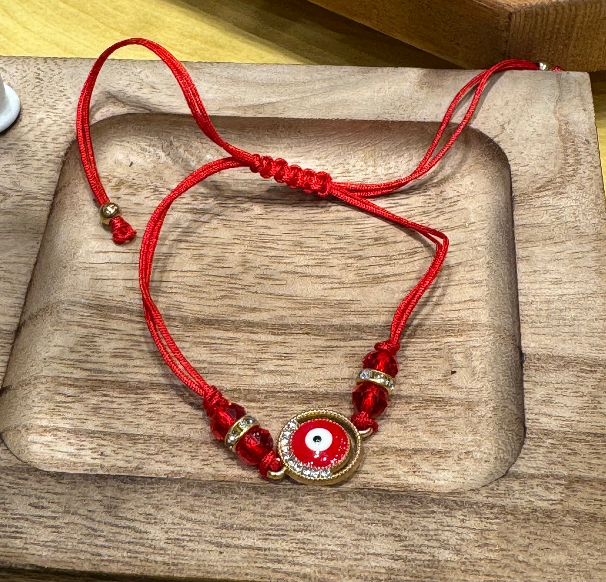 Red String Pull Tie Bracelet Red Evil Eye Charm and Beads