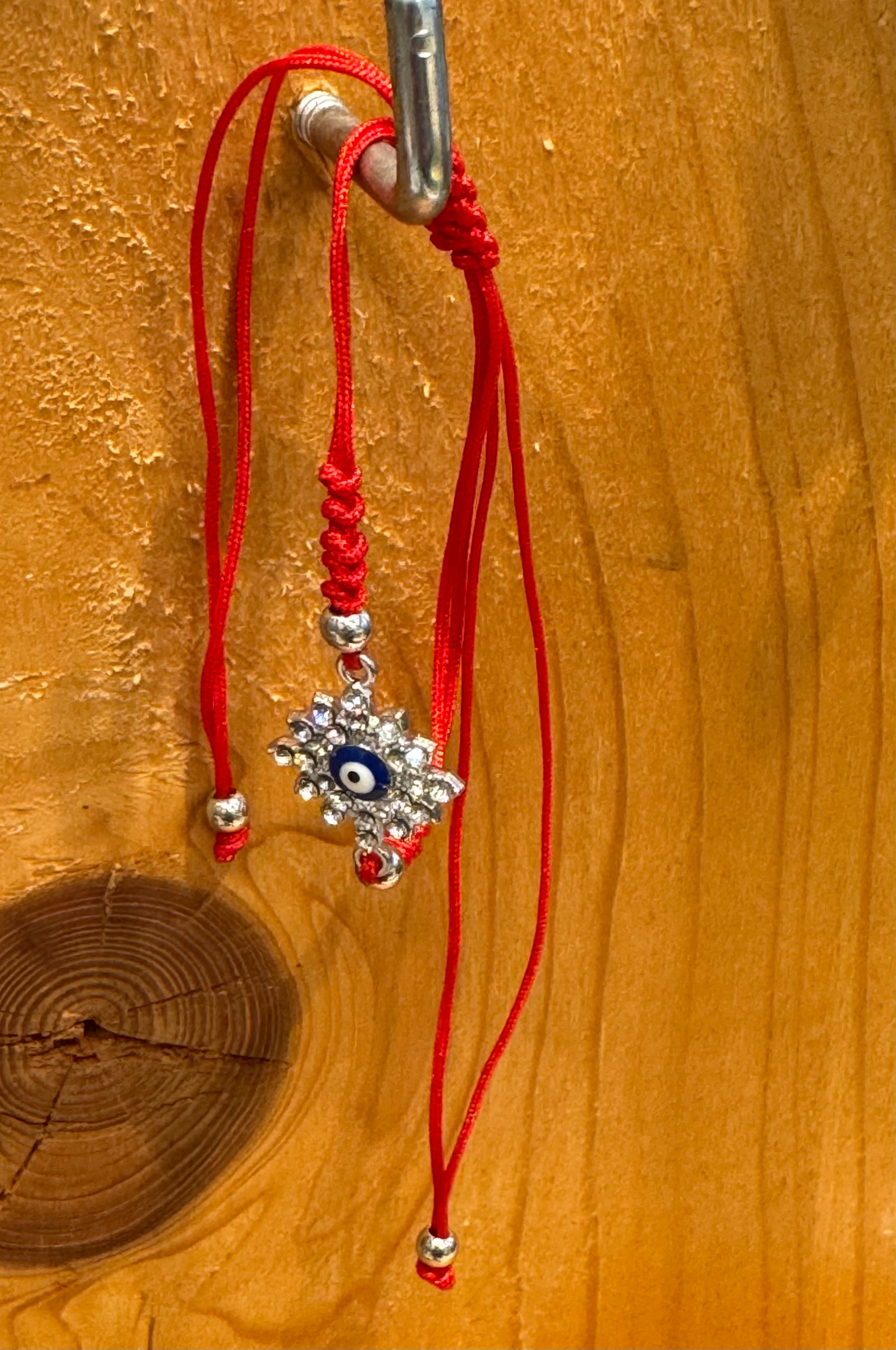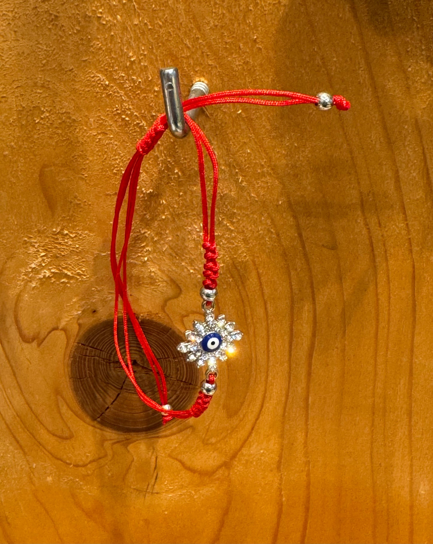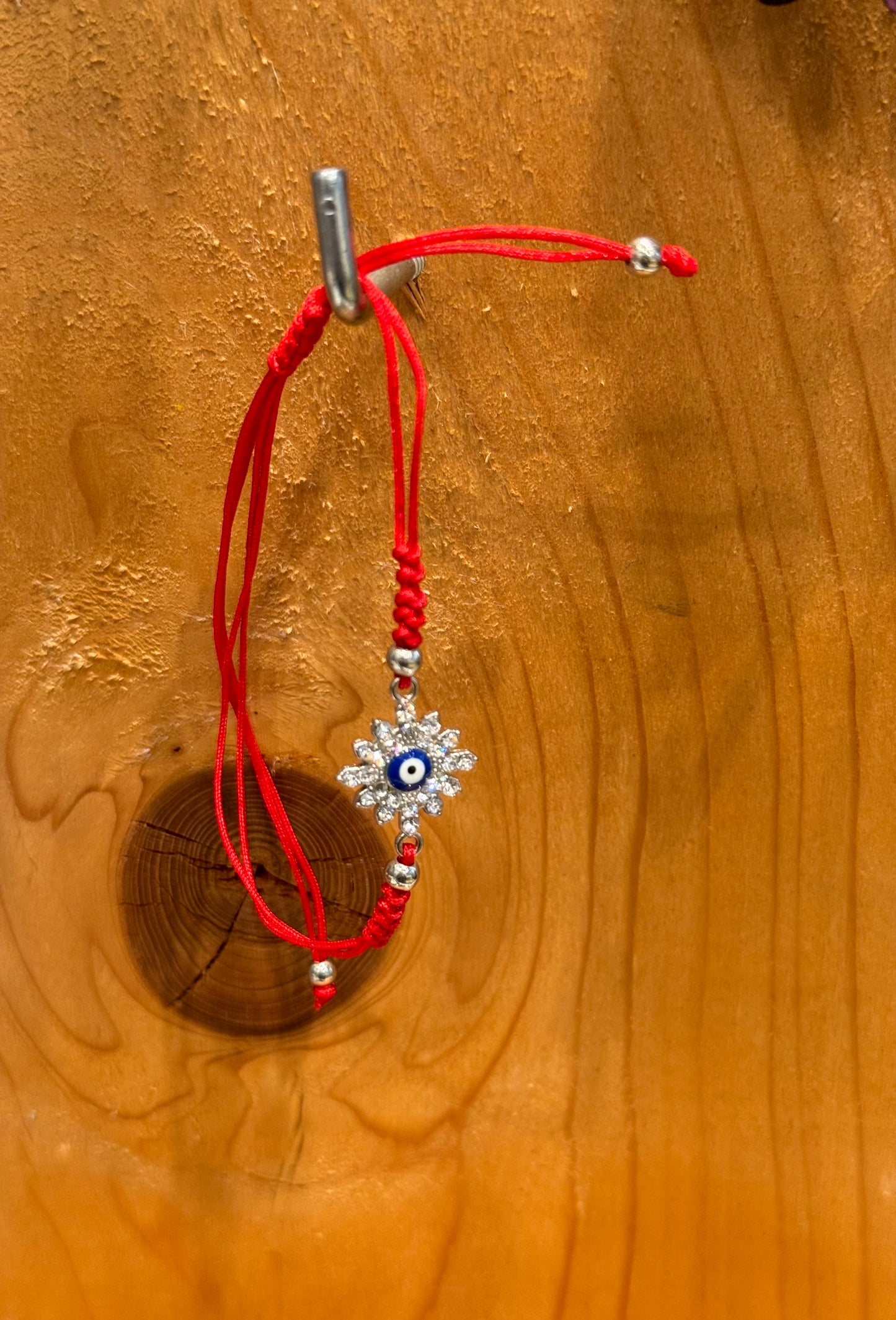 Red String Bracelet Silver Flower Blue Evil Eye Charm