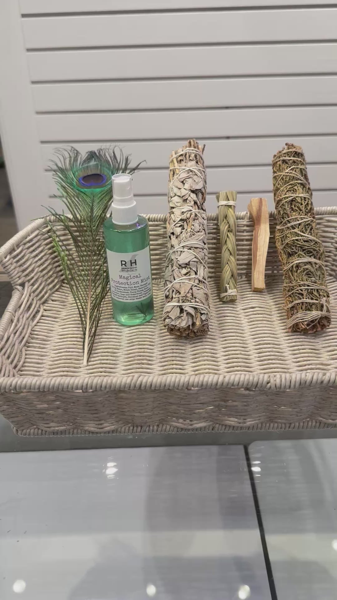 Elevate your sacred rituals with our Sacred Smudge & Ritual Kit. Designed for spiritual practitioners of all levels, this set offers powerful tools to create a deep connection to your inner self. It features a White Sage 12” Wand for large-scale purification, a Palo Santo Stick known for uplifting the spirit with its soothing aroma, a Sweetgrass Incense Braid to attract blessings,a Juniper 9” Smudge Stick for protection and clearing stagnant energy. an Raven’s Hearth Magical Protection Mist to enhance your experience, this kit also includes a free Peacock Feather for setting powerful intentions during your rituals.