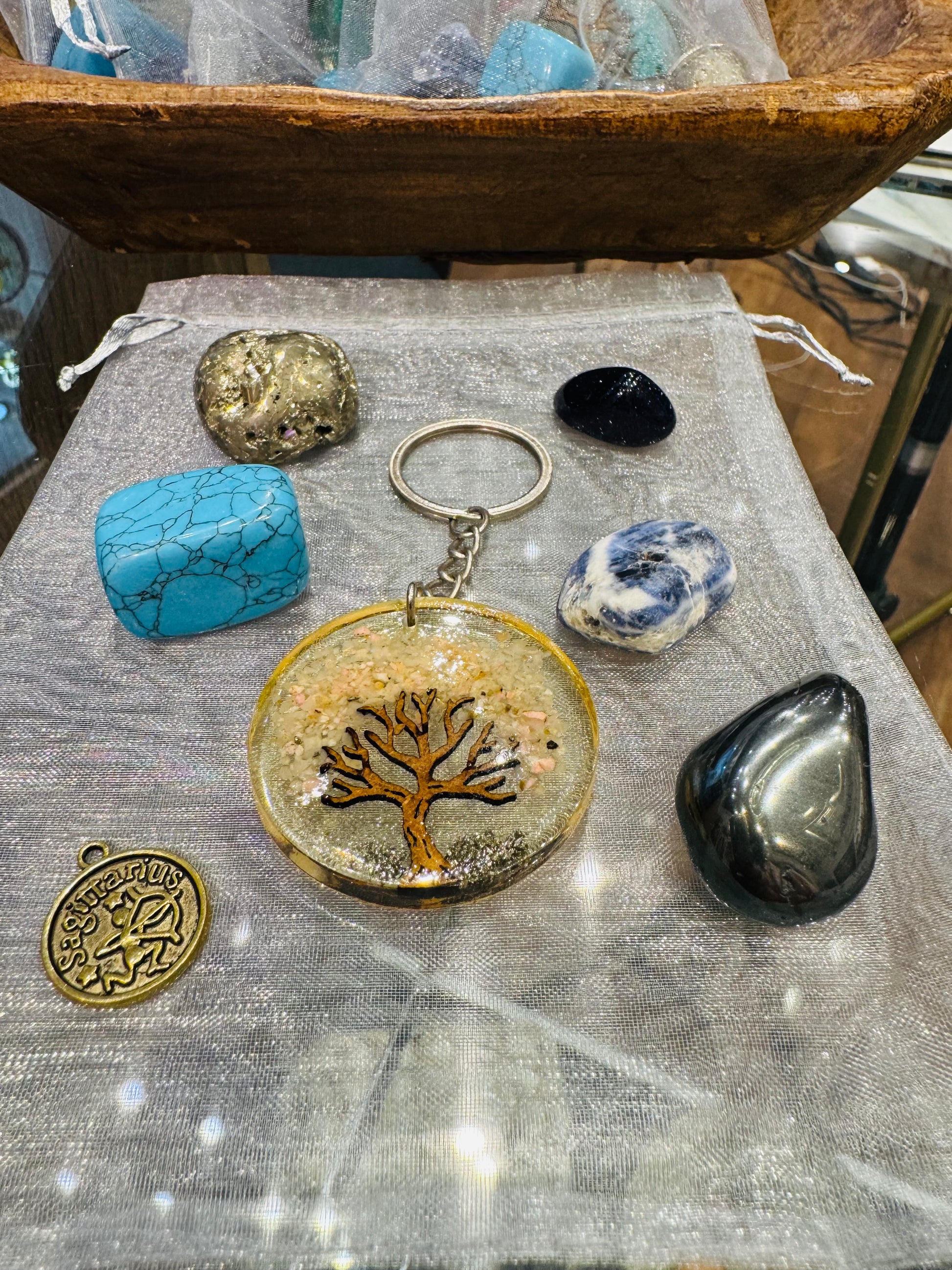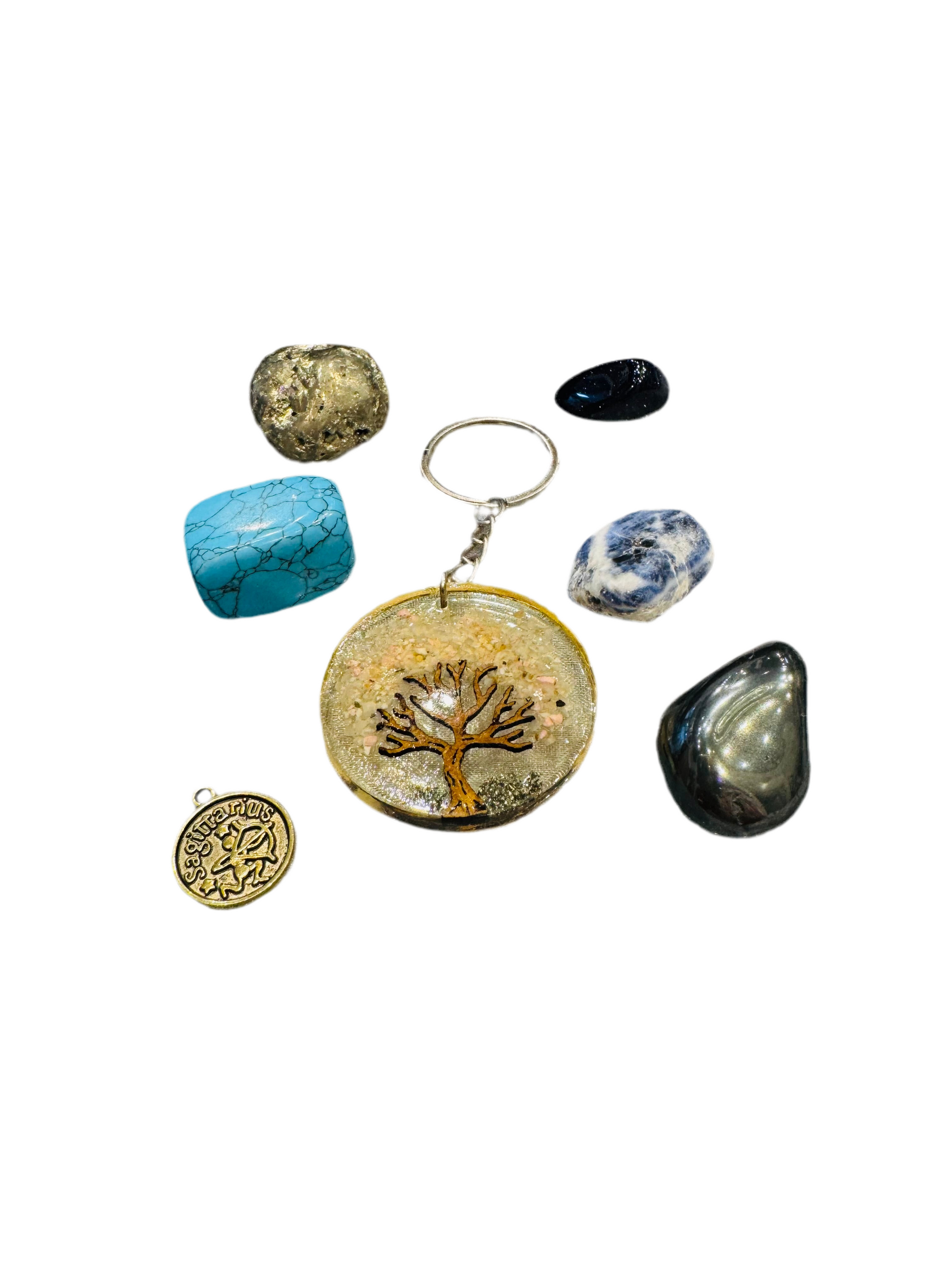 Complete with an antique Sagittarius charm and a Tree of Life keychain,(Color is chosen for you)