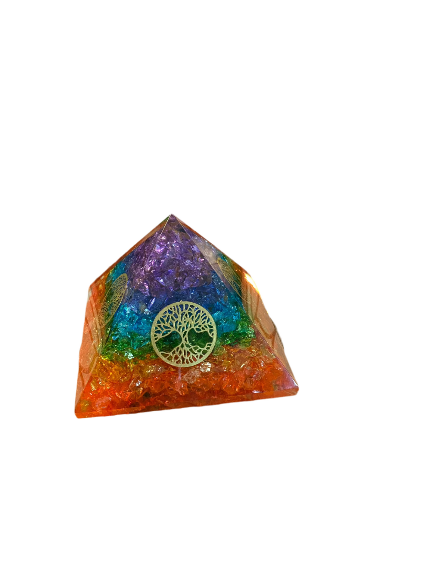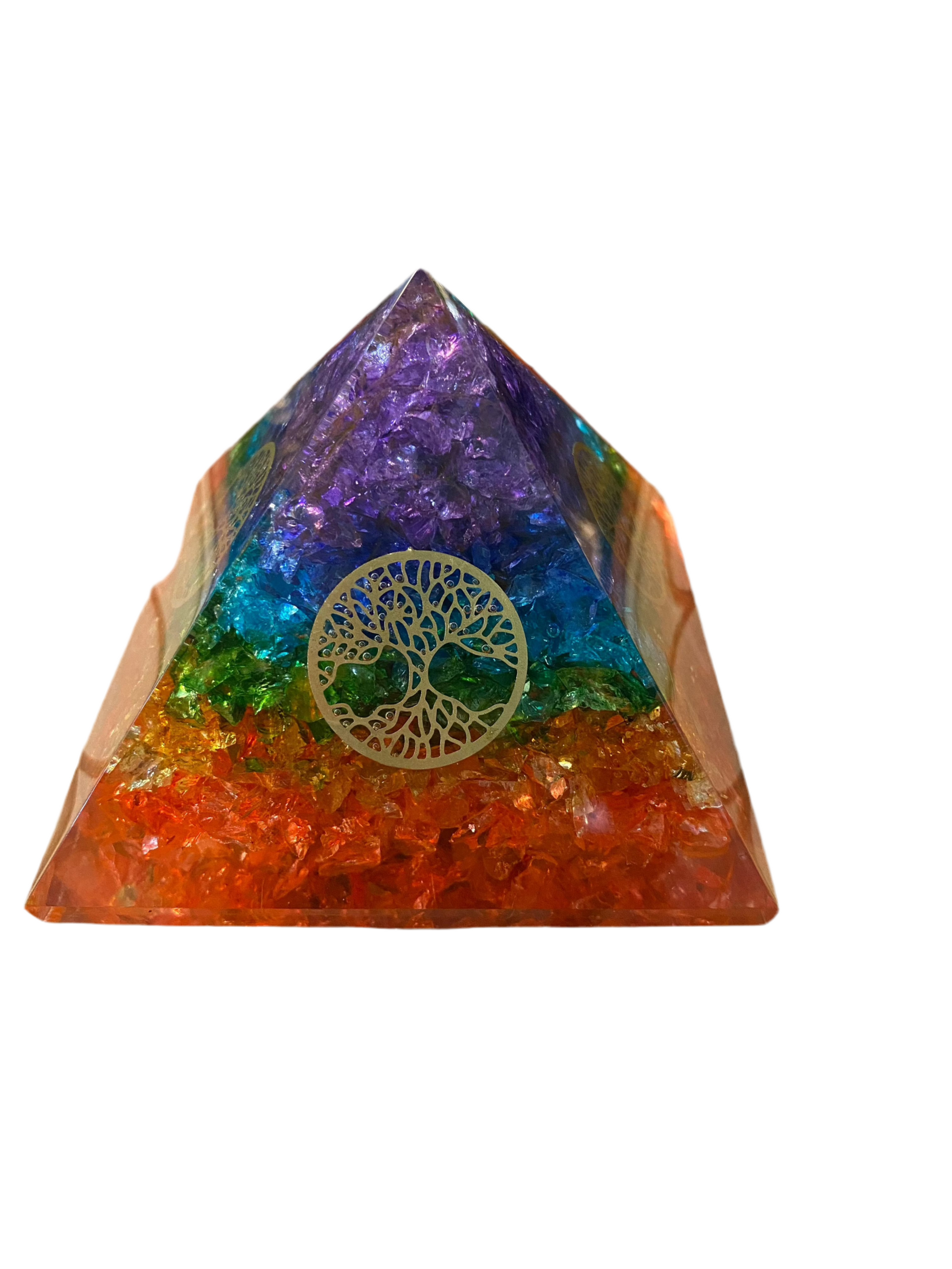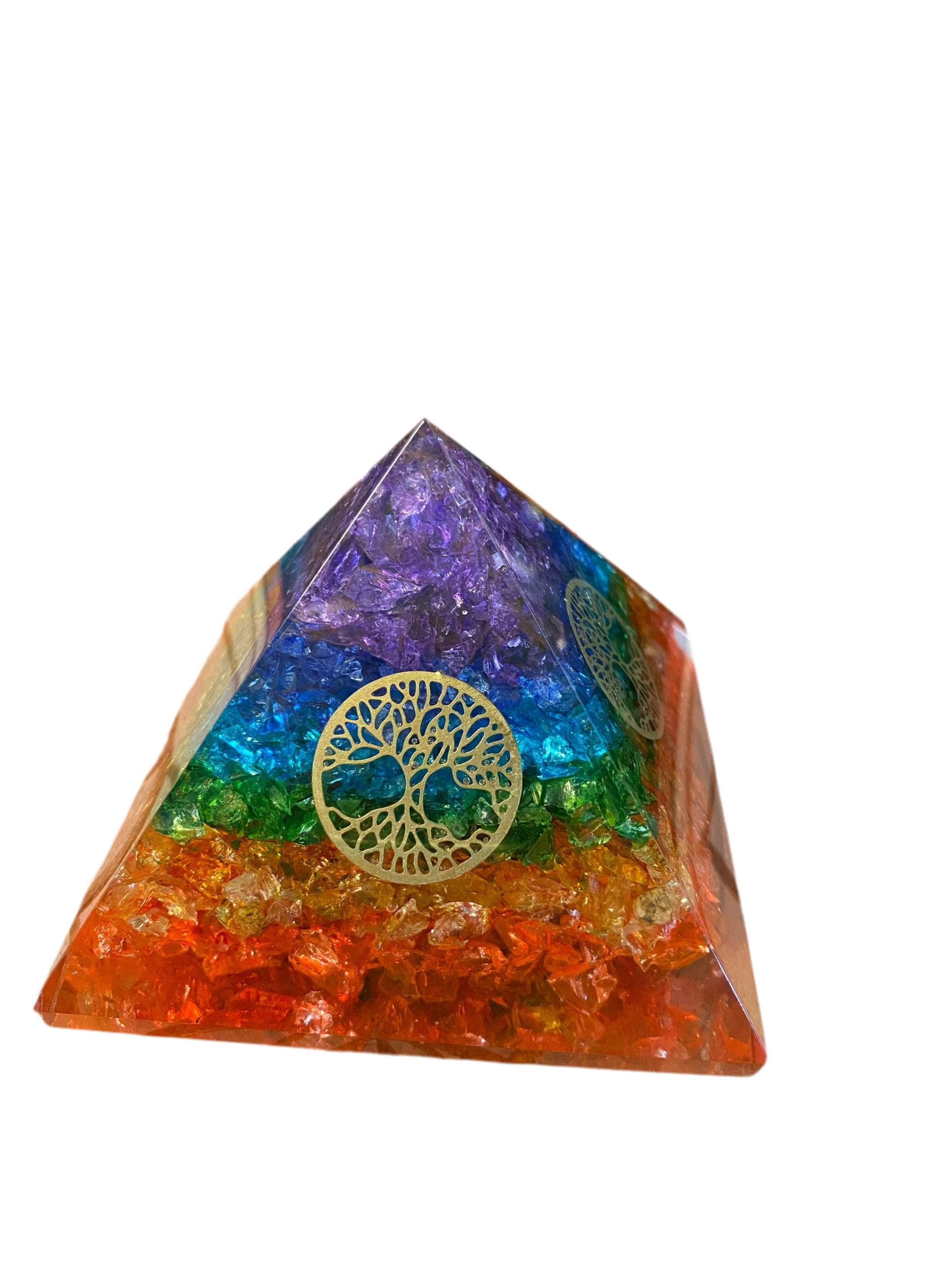Seven Chakra Orgonite Pyramid Agate Chips with Tree Of Life Symbol