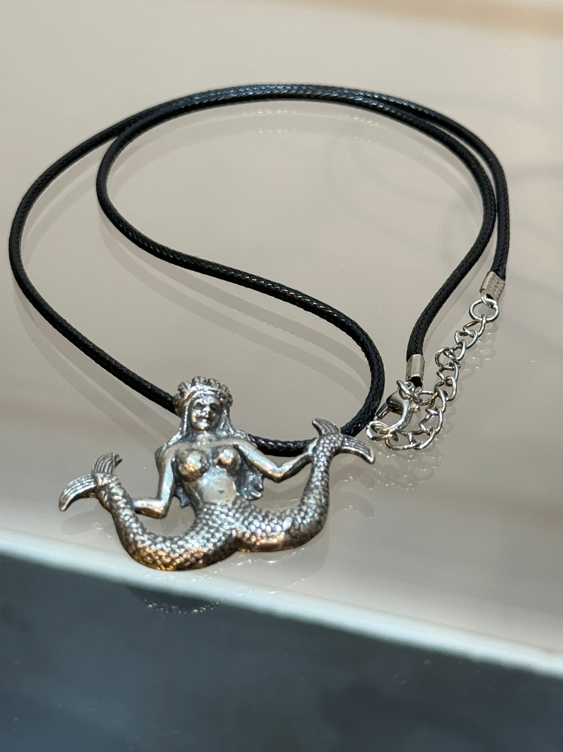 Excellent detail in her hair, face, body, scales, tail and thick Cord Necklace