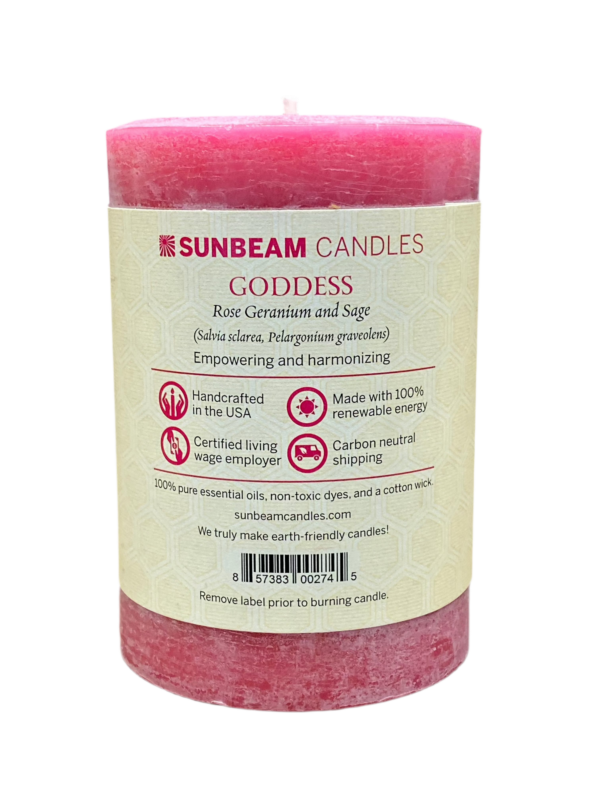 Sunbeam Candles Pink Goddess Handcrafted Oil Blends Rose, Geranium and Sage