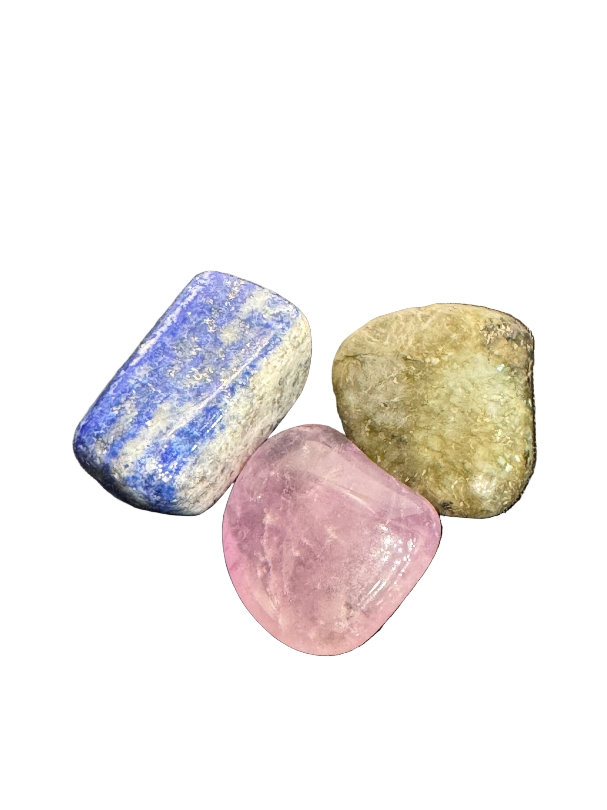 - Amethyst, Lapis Lazuli, and Labradorite tumble stones
