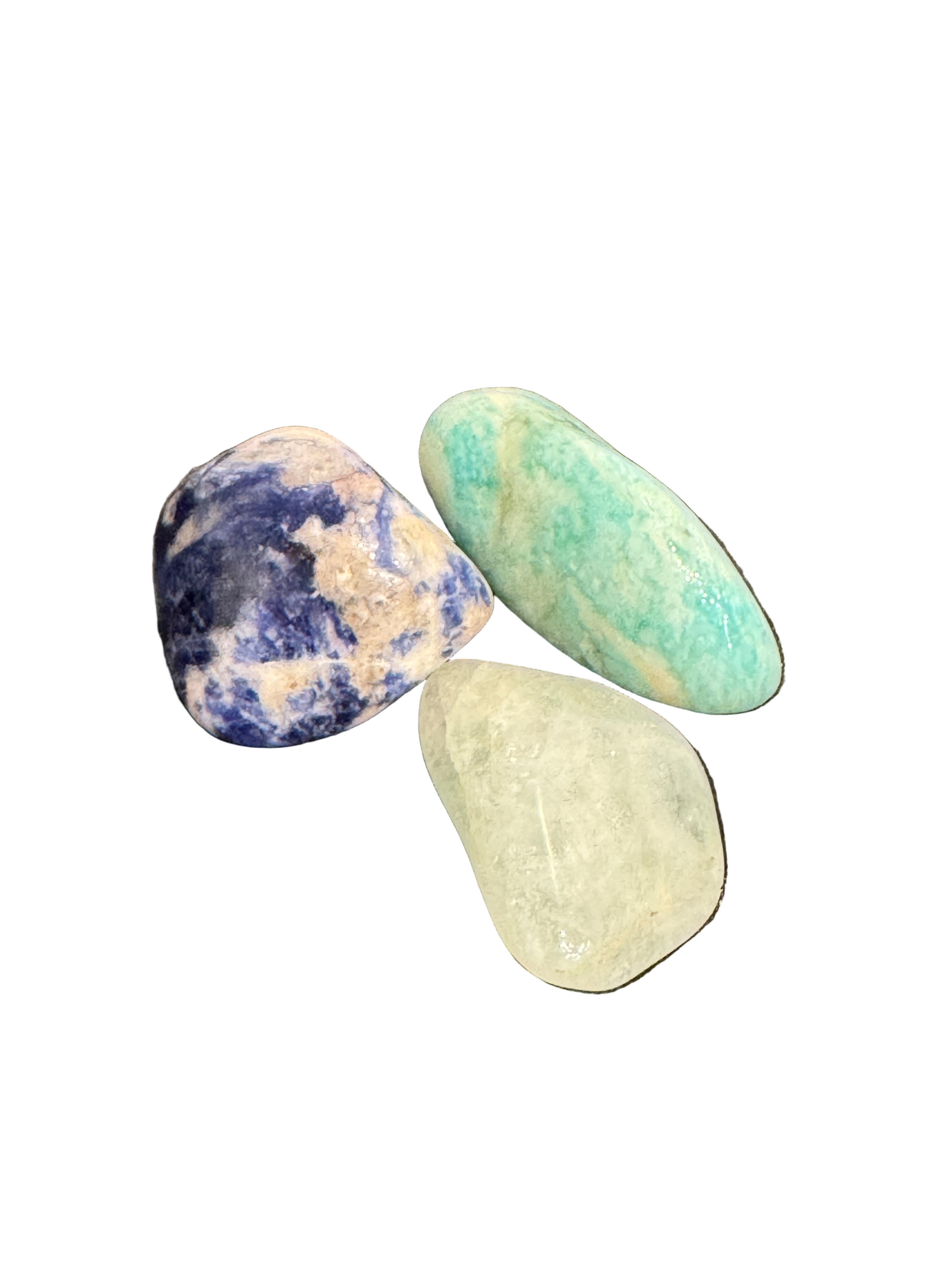 - Sodalite, Aquamarine, and Amazonite stones