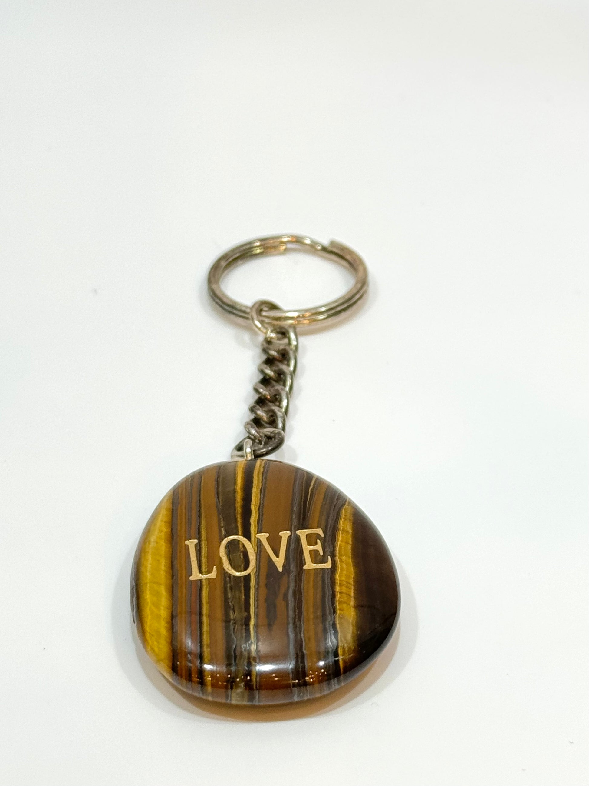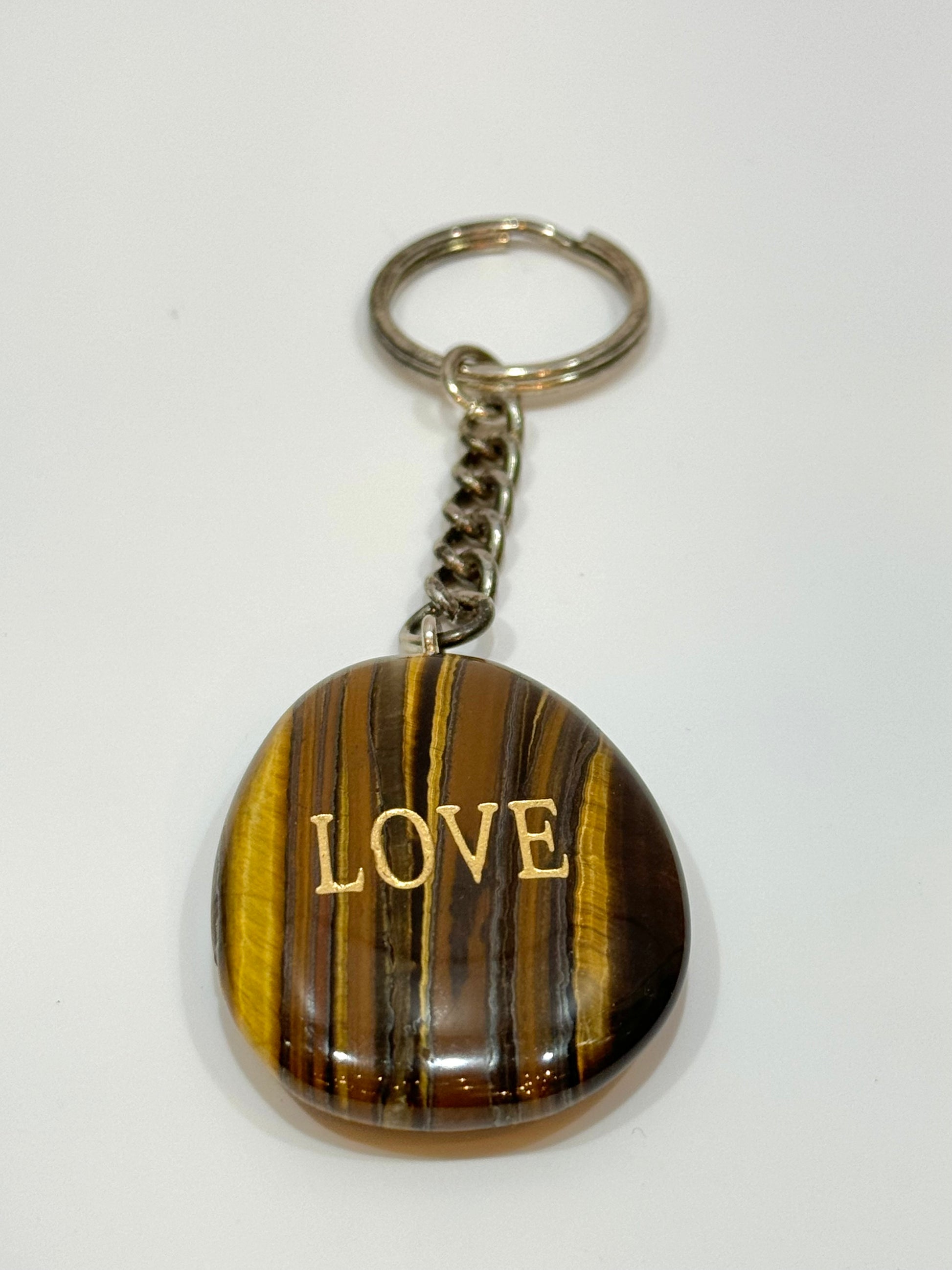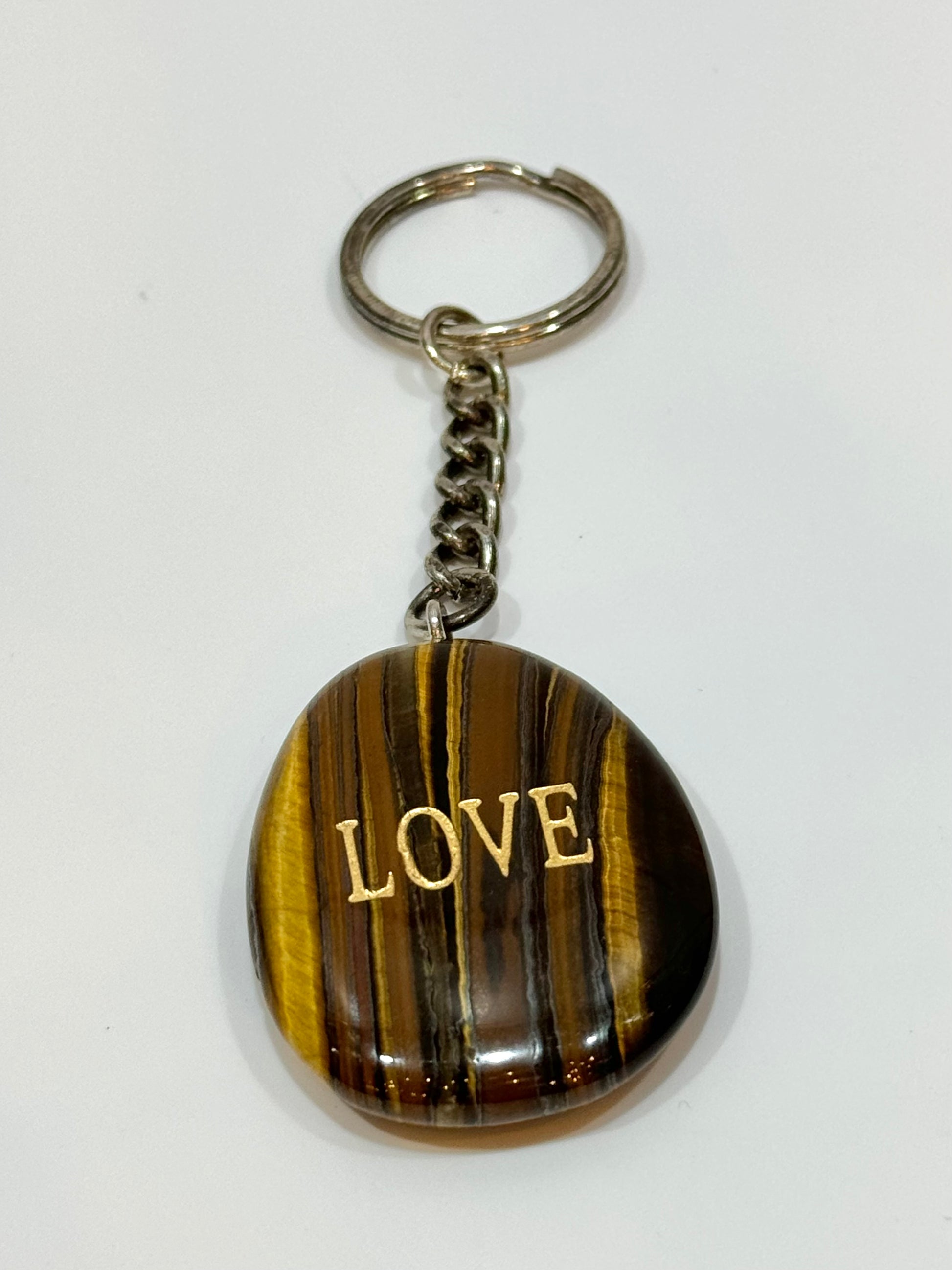 Tiger Eye Keychain Handmade Polished Engraving Love