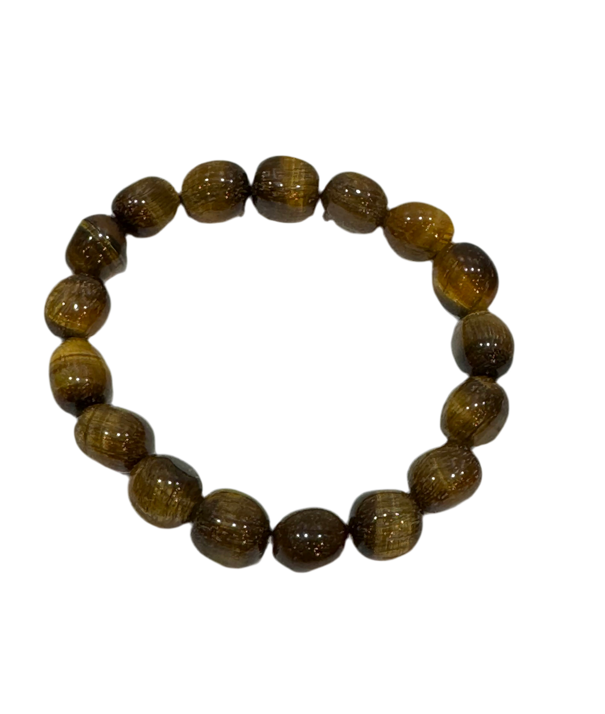 A beautiful bracelet crafted from Tiger Eye tumbled stones. 6-8 mm thick nuggets on a stretchable bracelet, fits most wrists.