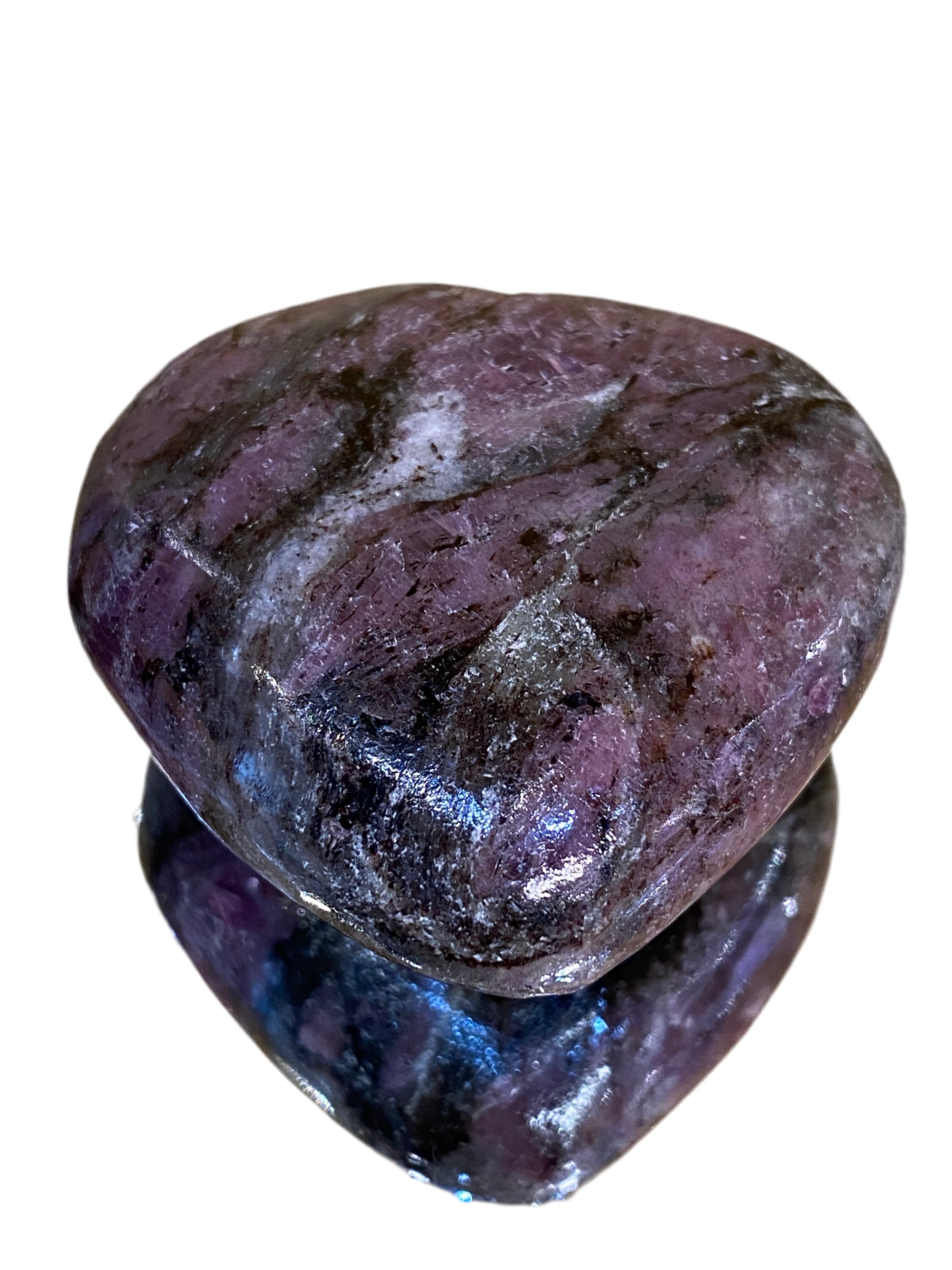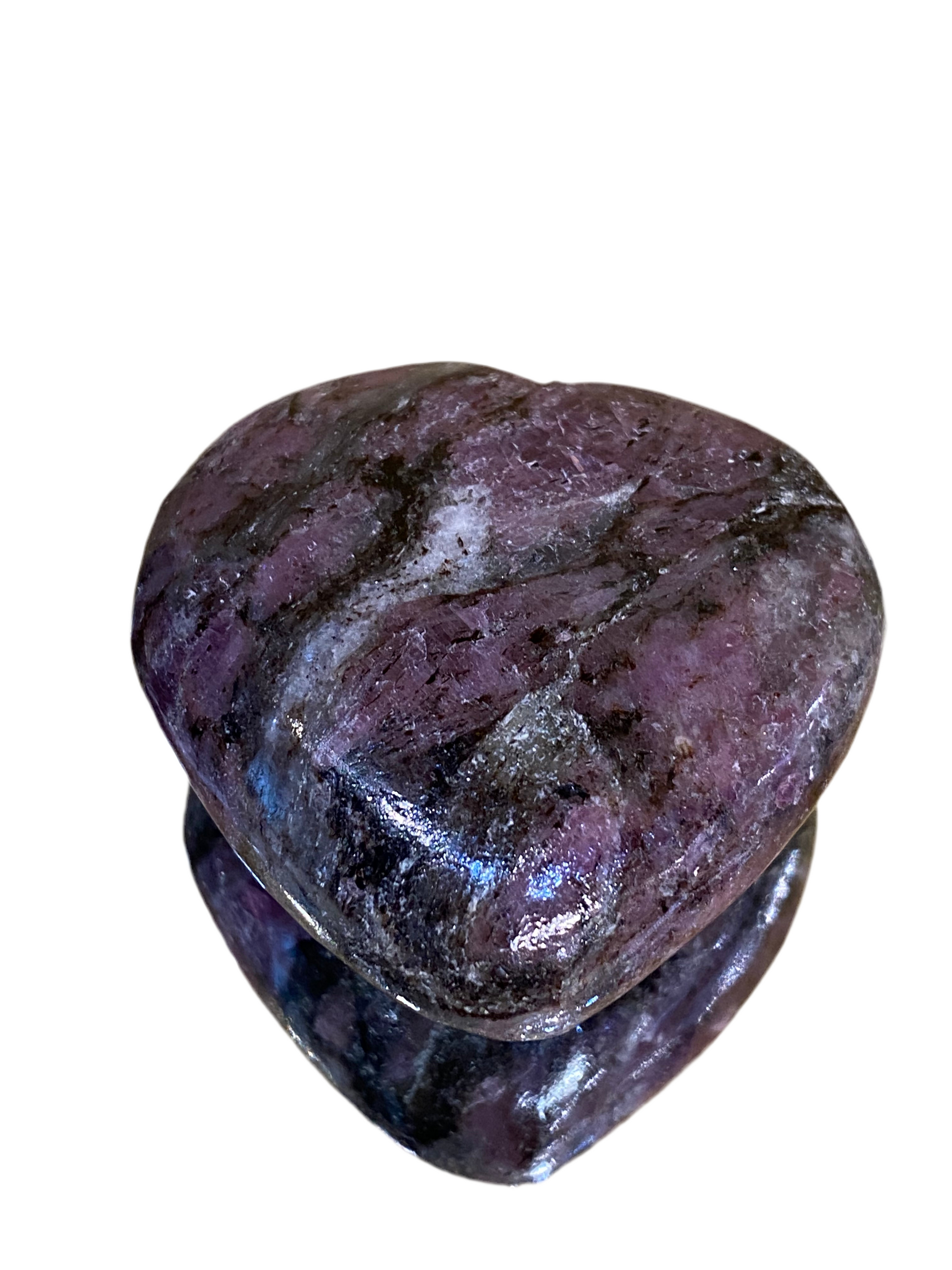 Charoite Heart has associations with transformation and change; it is used by some as a support crystal when away from home or separated from loved ones. The energies that are thought to emit from this crystal strengthen the body and emotions whilst offering protection from negative energies and providing balance.This mineral is also said to encourage visions from past lives.
