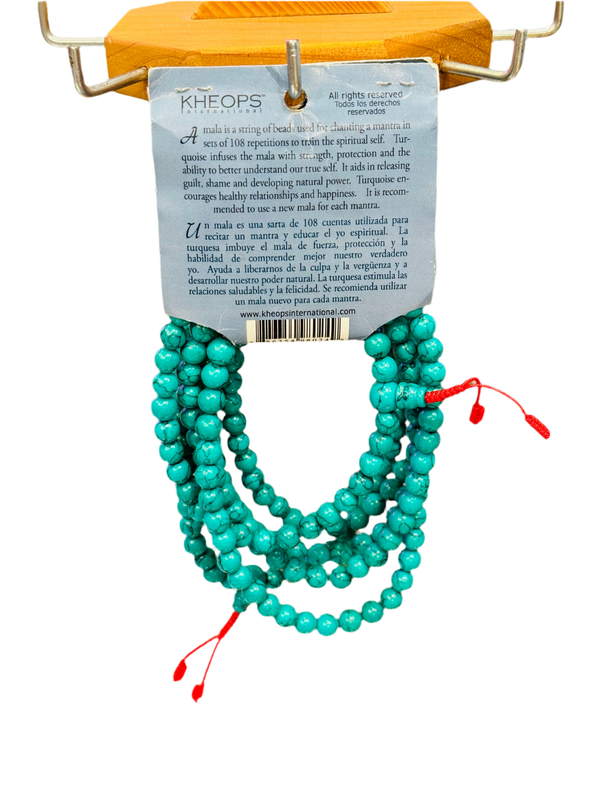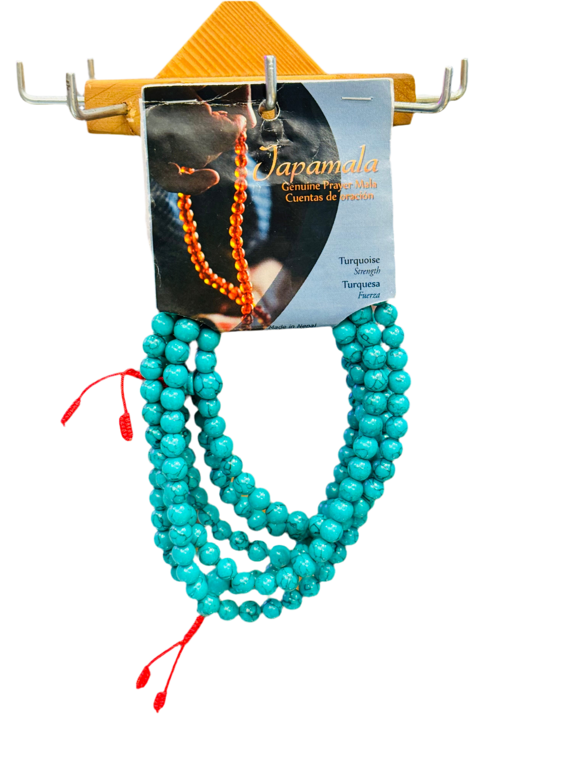 Turquoise Mala Beads is a string of beads used for chanting a mantra in sets of 108 repetitions to train one's spiritual self. Turquoise Mala Beads is the most ancient form of a rosary, used to count the repetitions of a mantra and a prayer. Turquoise Mala Beads is recommended to use for mantra. When the Turquoise Mala Beads empowered with the mantra's energy, it can be worn.