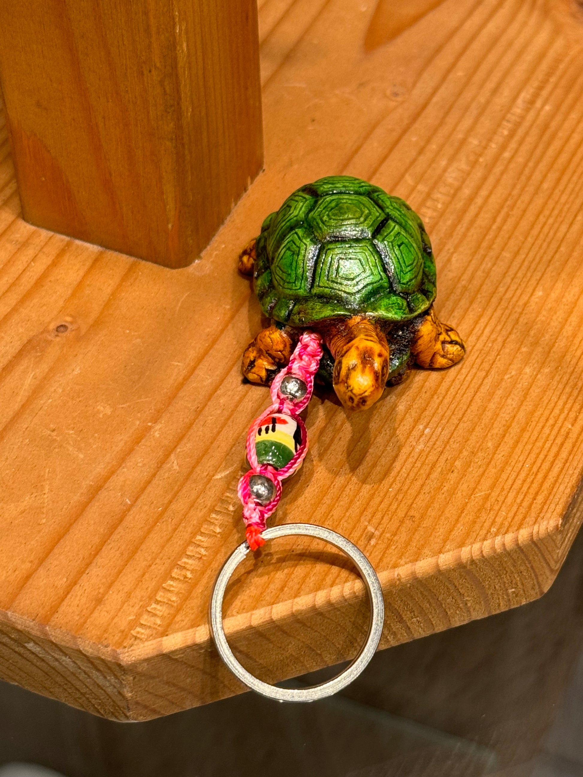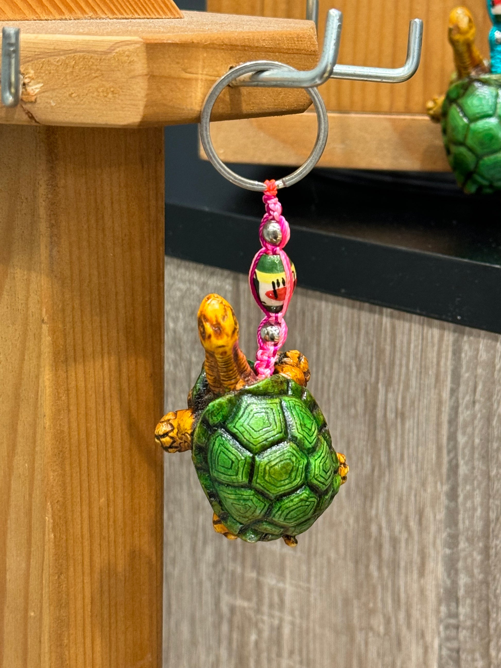 Turtle Land Animal Durepox Resin Figurine Keychain Pink Cord