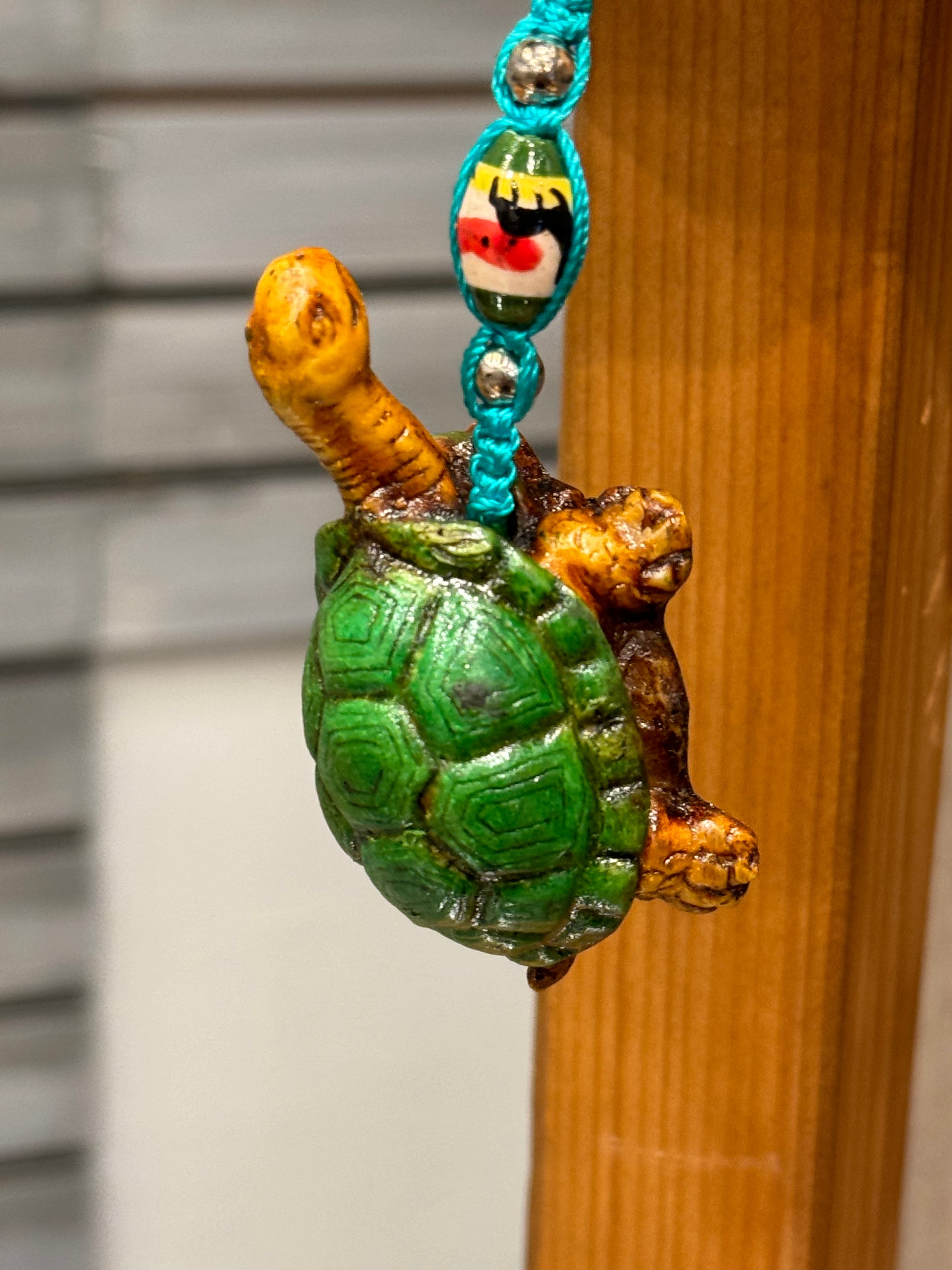 Turtle Land Animal Durepox Resin Figurine Keychain Turquoise Cord