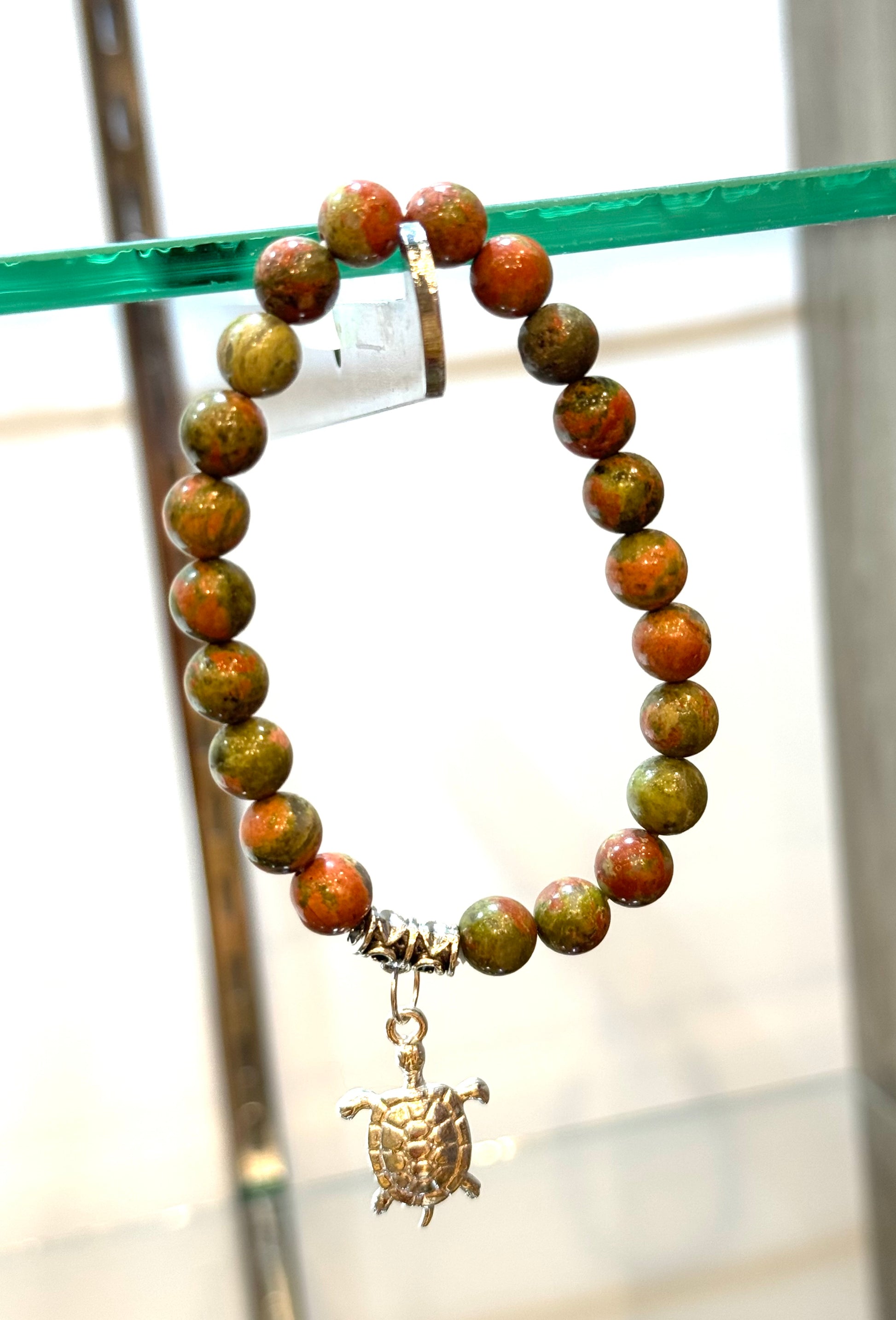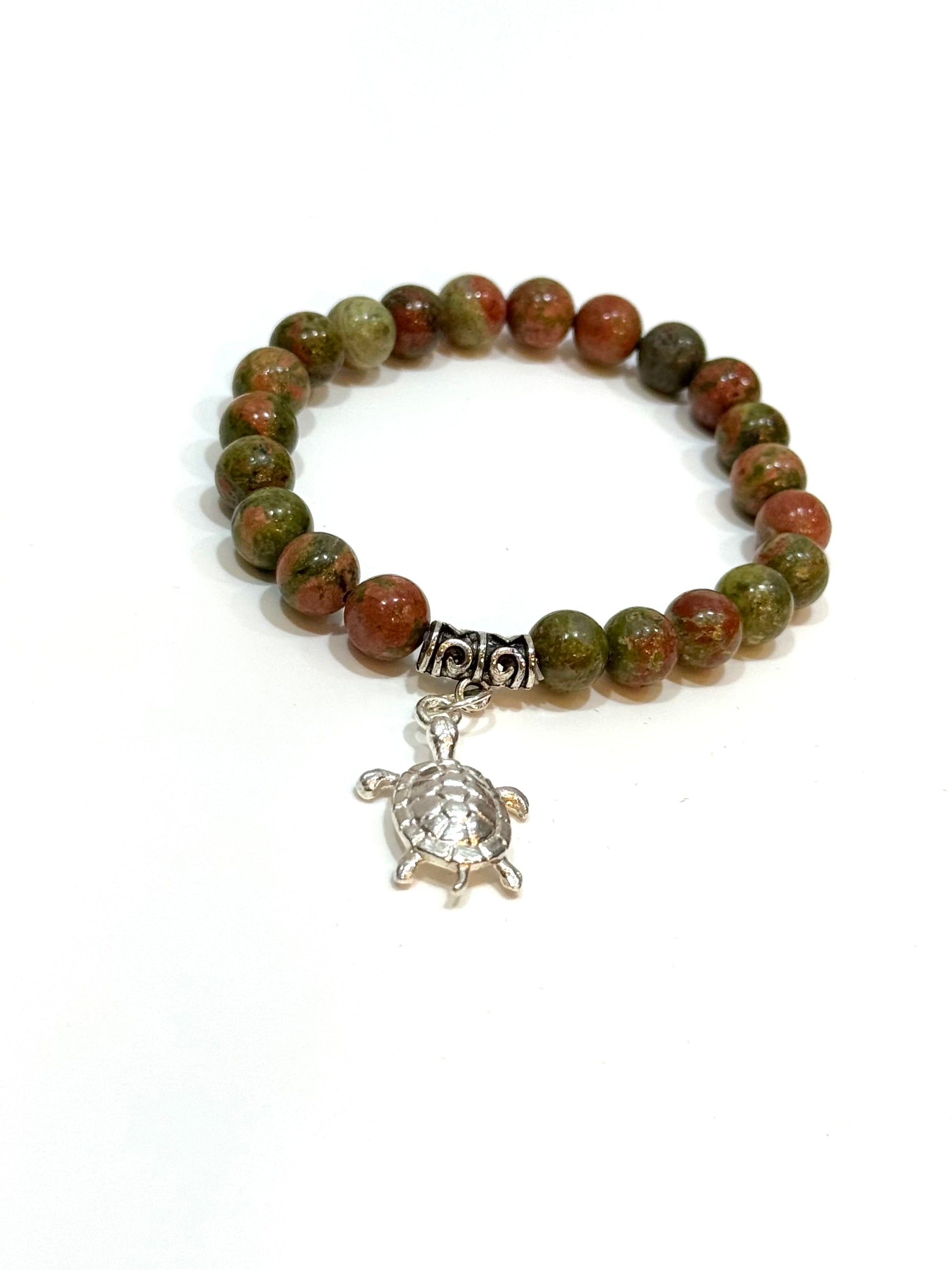 Unakite Beaded Bracelet With Turtle Charm