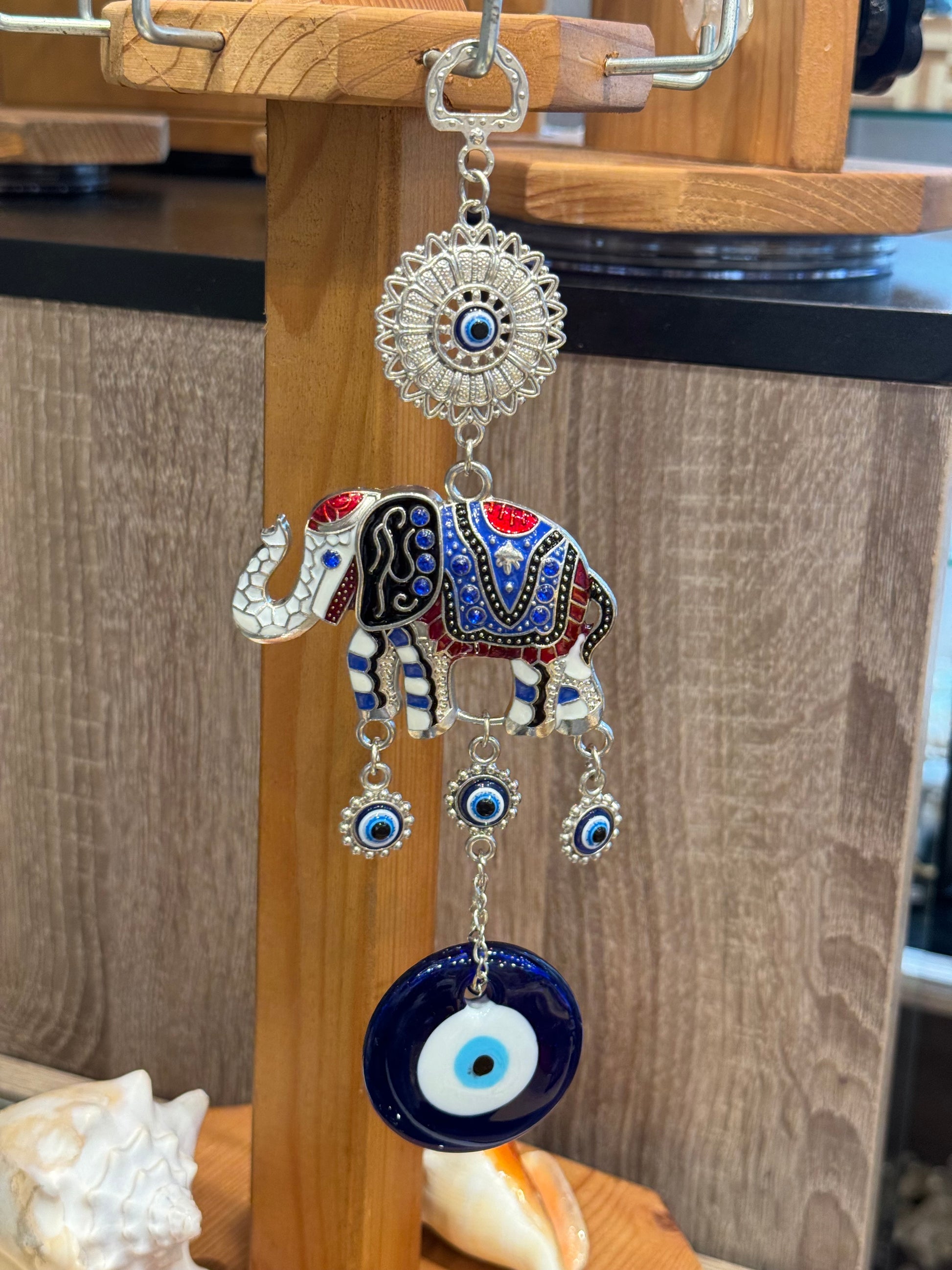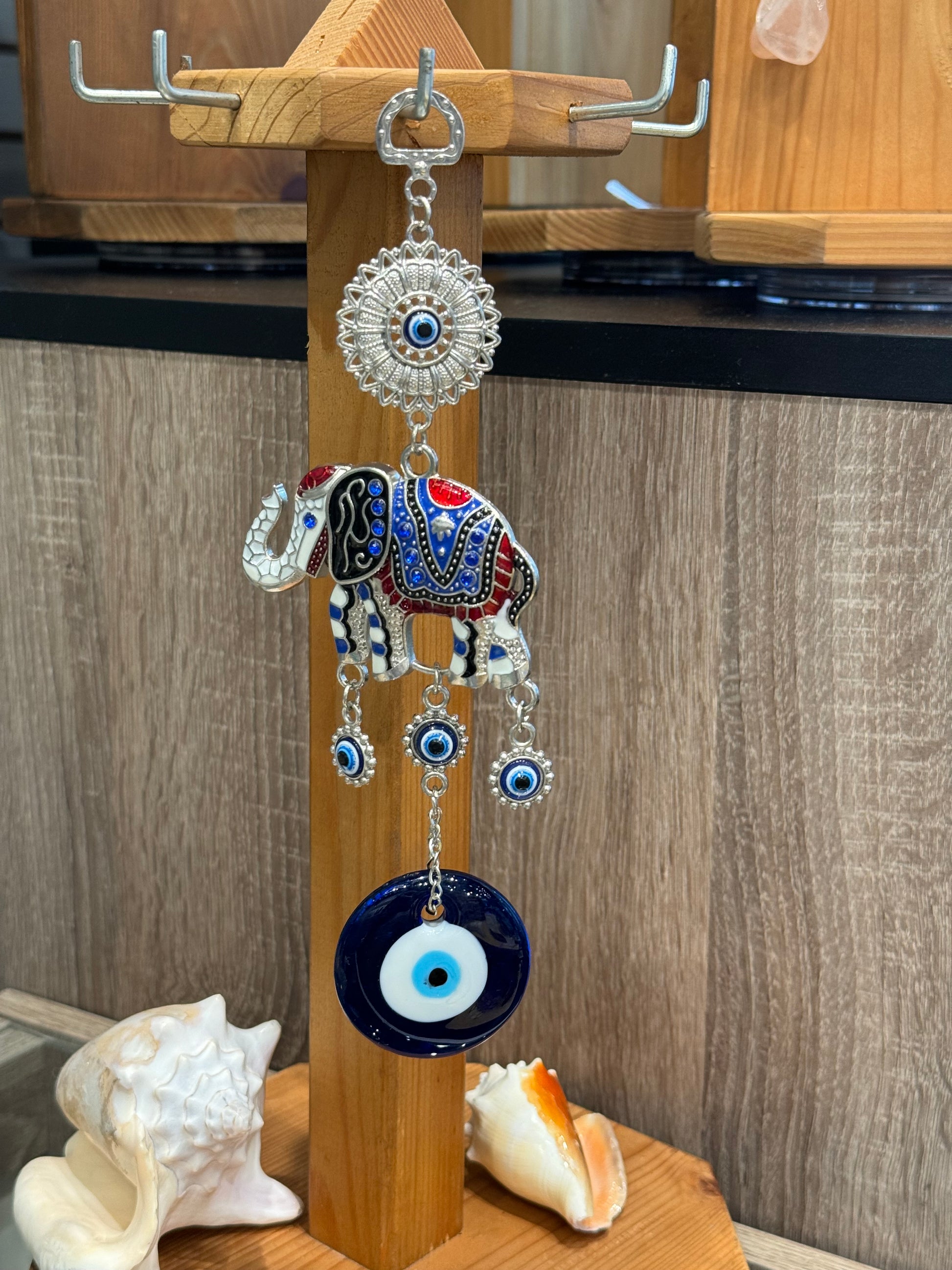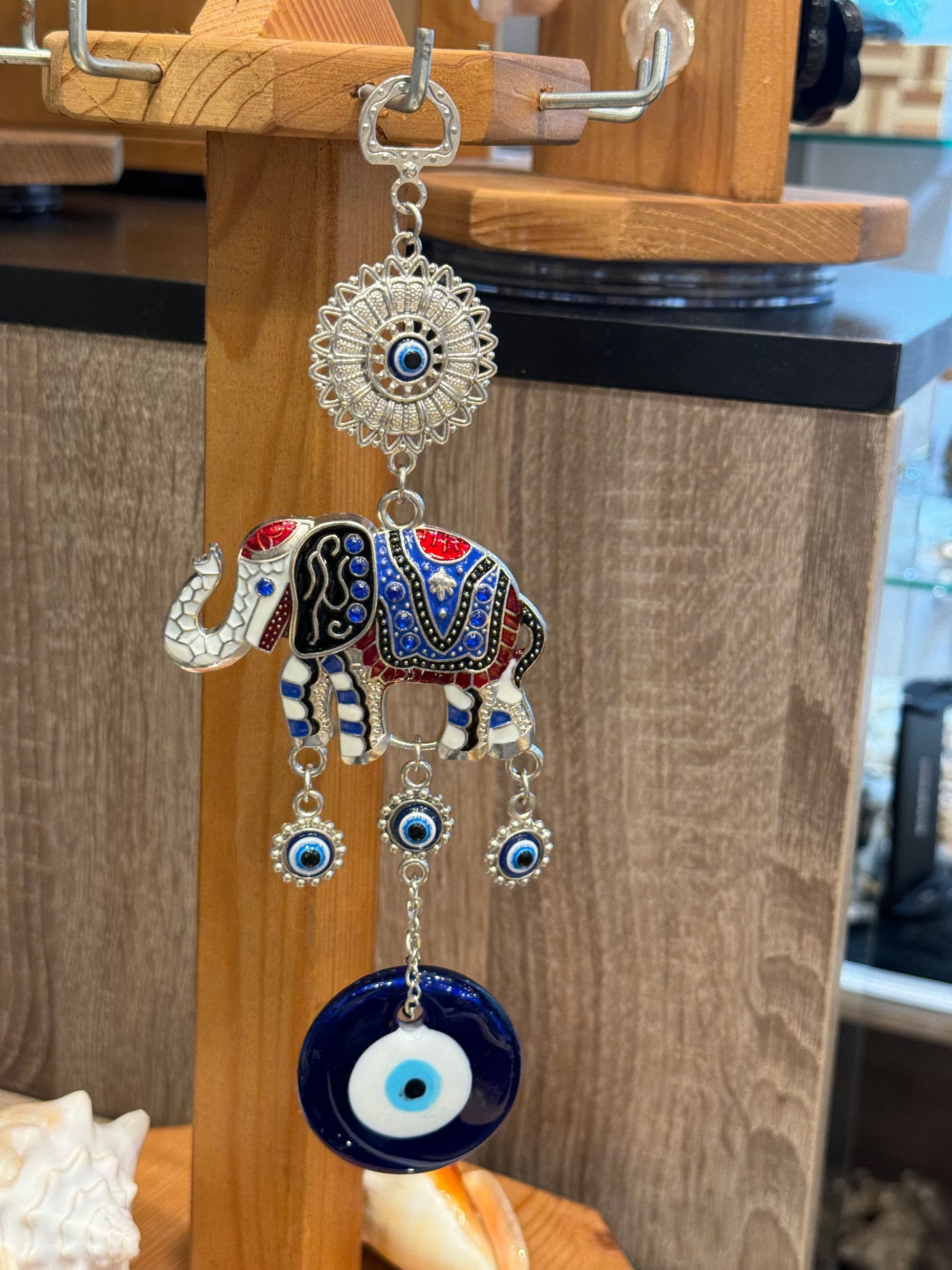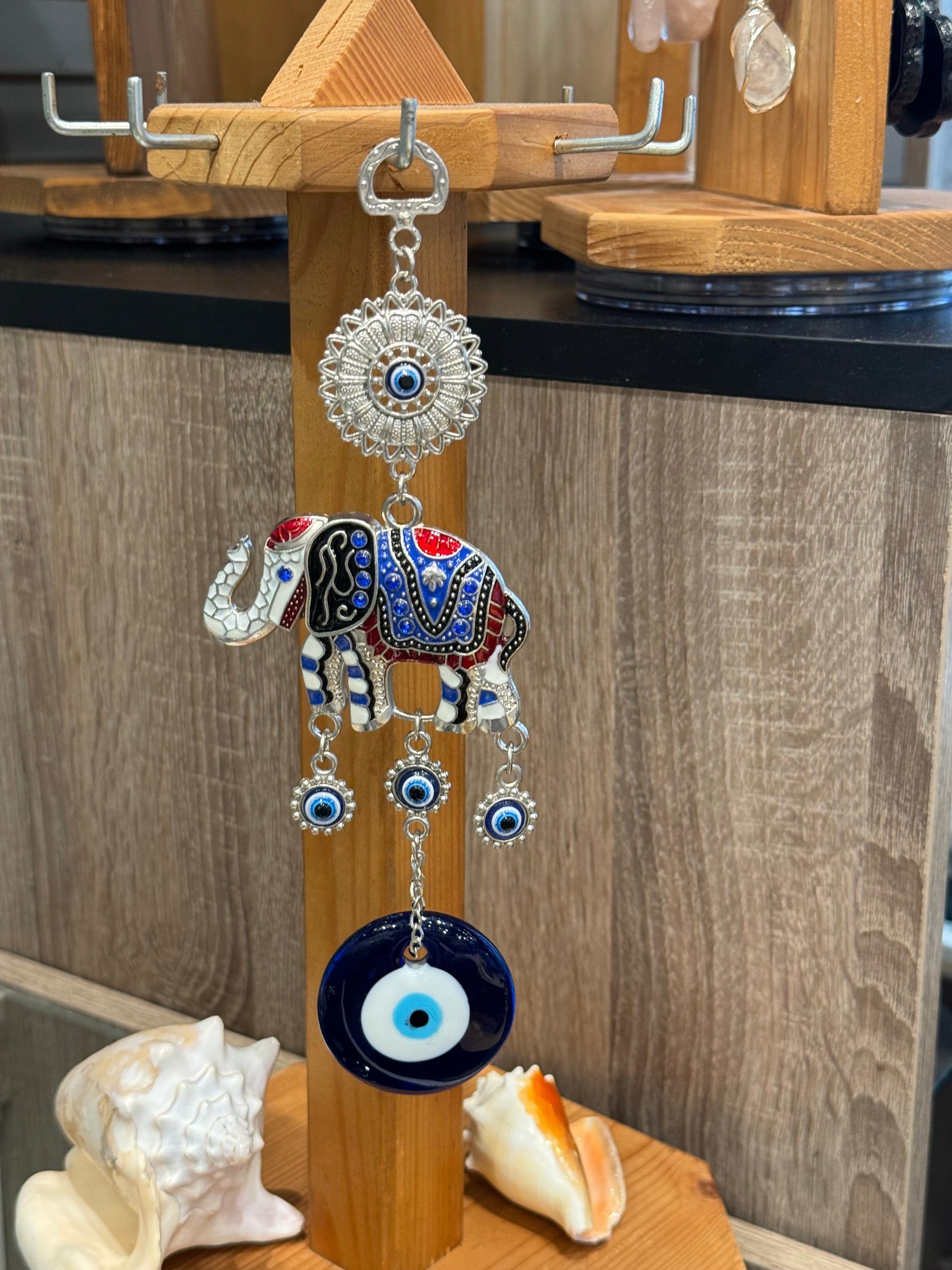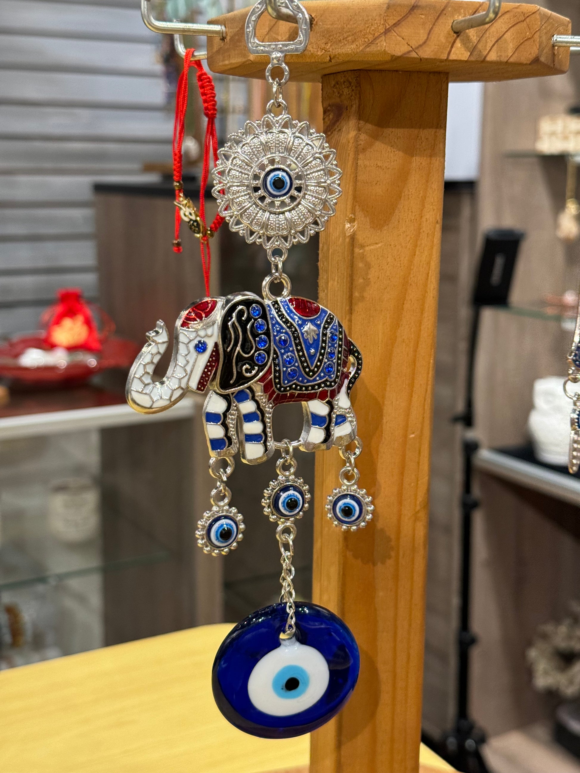 Lucky Elephant Evil Eye with Flower and Evil Eye Talisman Wall Decor