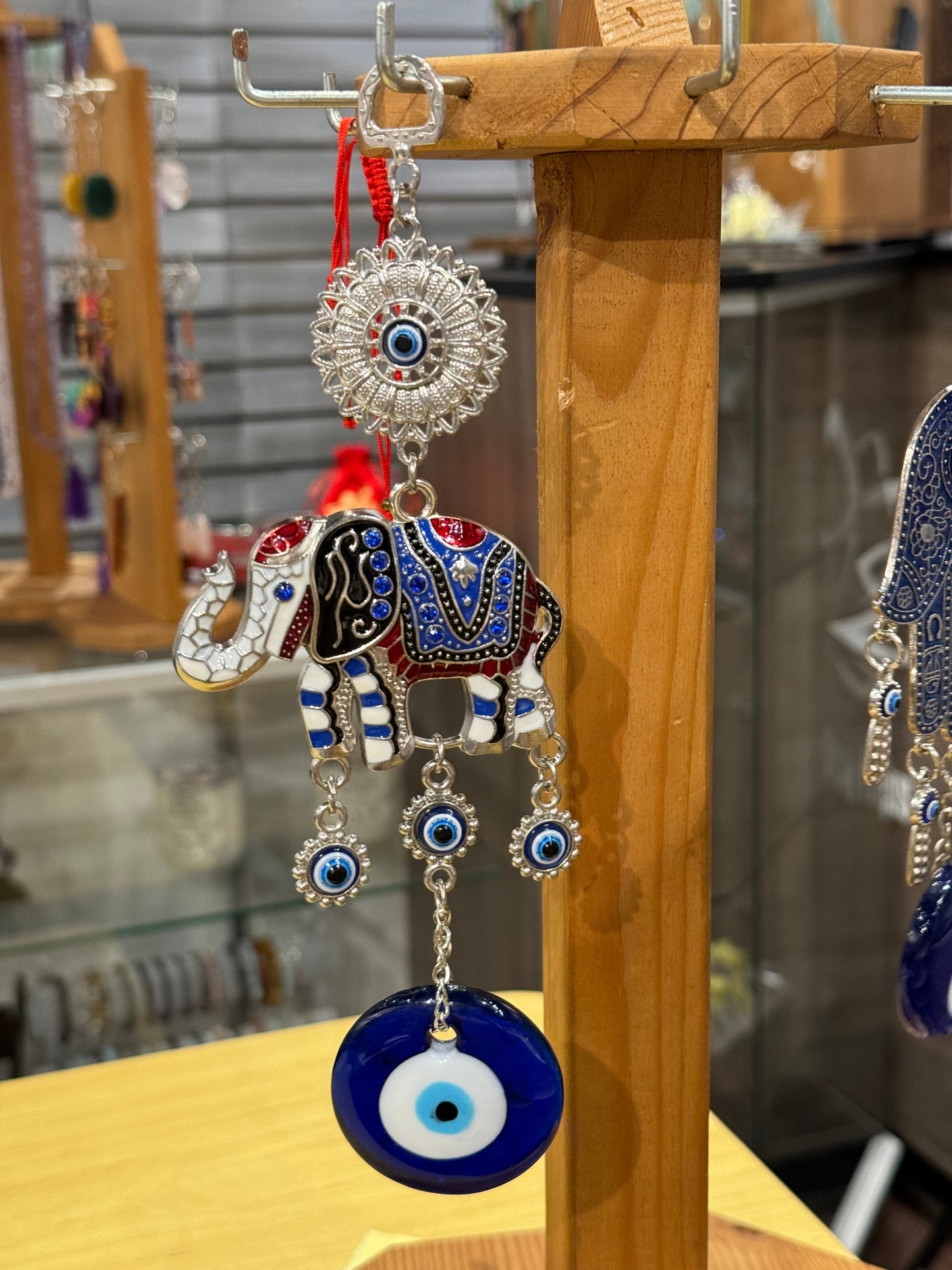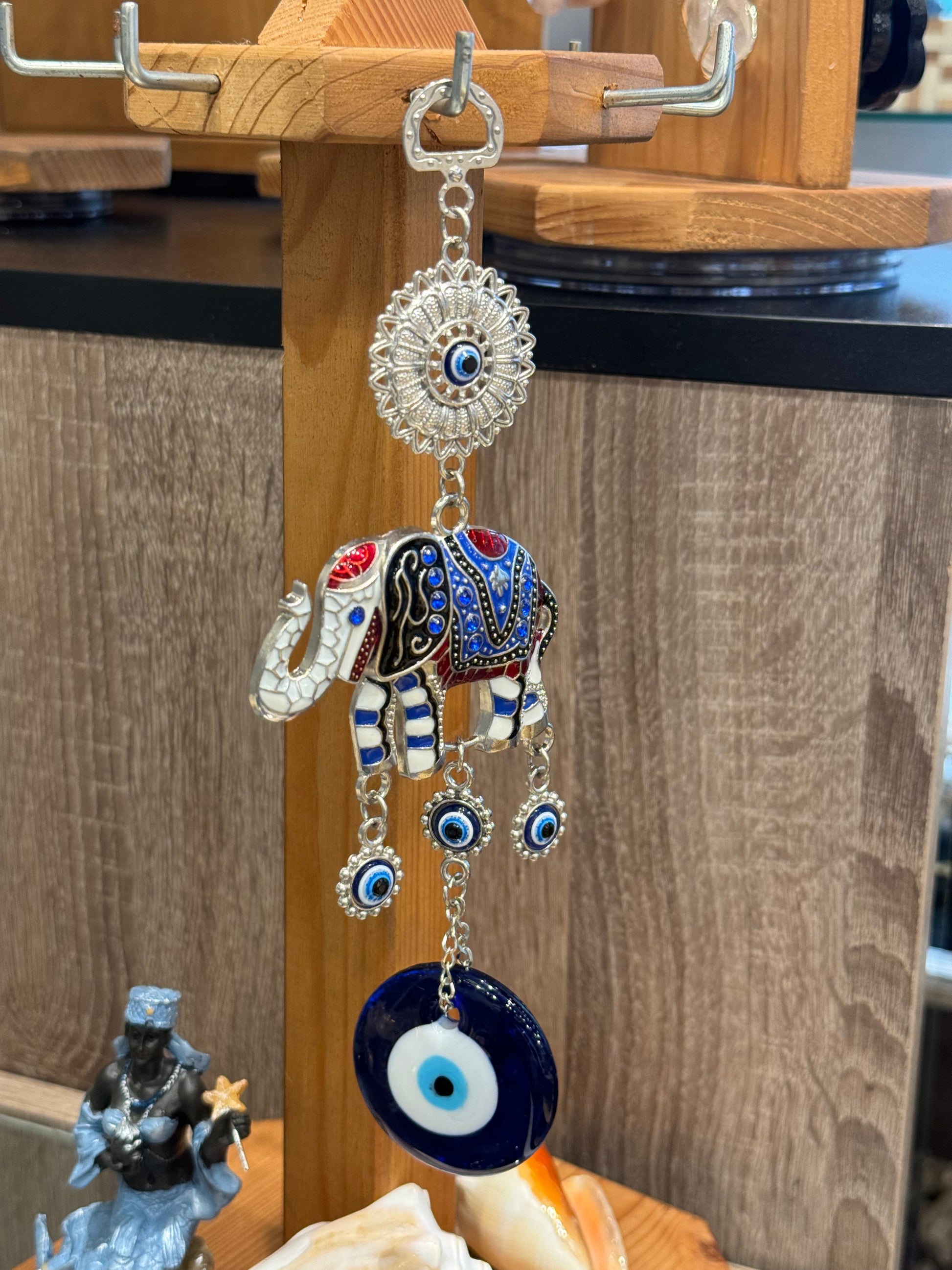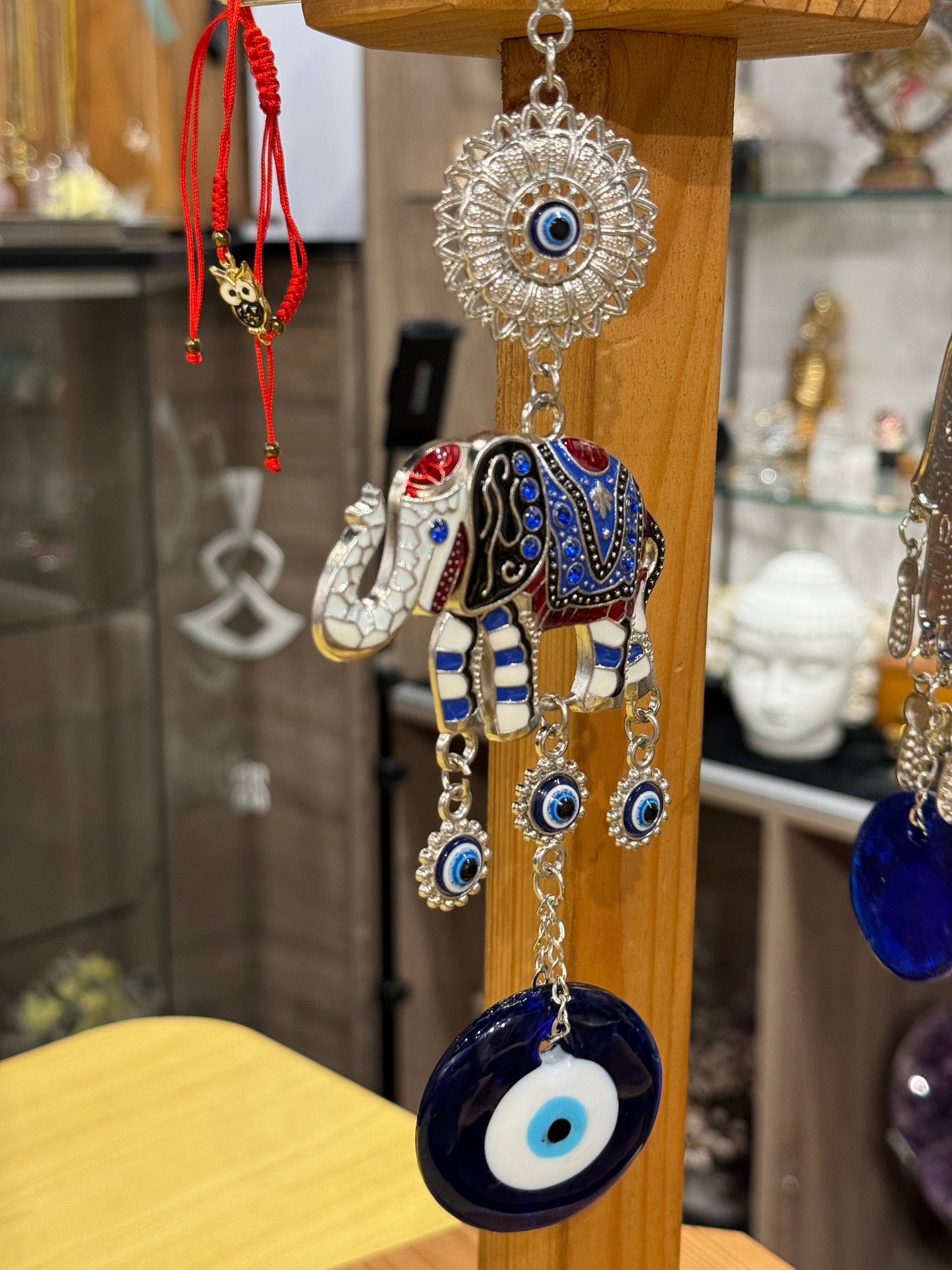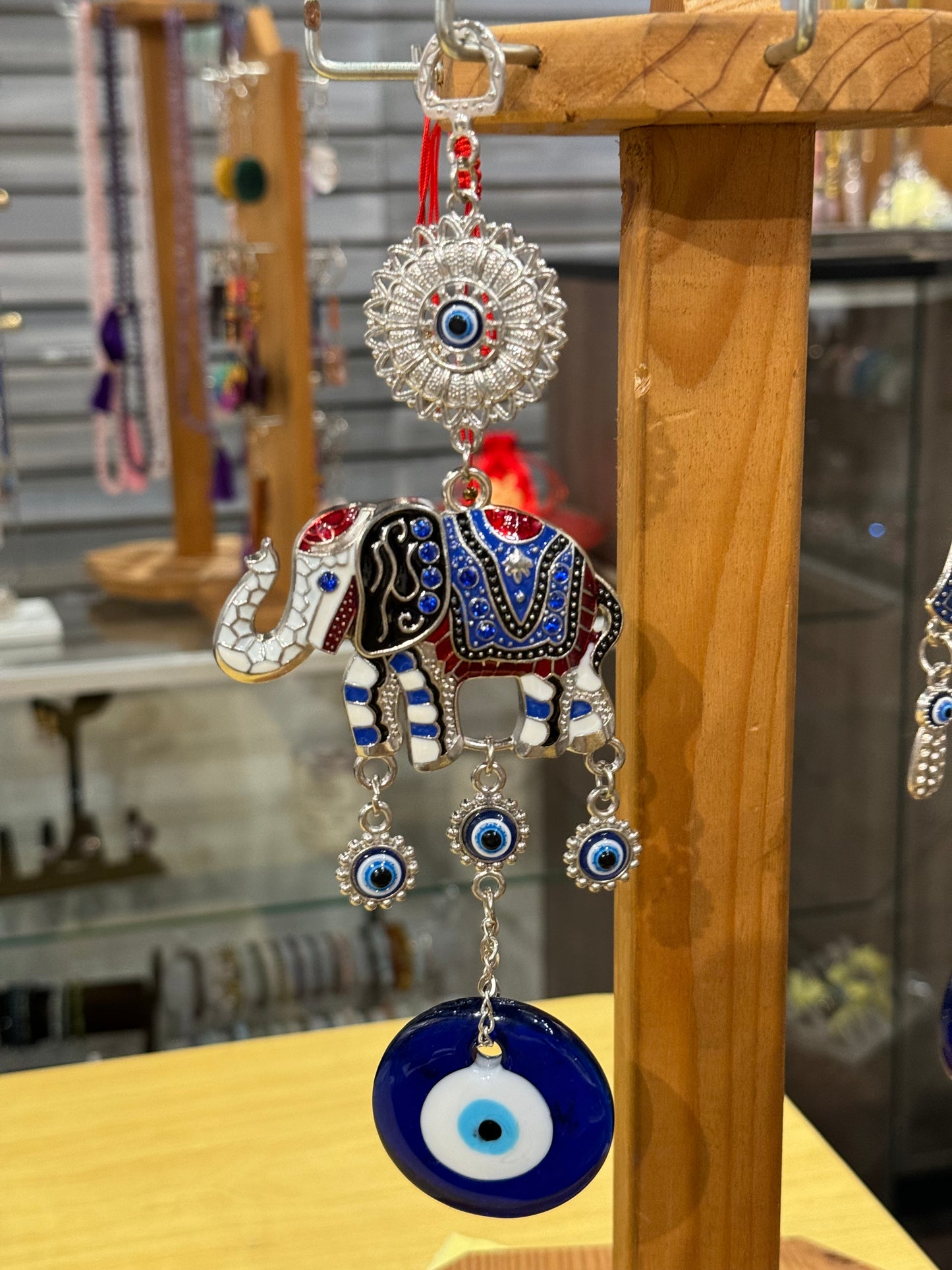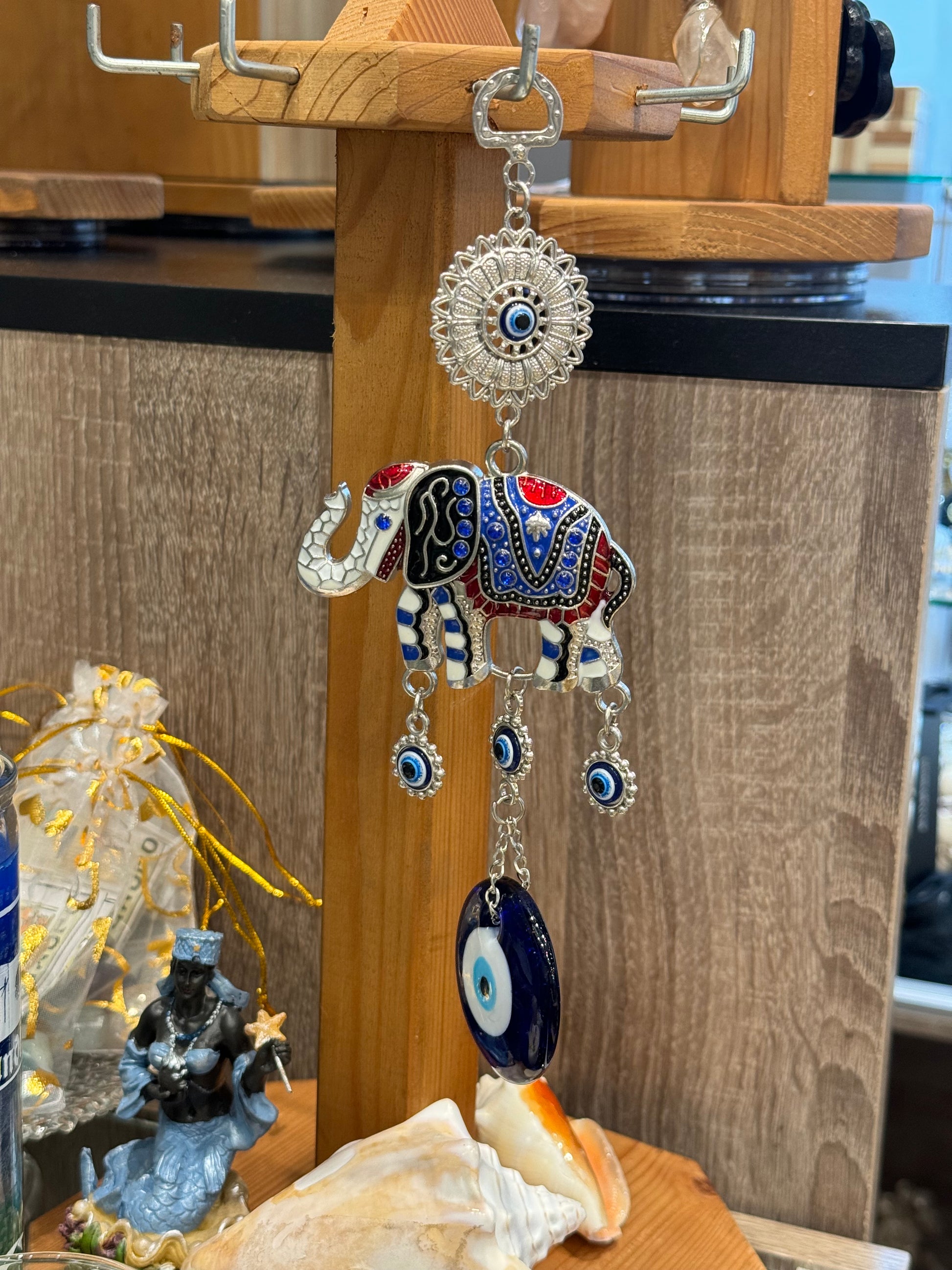Lucky Elephant Evil Eye with Flower and Evil Eye Talisman Wall Decor
