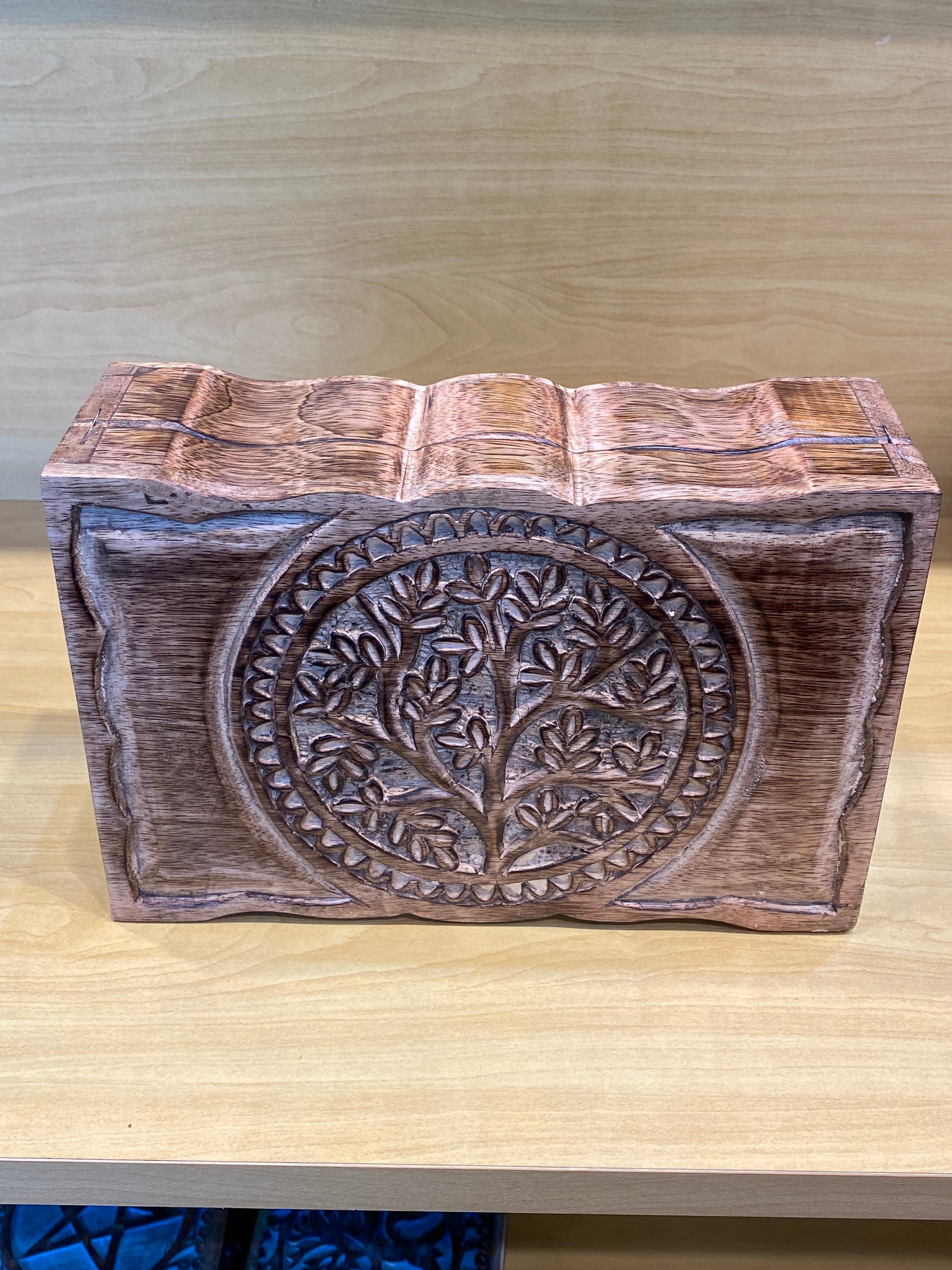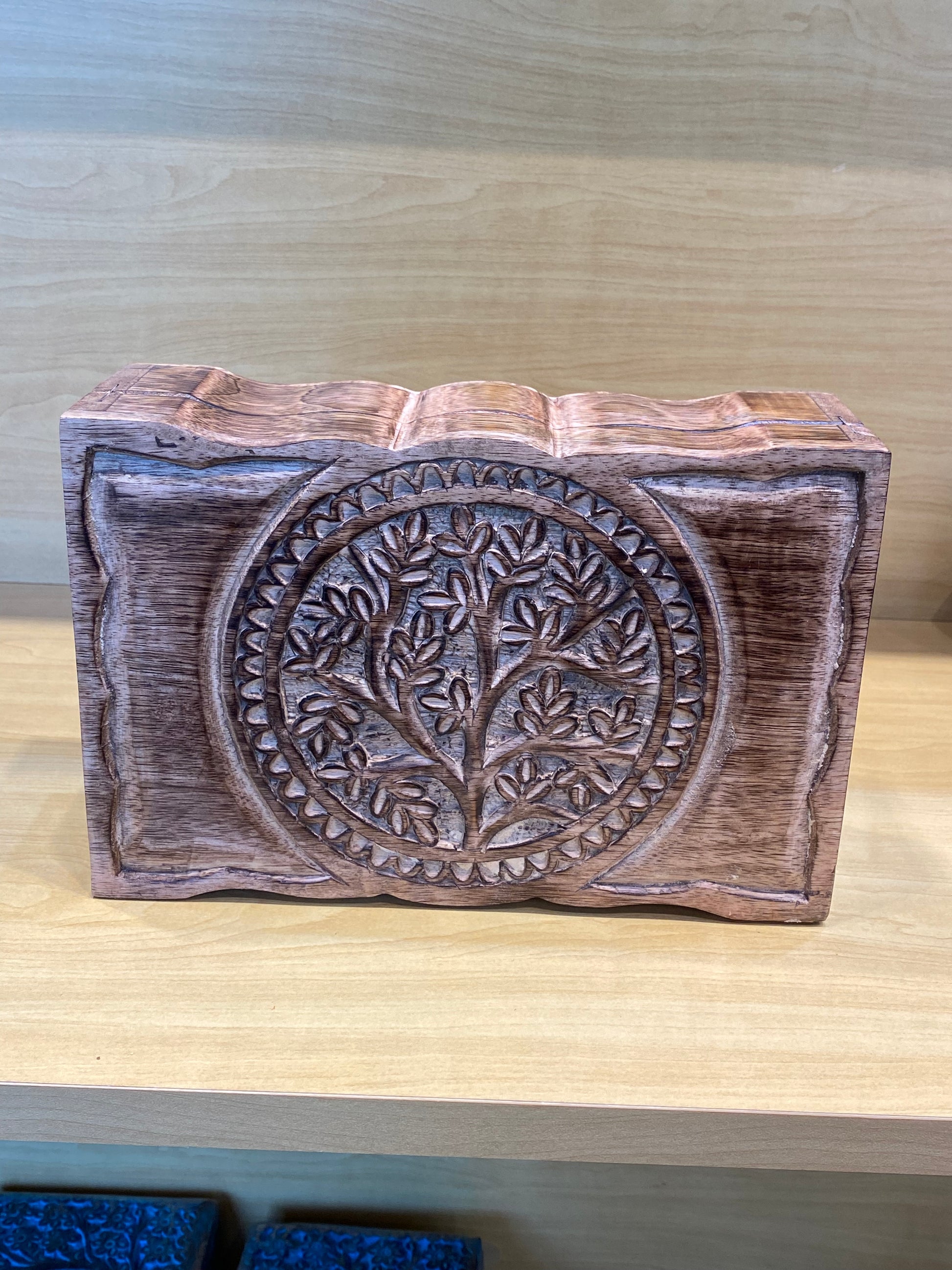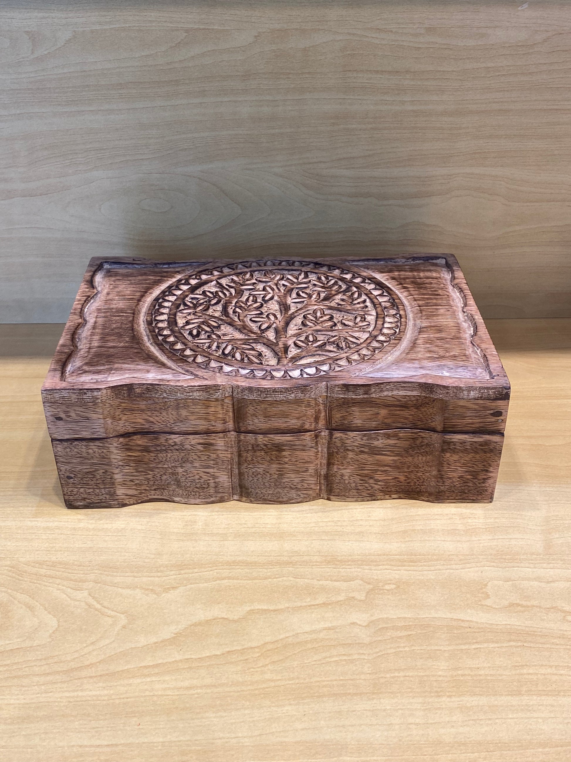 Wooden Storage Box Tree Of Life Design (Light Brown)