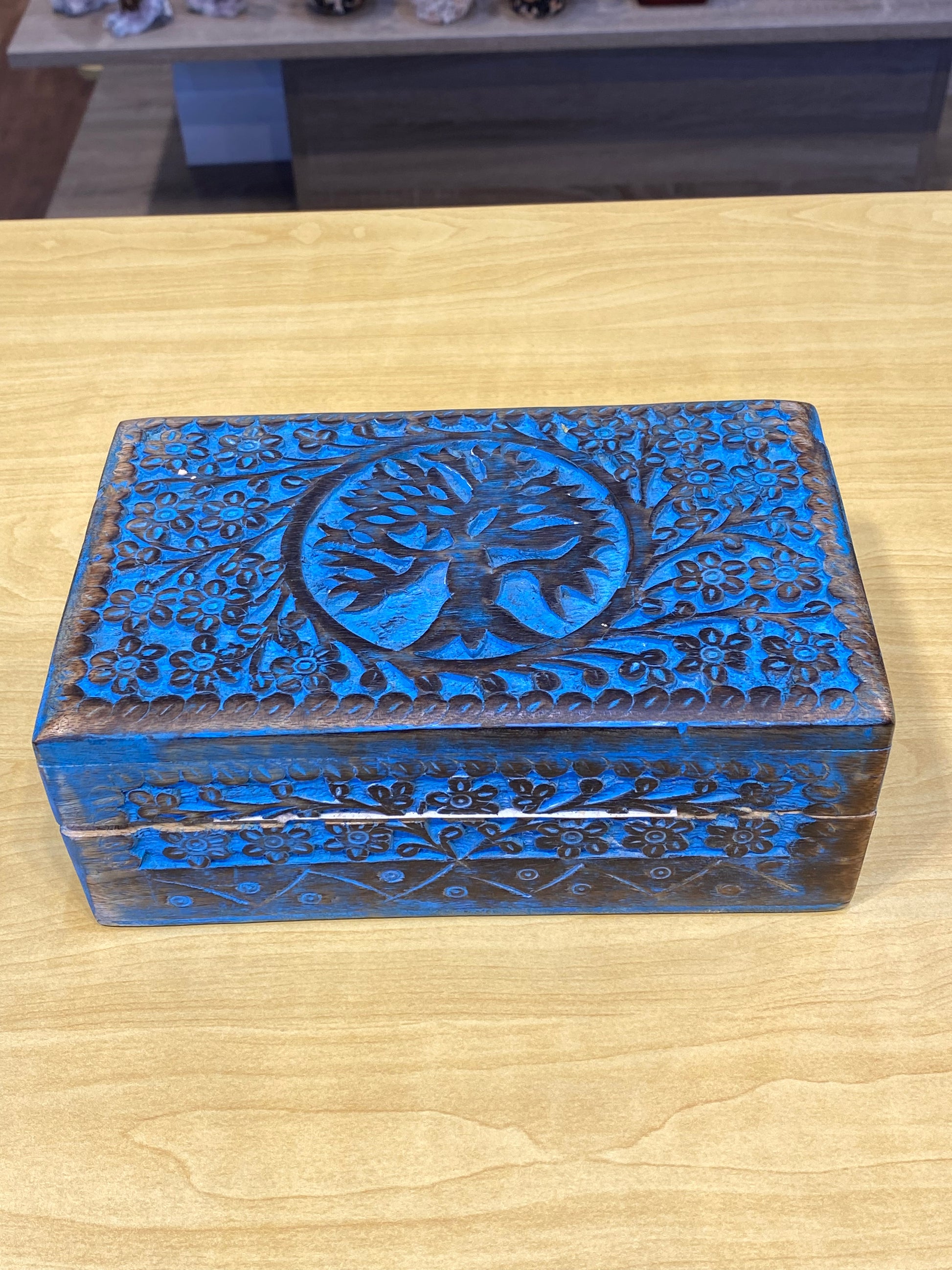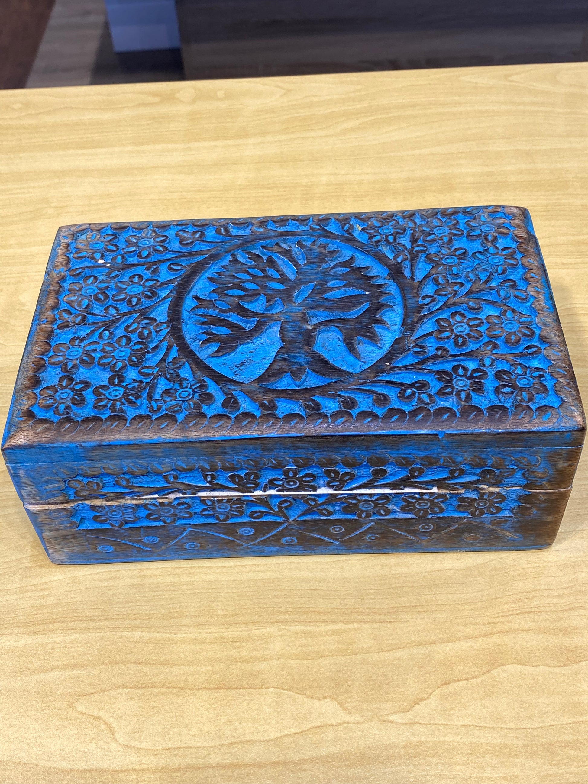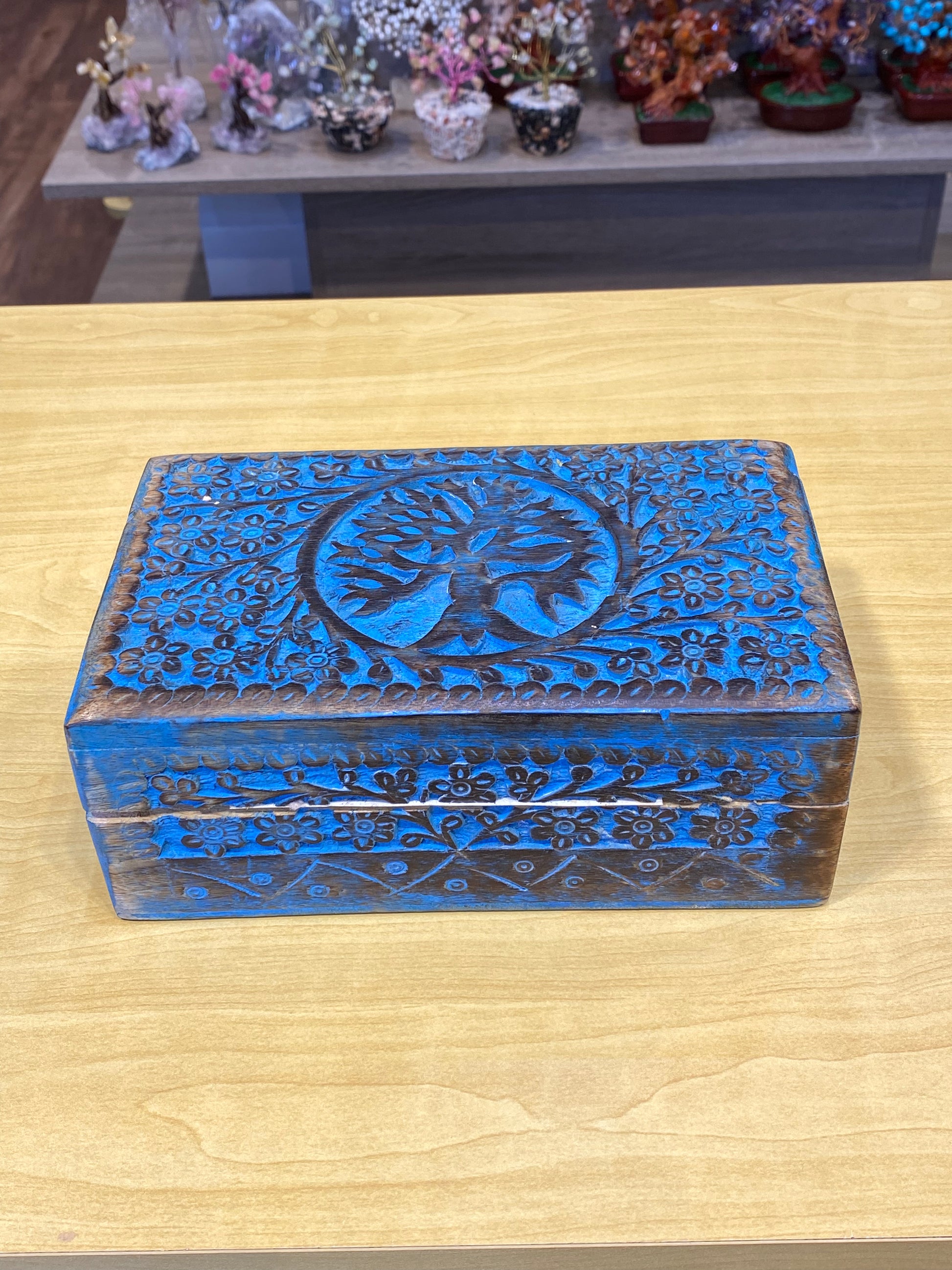 Wooden Handicraft Storage Box 5" x 8" Tree of Life Colored Turquoise