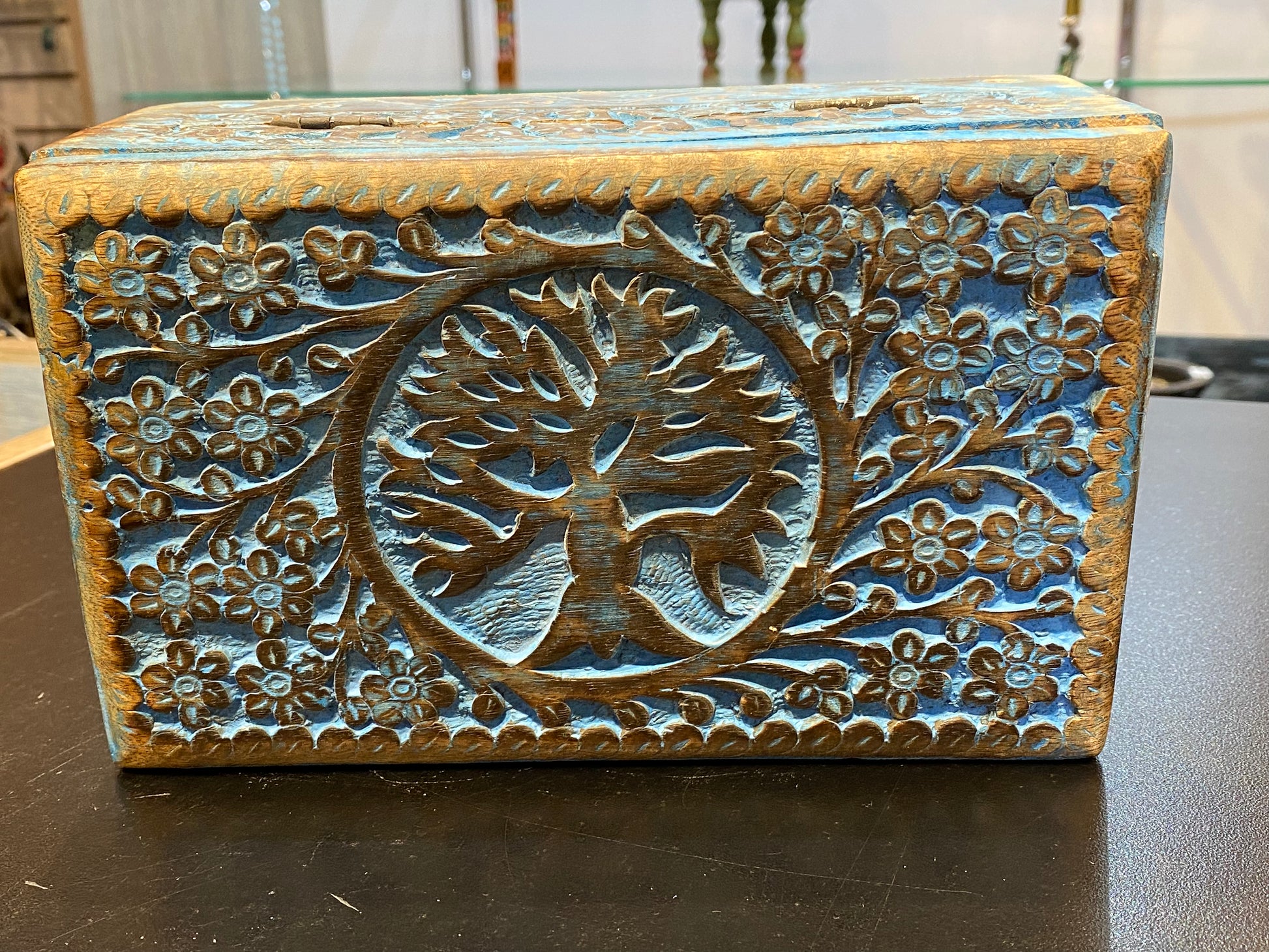 Wooden Handicraft Storage Box Tree of Life Turquoise